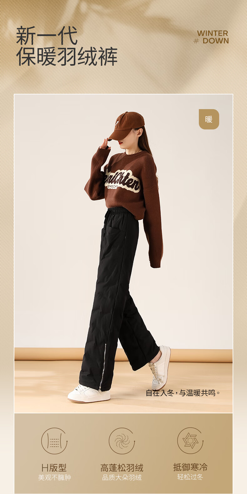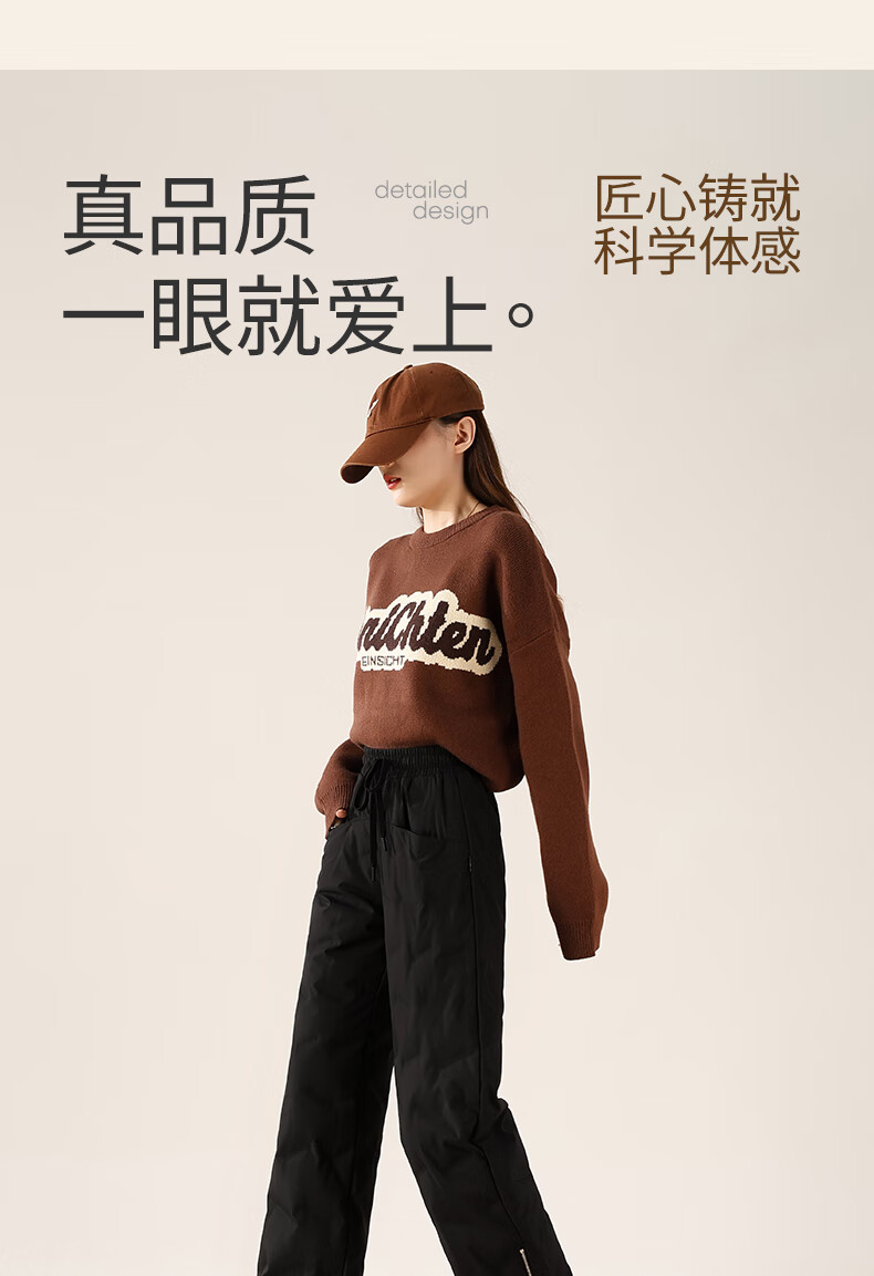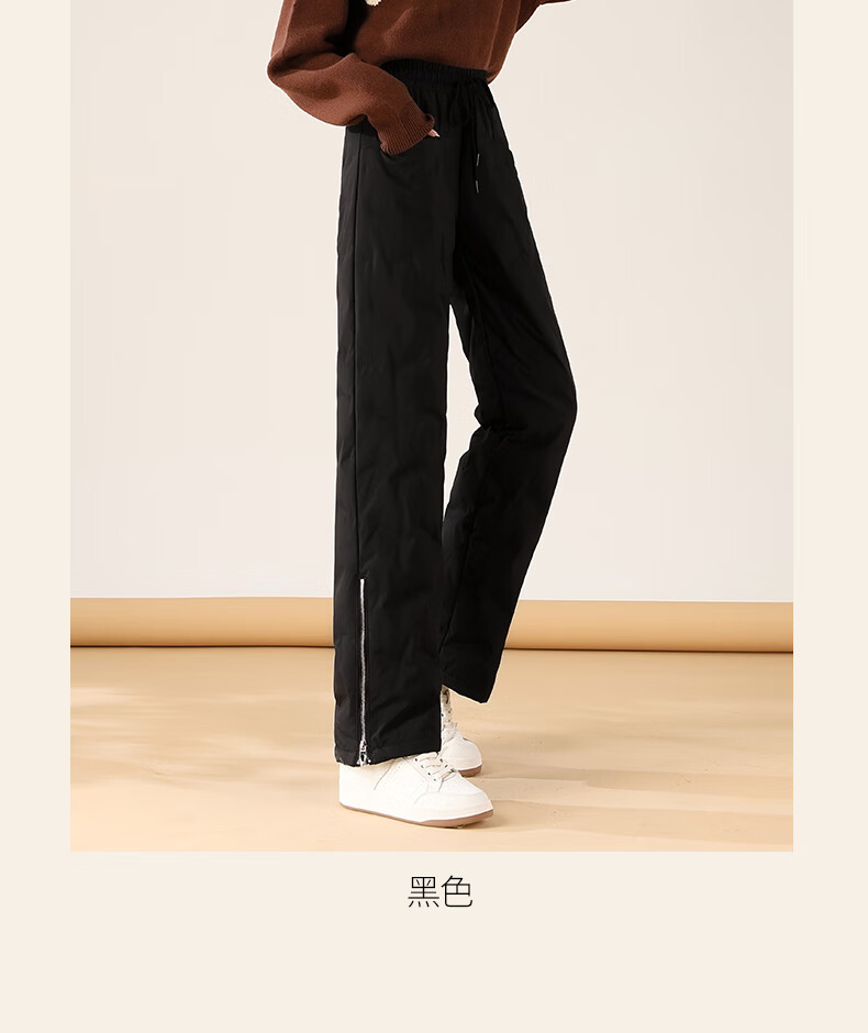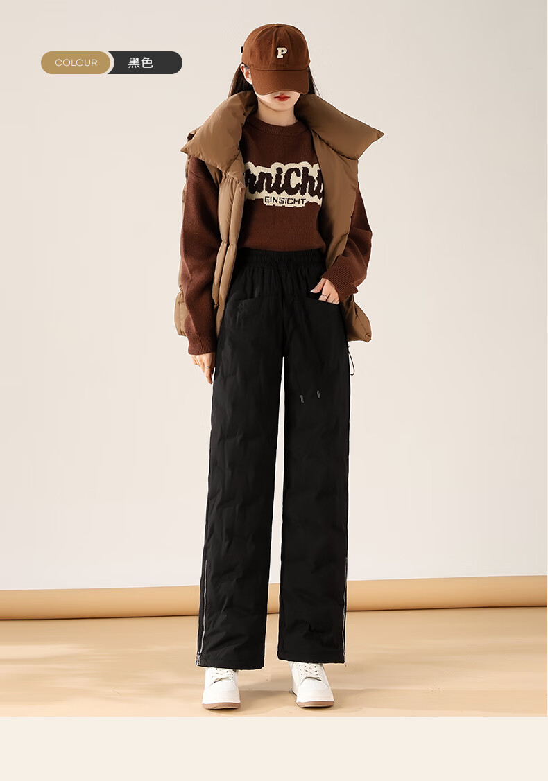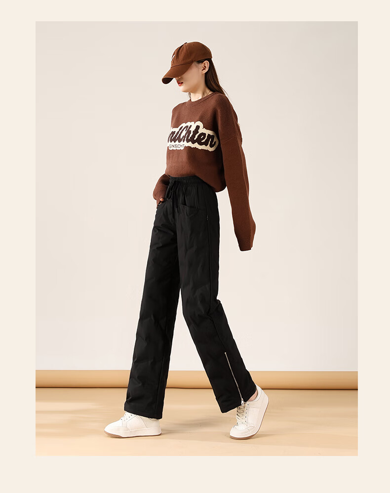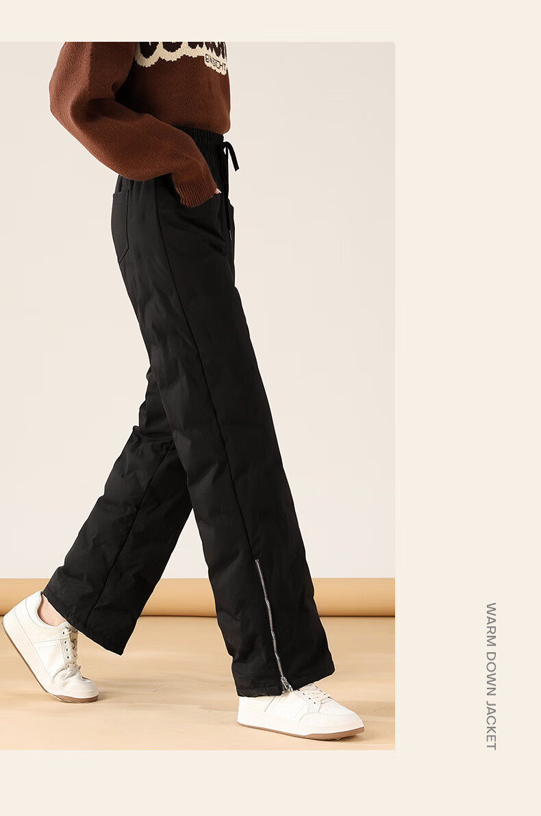 Flying in the Snow Down Pants Women's Autumn and Winter Warm and Thickened Outerwear Fashion Trendy Wide-Leg Straight Pants Black 185/3XL