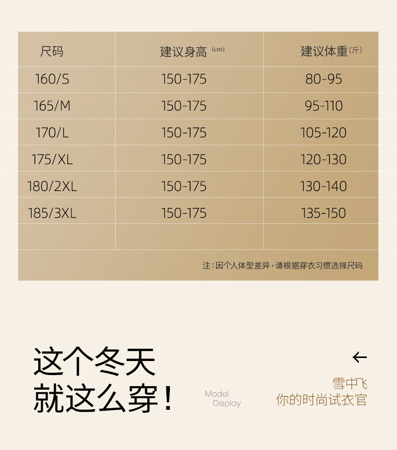 China (cm) 160-165/84-86 165-170 / 88-90 167-172 / 92-96 168-173 / 98-102 170-176 / 106-110
