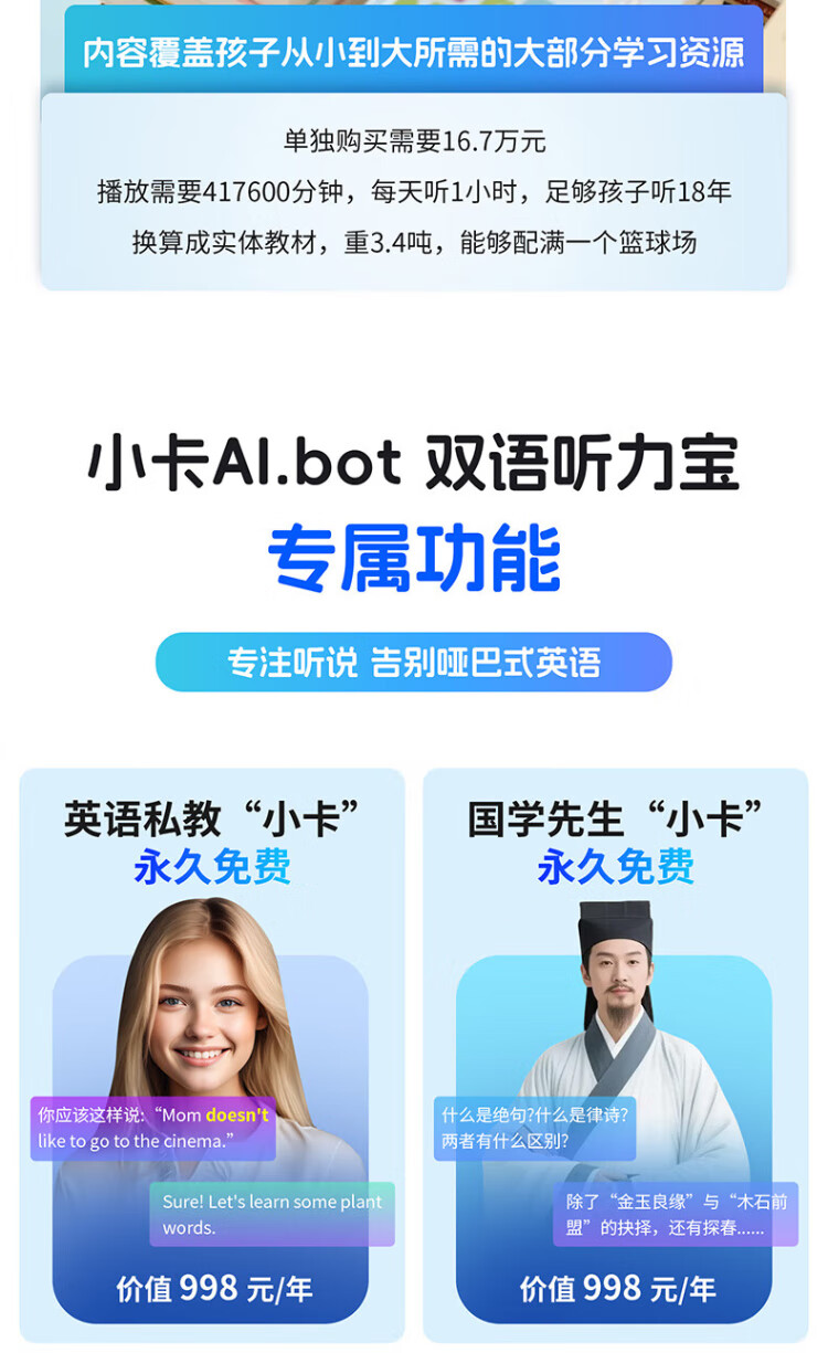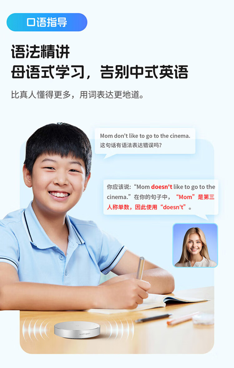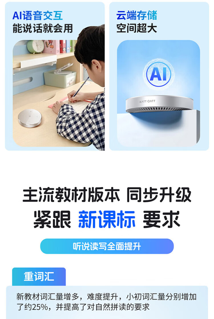 Kattegat Xiaoka AI bilingual listening treasure smart sparring English listening super large memory pink walkman oral repeater learning machine word back pocket learning artifact
