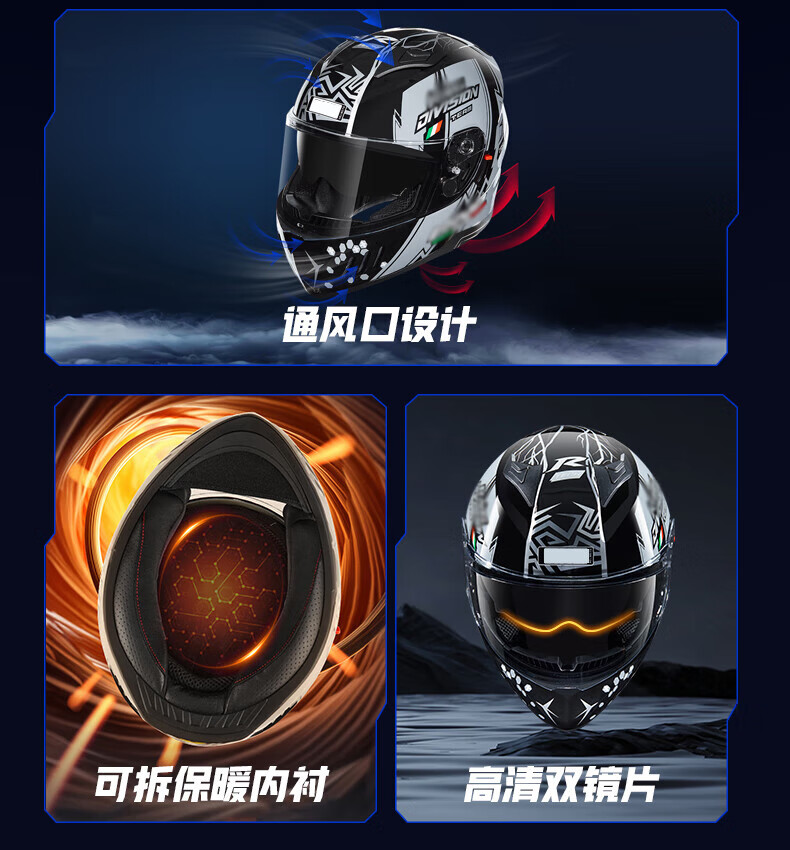 Adandyish new national standard Class A 3C adult full-face helmet motorcycle helmet winter double-mirror motorcycle helmet for all seasons 168 gray