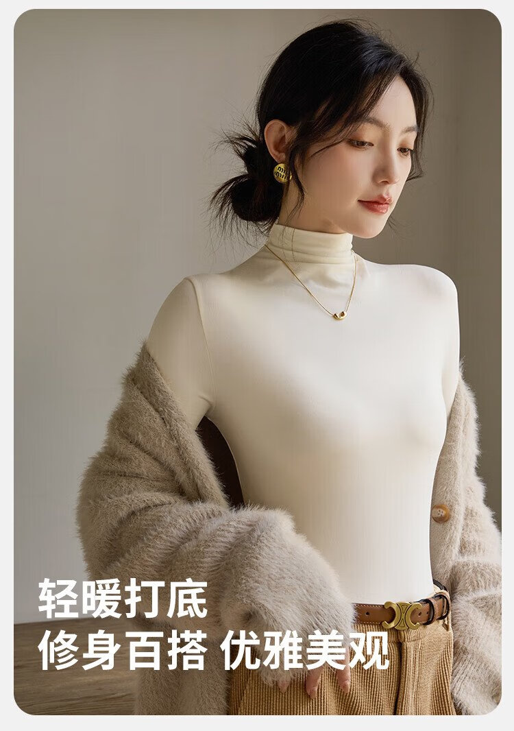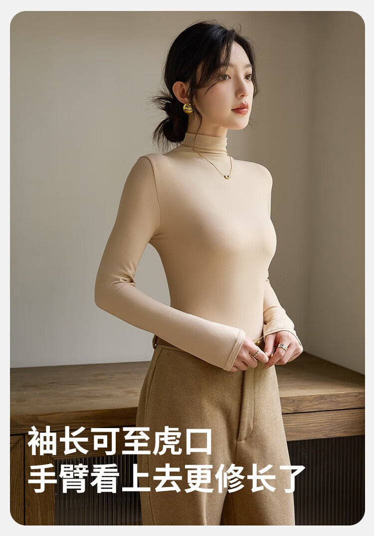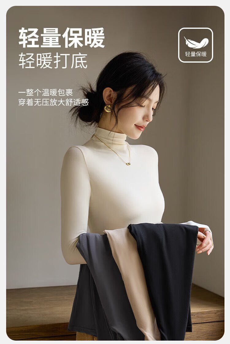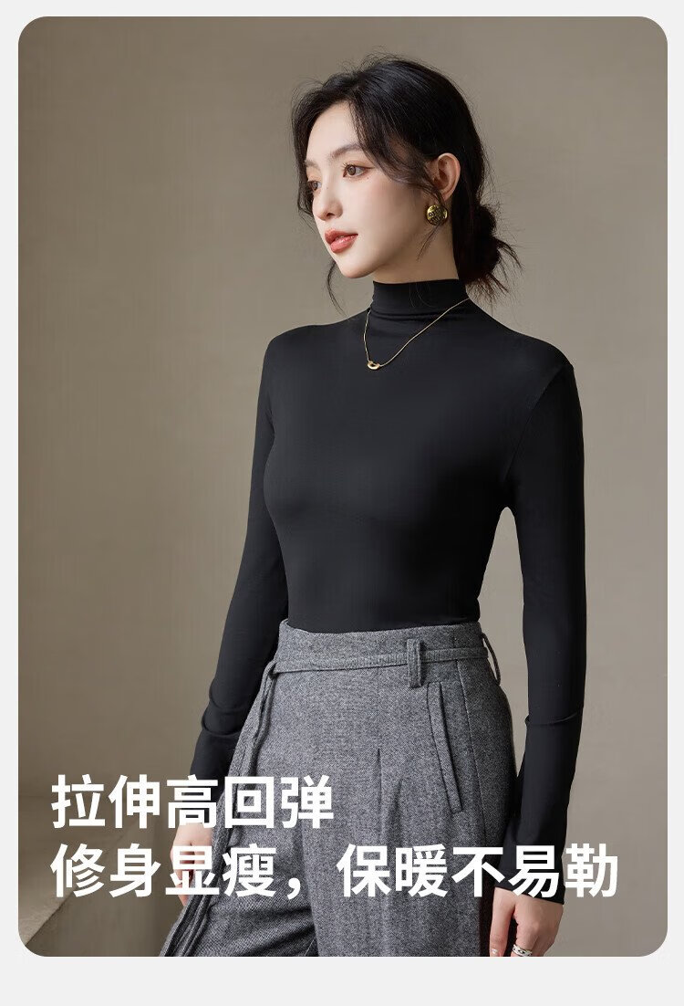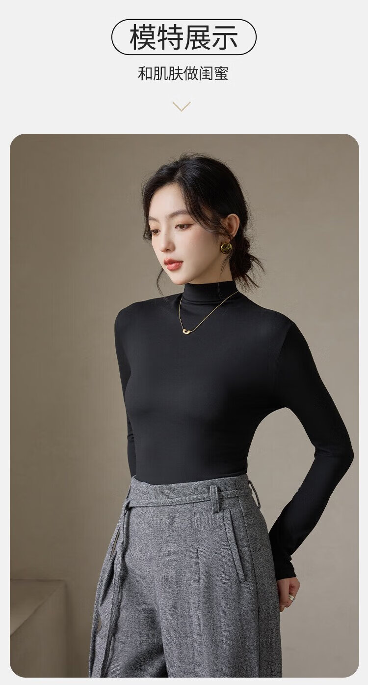 Langsha turtleneck bottoming shirt for women with warm and close-fitting spring and summer antibacterial and anti-mite black long-sleeved T-shirt brushed thermal top