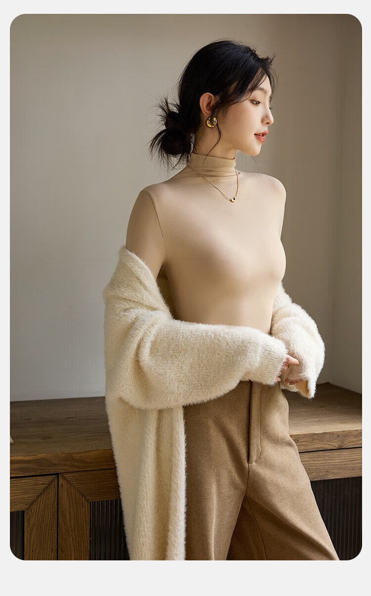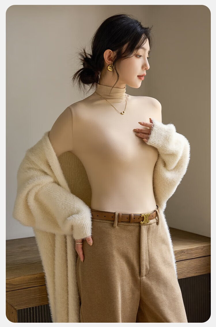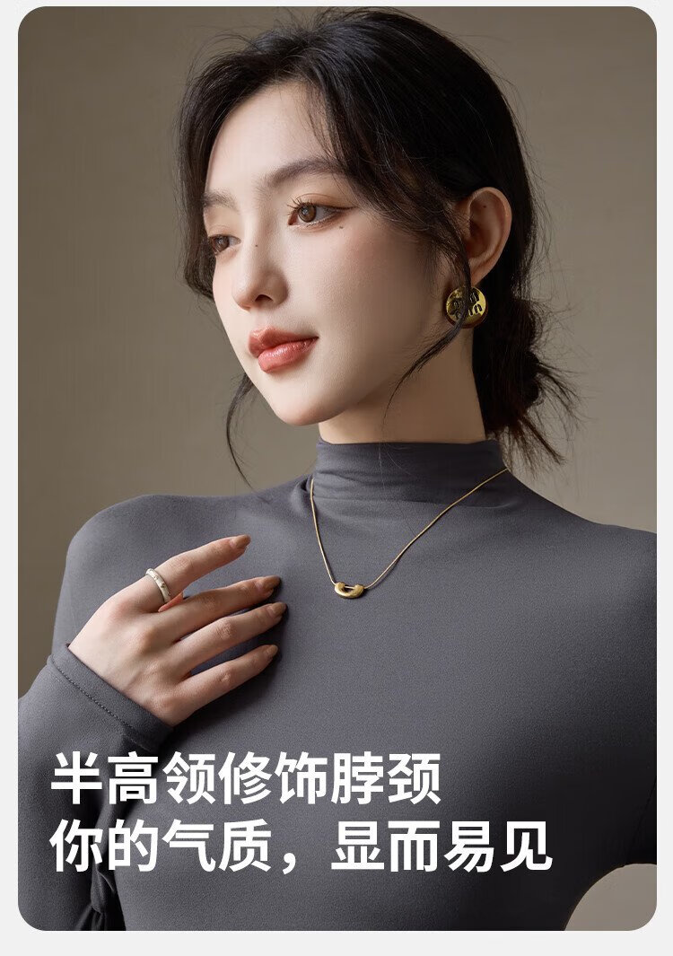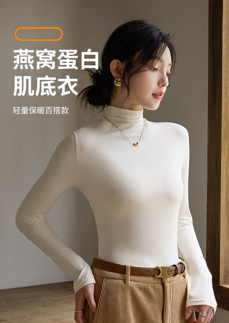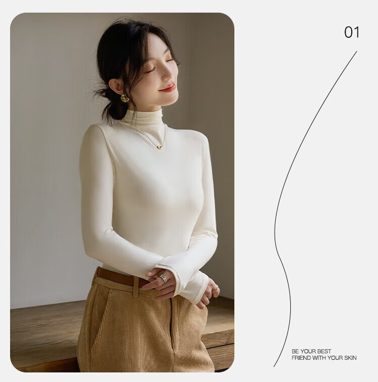 Langsha turtleneck bottoming shirt for women with warm and close-fitting spring and summer antibacterial and anti-mite black long-sleeved T-shirt brushed thermal top