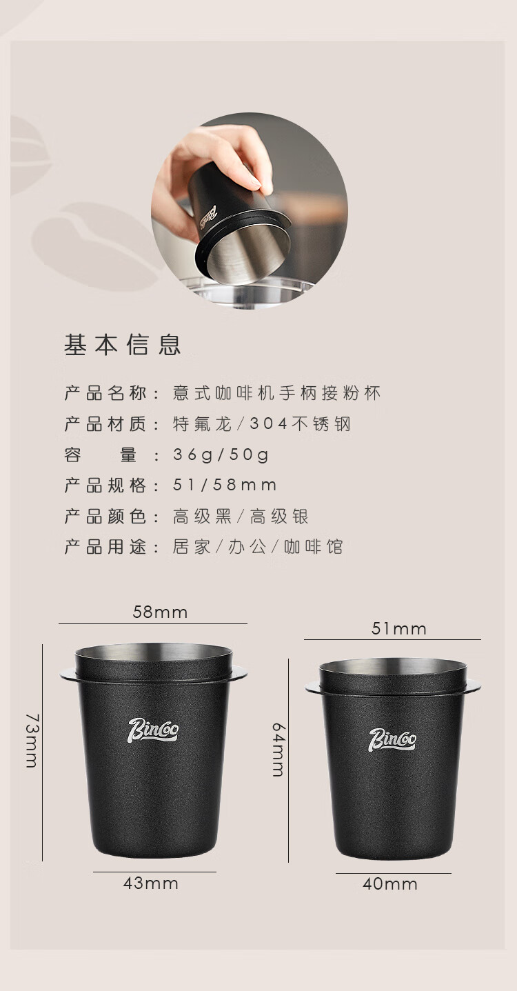 Bincoo coffee powder receiving cup stainless steel handle inverted powder dropper hand brewed coffee aroma cup 51/58mm
