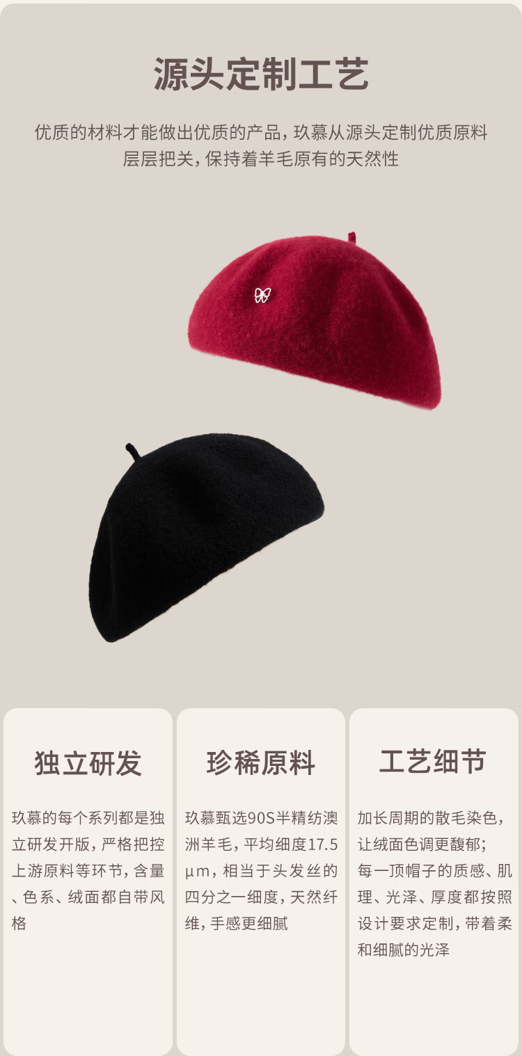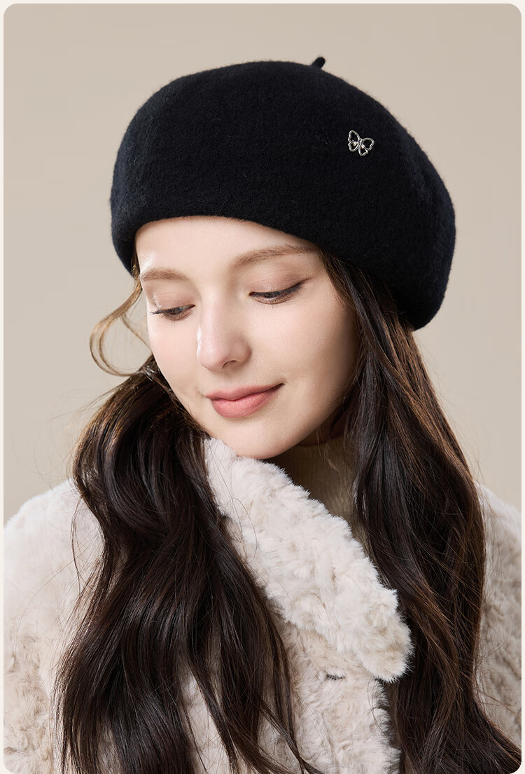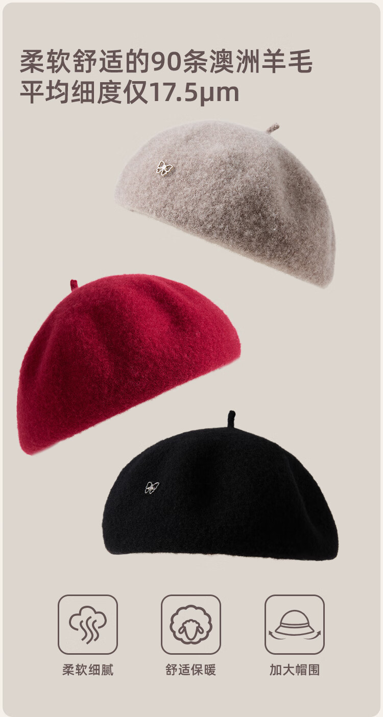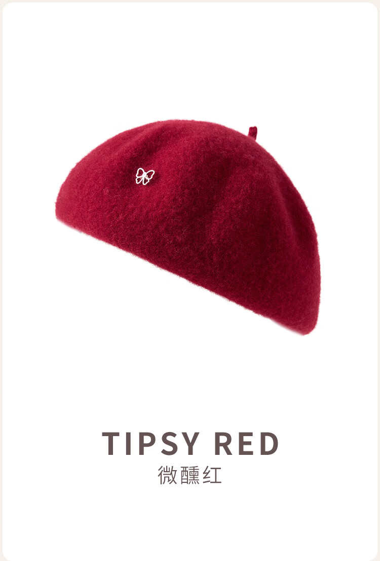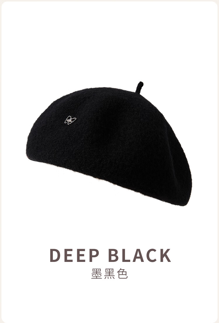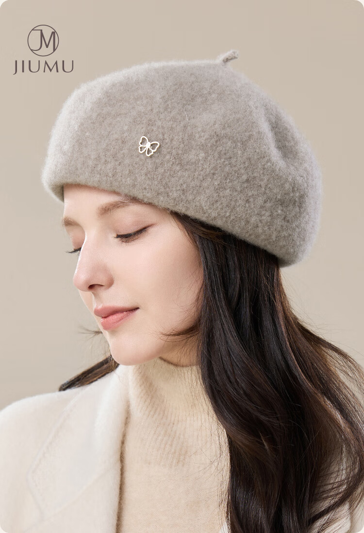 JIUMU pure wool beret autumn and winter warm woolen painter hat Japanese British retro classic versatile hat for women
