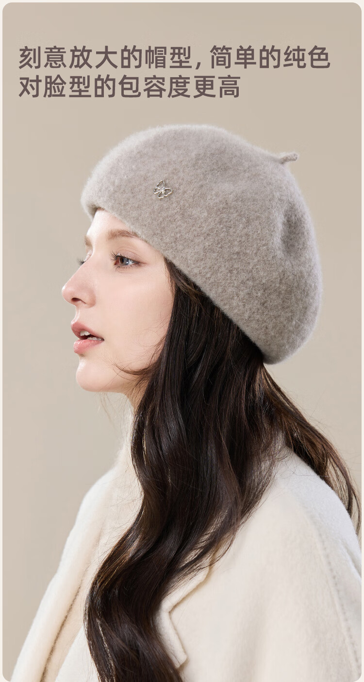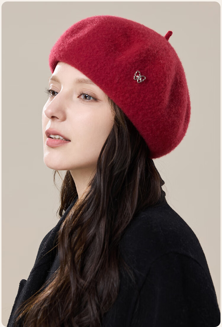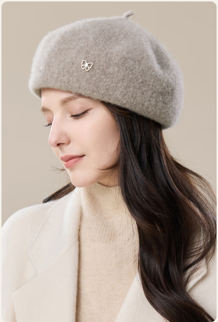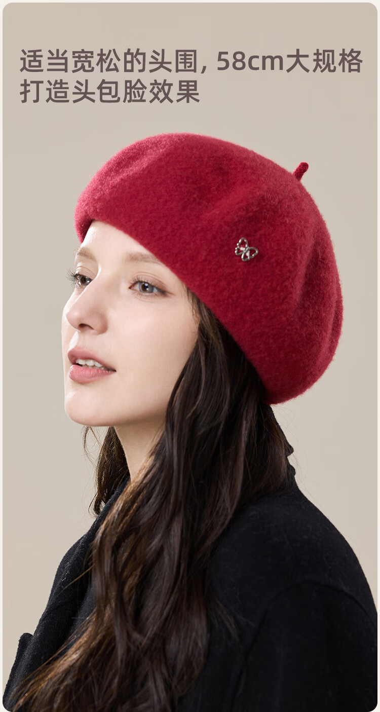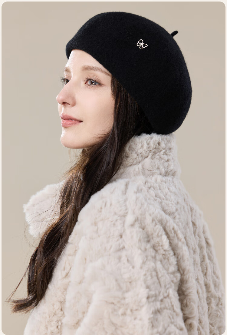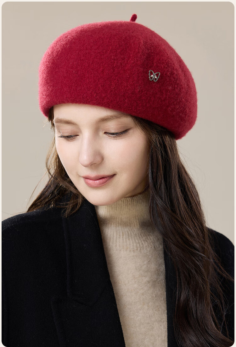 JIUMU pure wool beret autumn and winter warm woolen painter hat Japanese British retro classic versatile hat for women