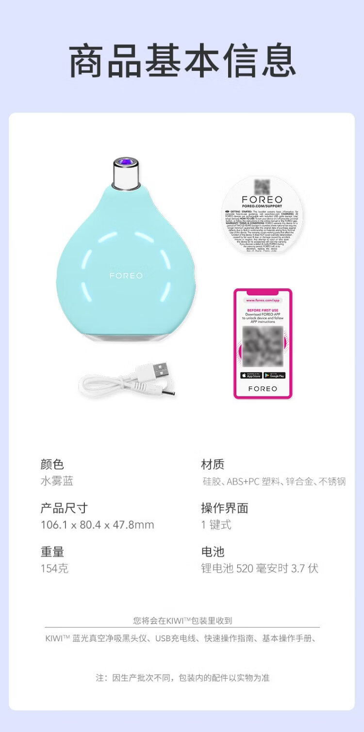 FOREO KIWI Blue Light Vacuum Blackhead Cleansing Device LED Skin Rejuvenation Cleansing