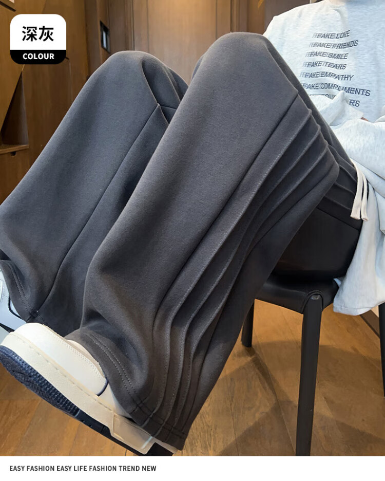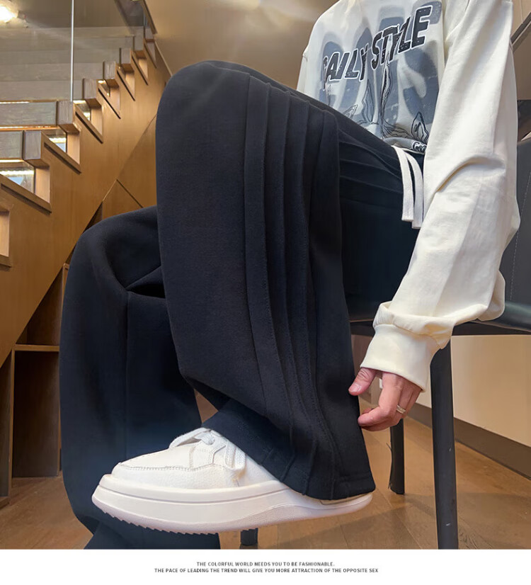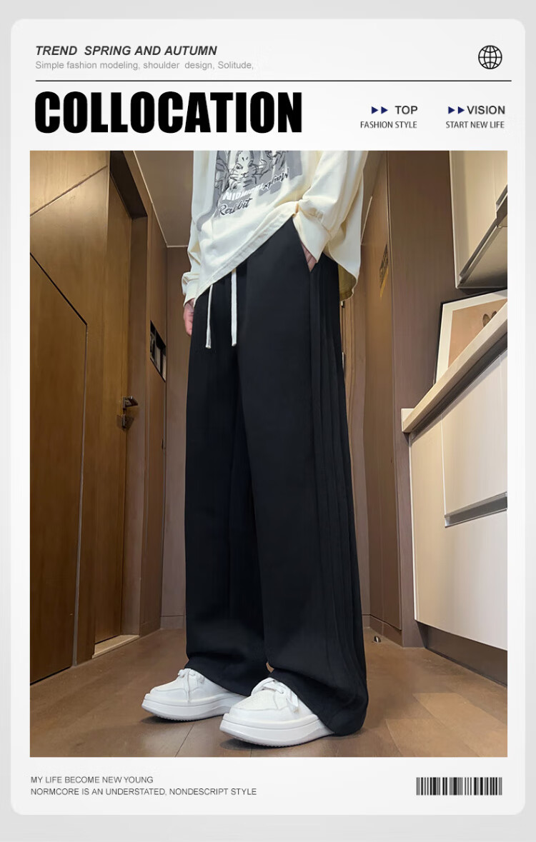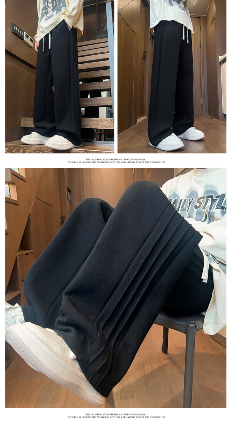 Dingfengbaoluo casual pants men's autumn drape loose straight pants trendy wide-leg sweatpants DFK28 black XL