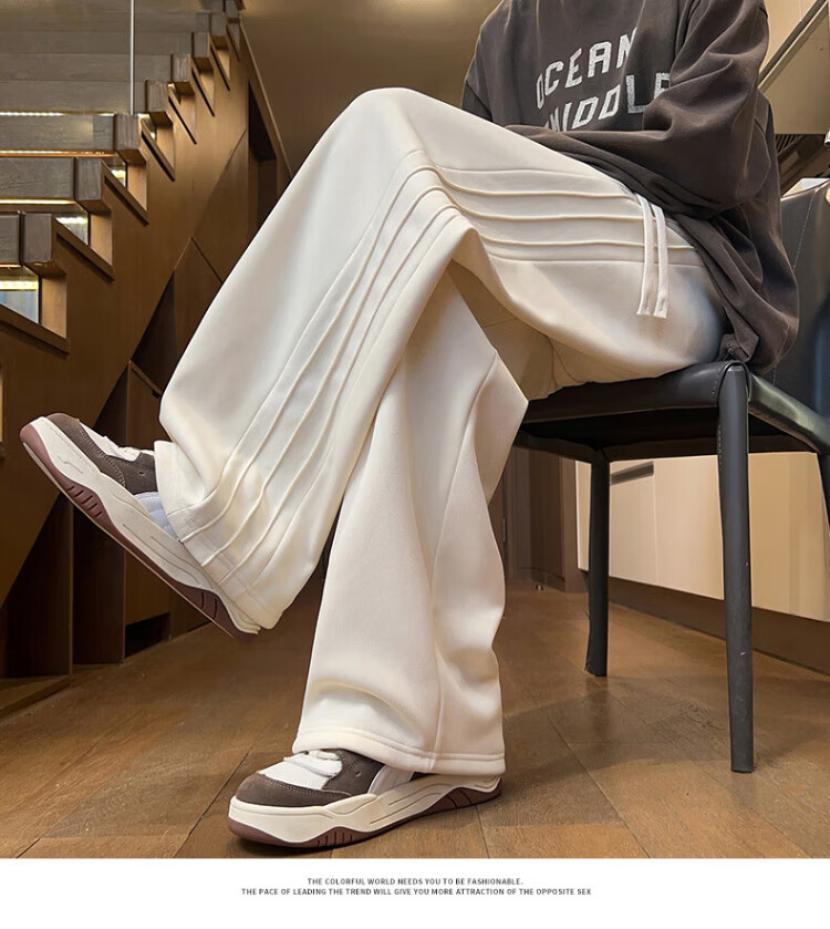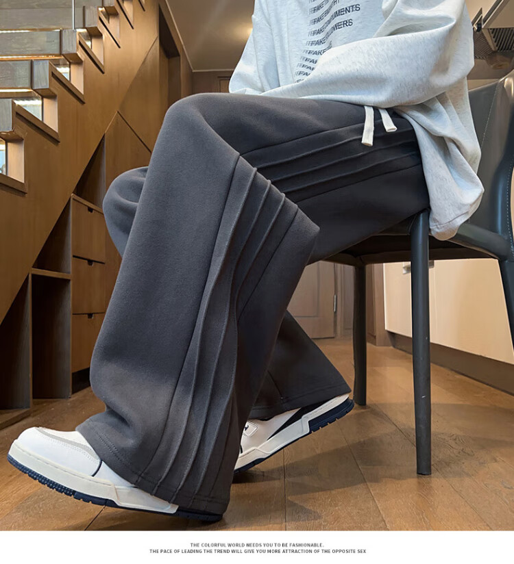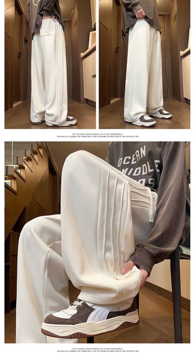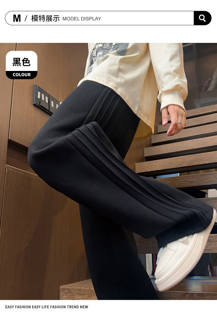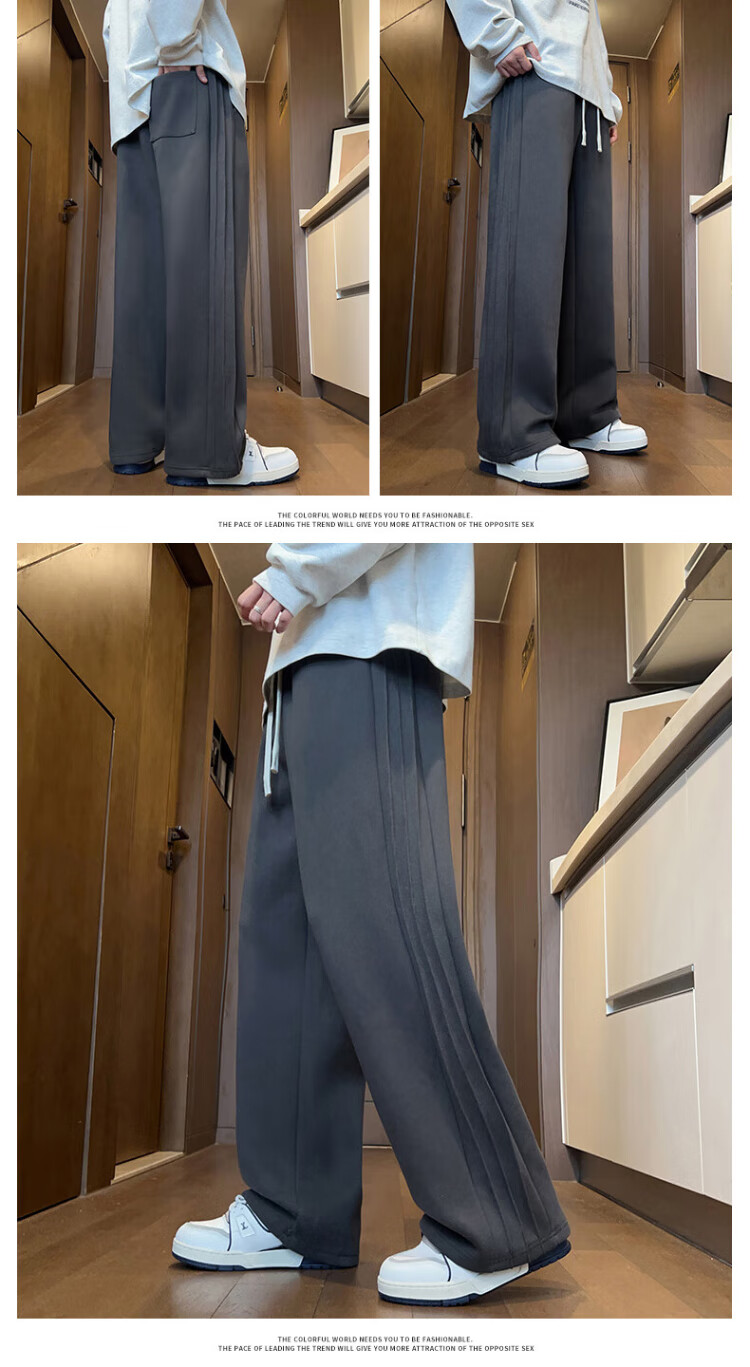 Dingfengbaoluo casual pants men's autumn drape loose straight pants trendy wide-leg sweatpants DFK28 black XL