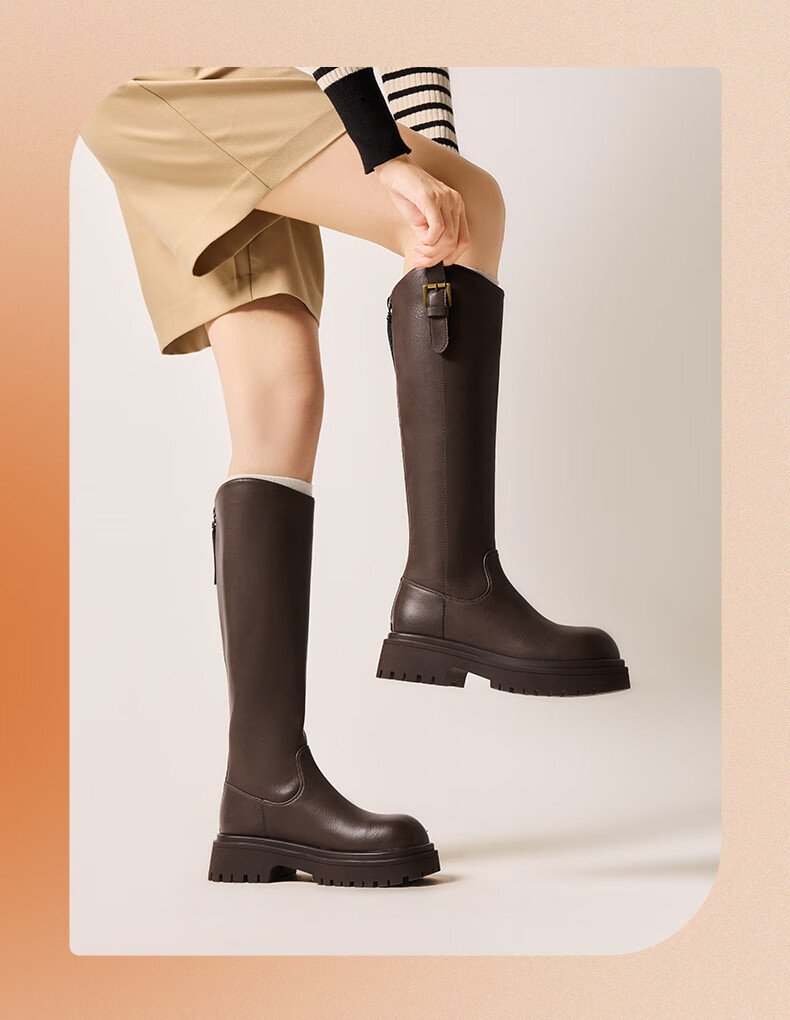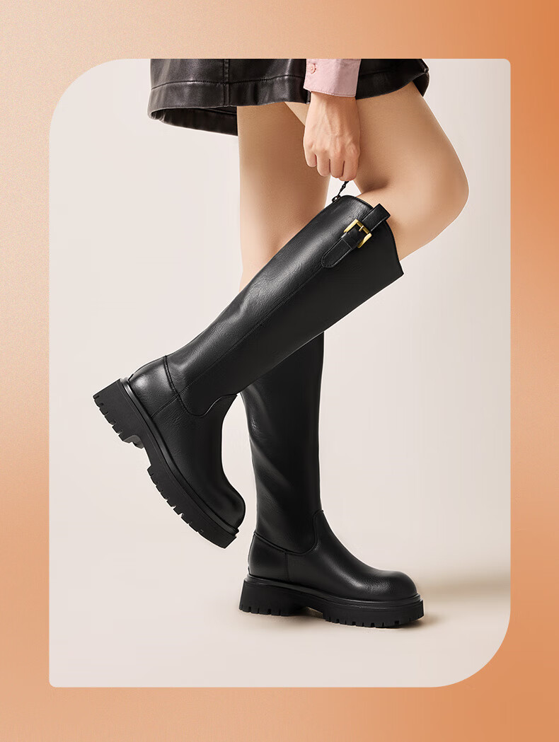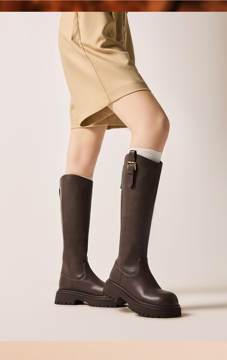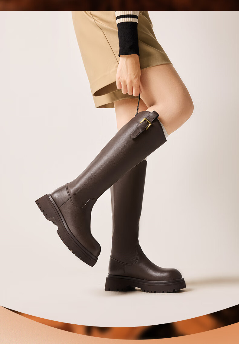 Hotwind boots for women winter women thick sole heightening retro casual slim tall knight boots