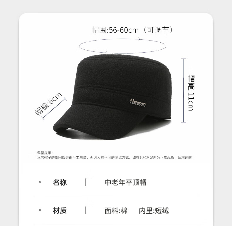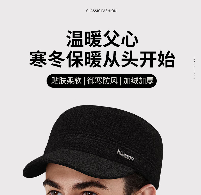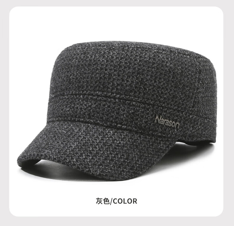 Woodpecker middle-aged and elderly men's winter flat-top hat plus velvet and thickened ear protection to keep dad, old man and grandpa duck-billed hat
