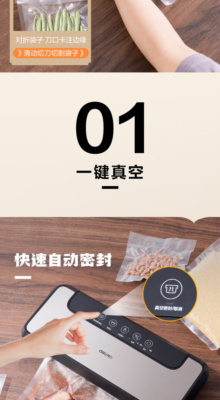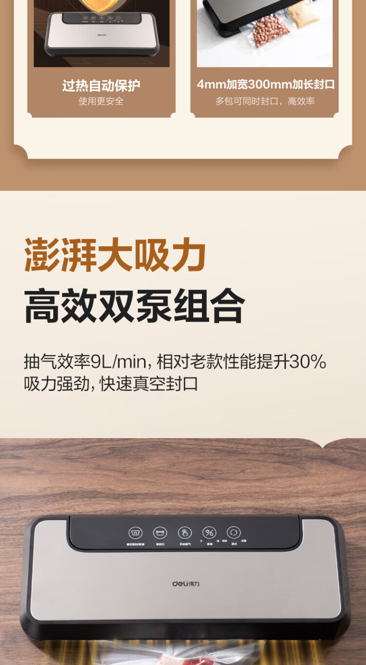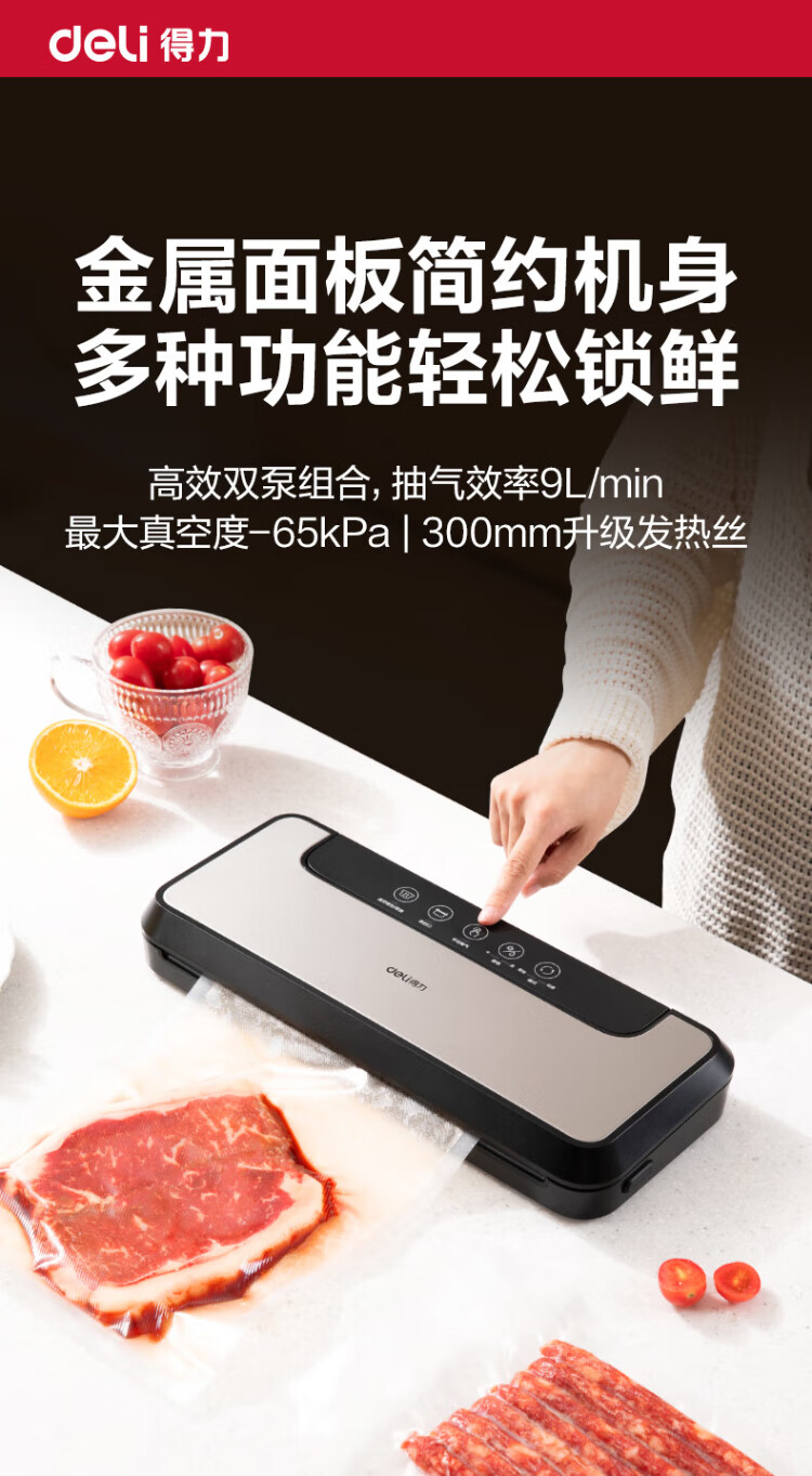 Deli household commercial vacuum sealing machine small vacuum packaging machine food plastic sealing machine fully automatic vacuum machine dry and wet dual-use fresh-keeping packaging and sealing machine double pump high-efficiency vacuum