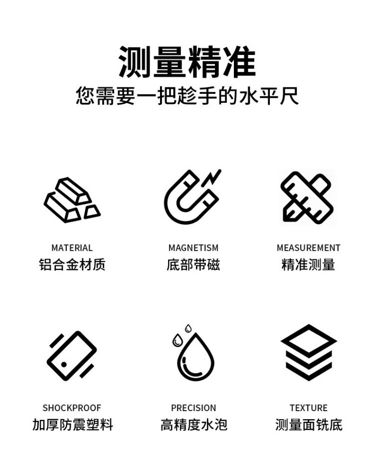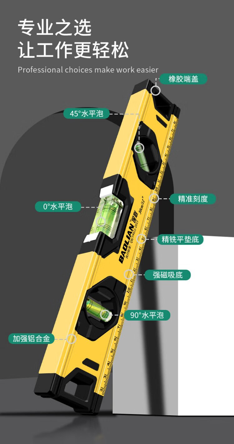 Baolian spirit level high-precision with strong magnetic mini flat water ruler aluminum alloy ruler balance measurement level