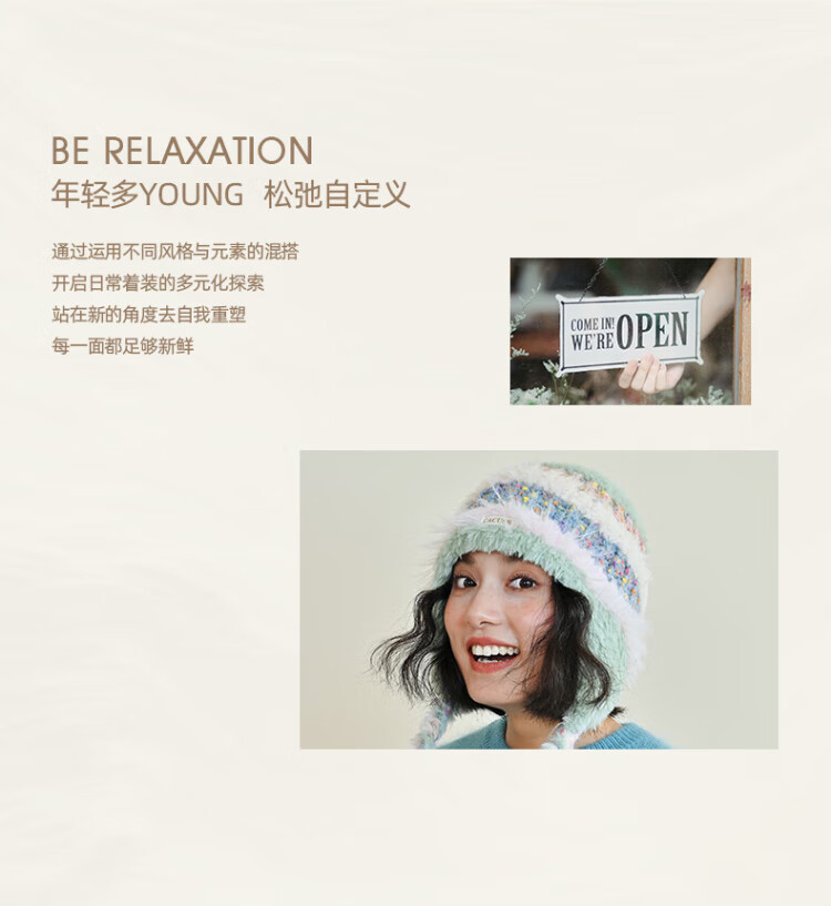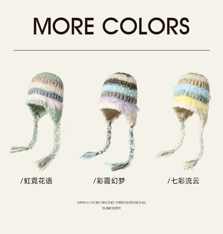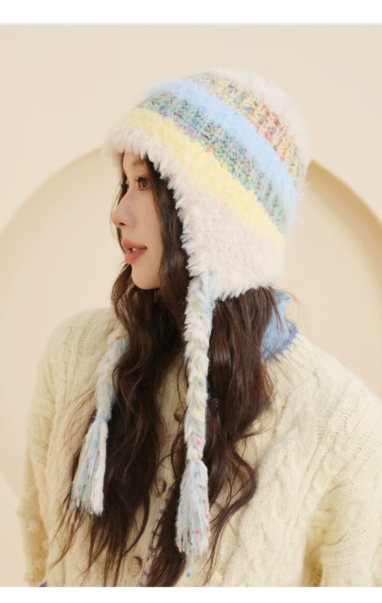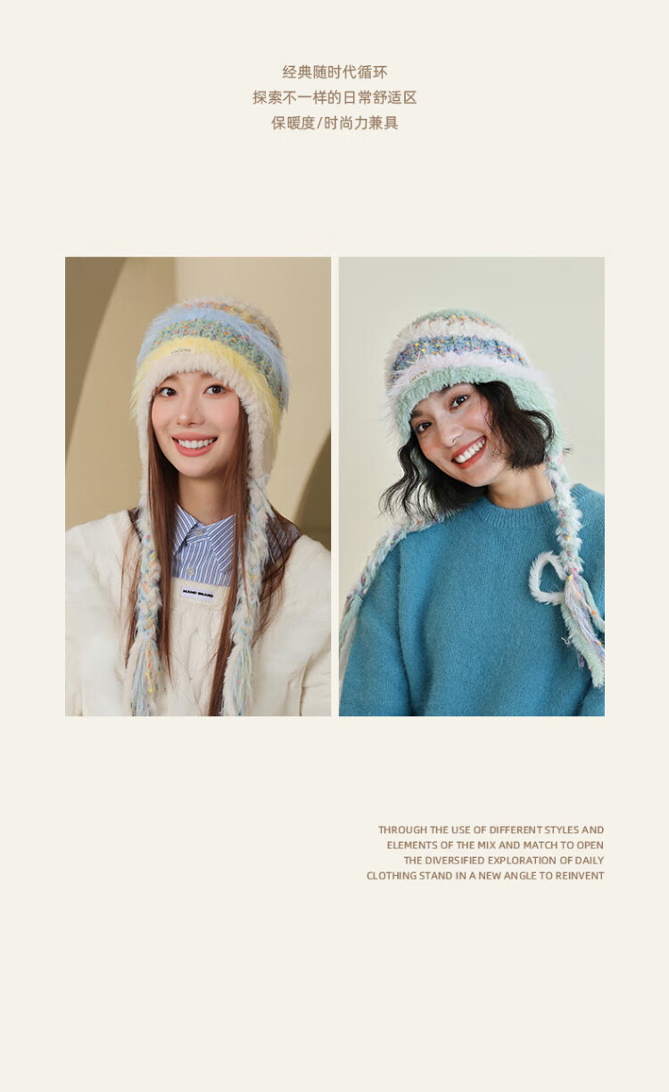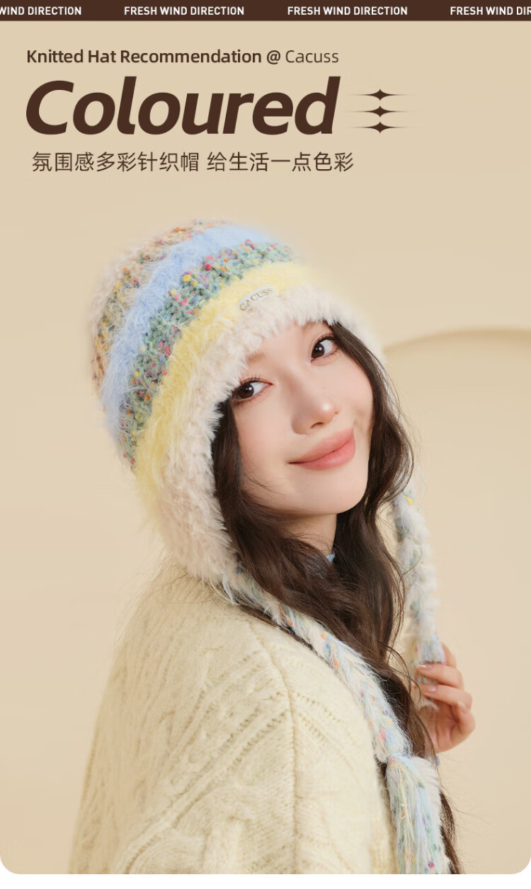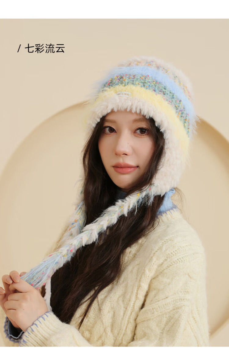 CACUSS woolen hat women's autumn and winter warm hat cute ear protection hat big head circumference knitted hat must-have travel in Western Sichuan