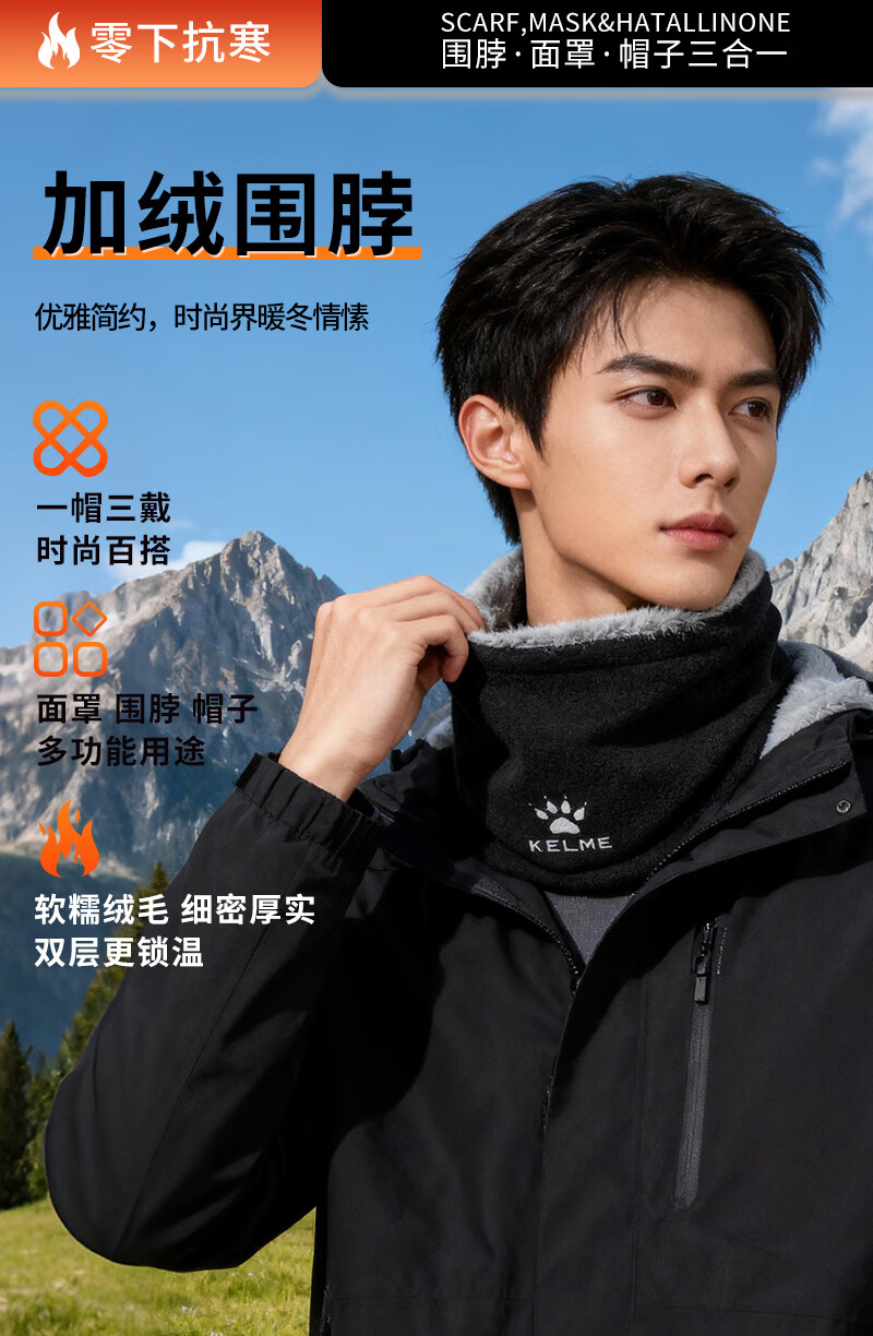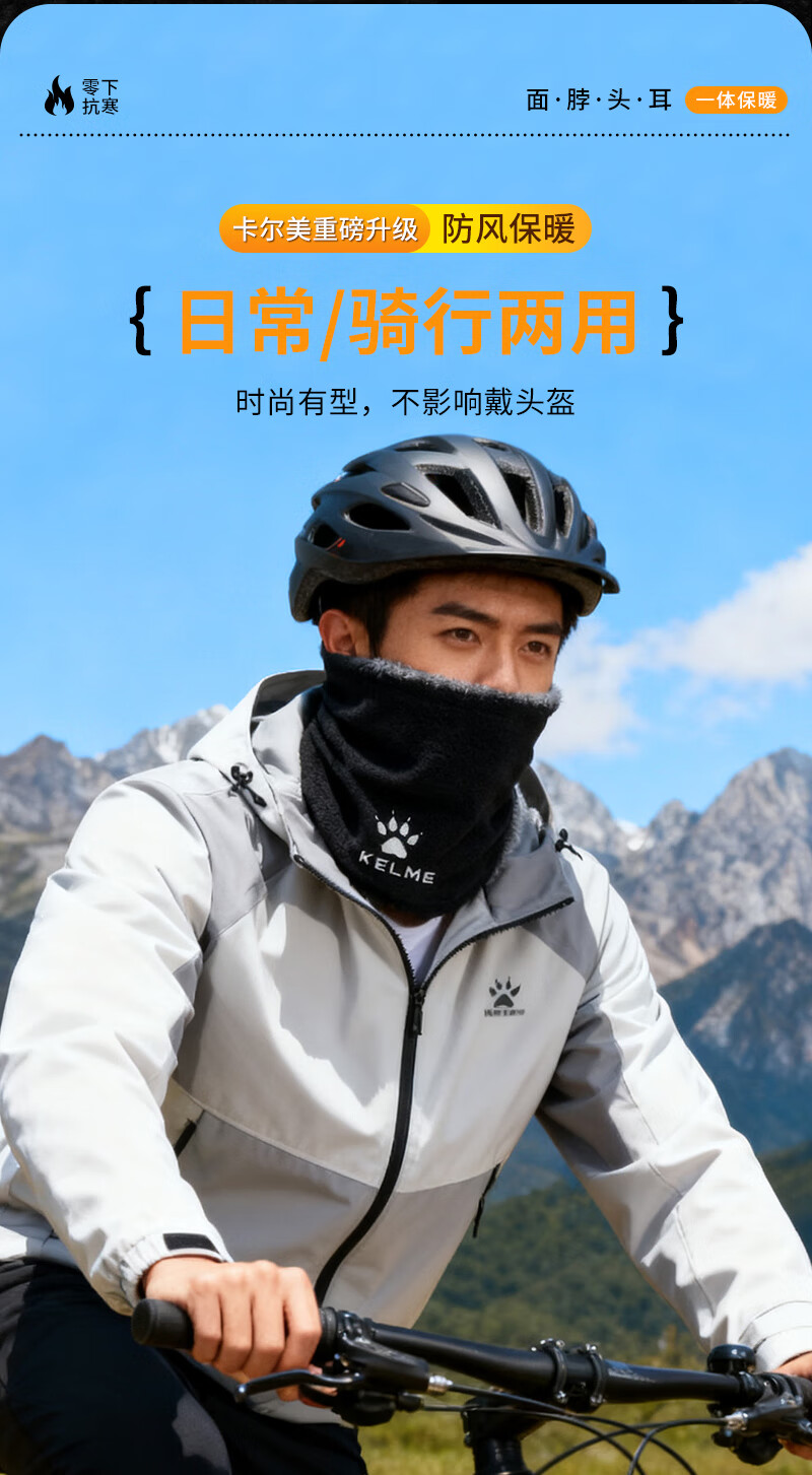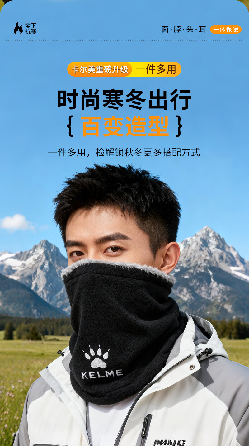 KELME velvet mask winter cycling thick thick cold wind-proof neck warmer for men and women outdoor skiing and cycling ear protection face and neck