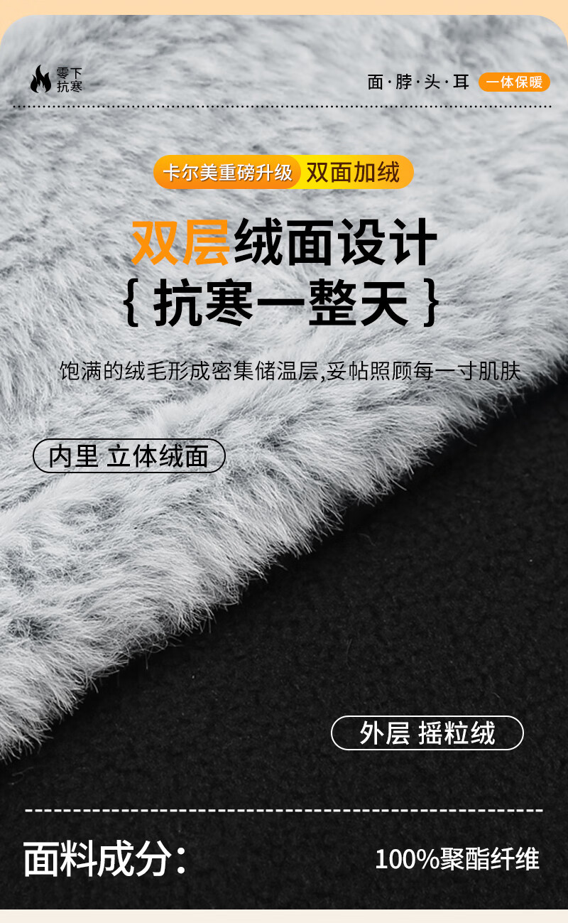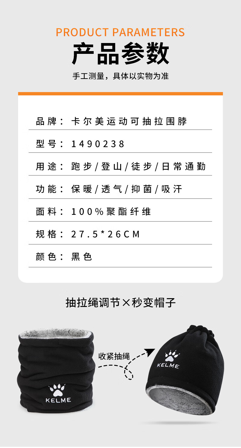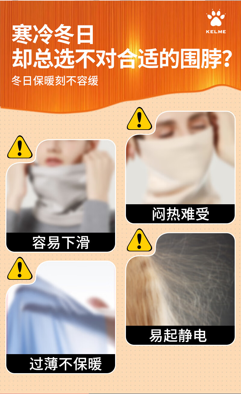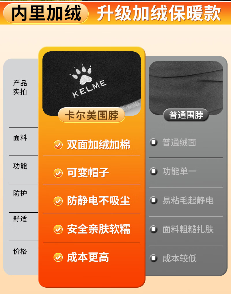 KELME velvet mask winter cycling thick thick cold wind-proof neck warmer for men and women outdoor skiing and cycling ear protection face and neck