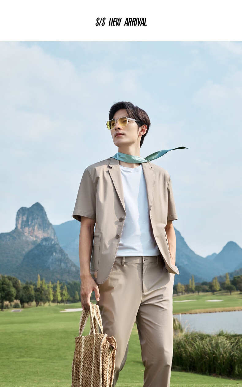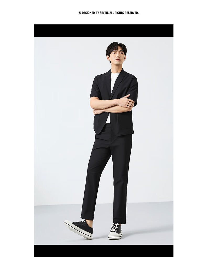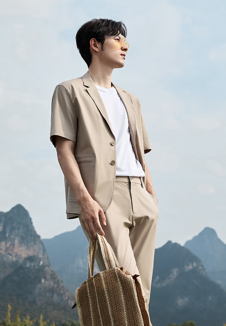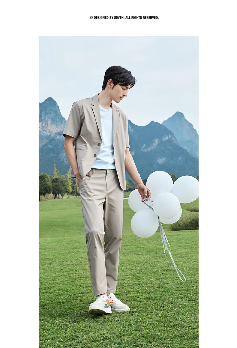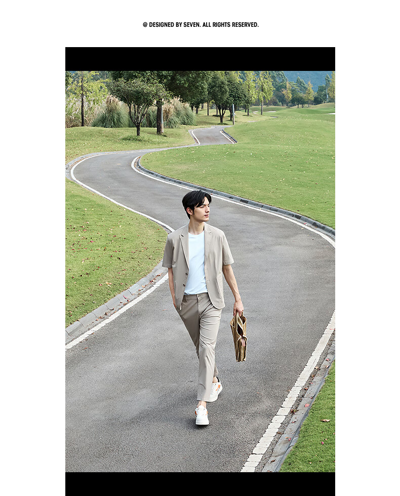 Qipai short-sleeved suit men's suit summer fashion casual versatile men's suit two-piece suit