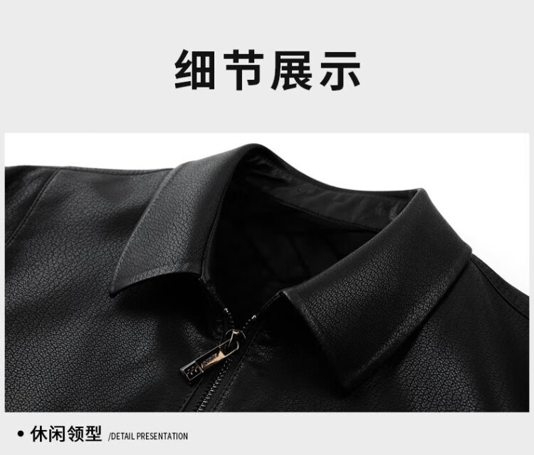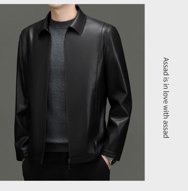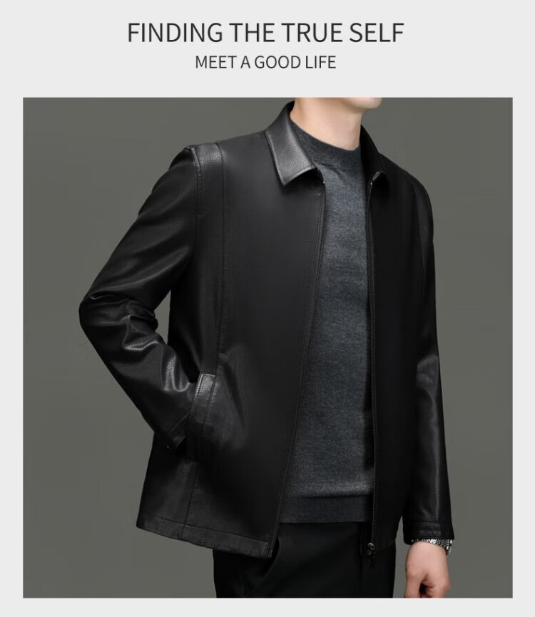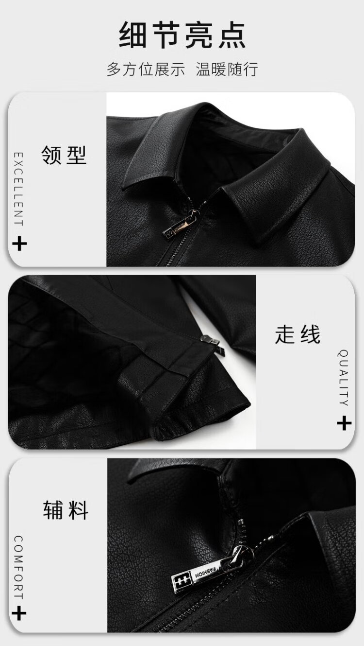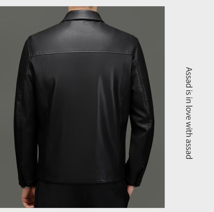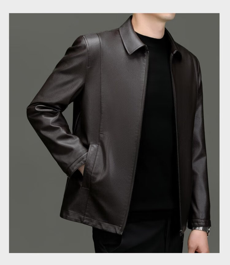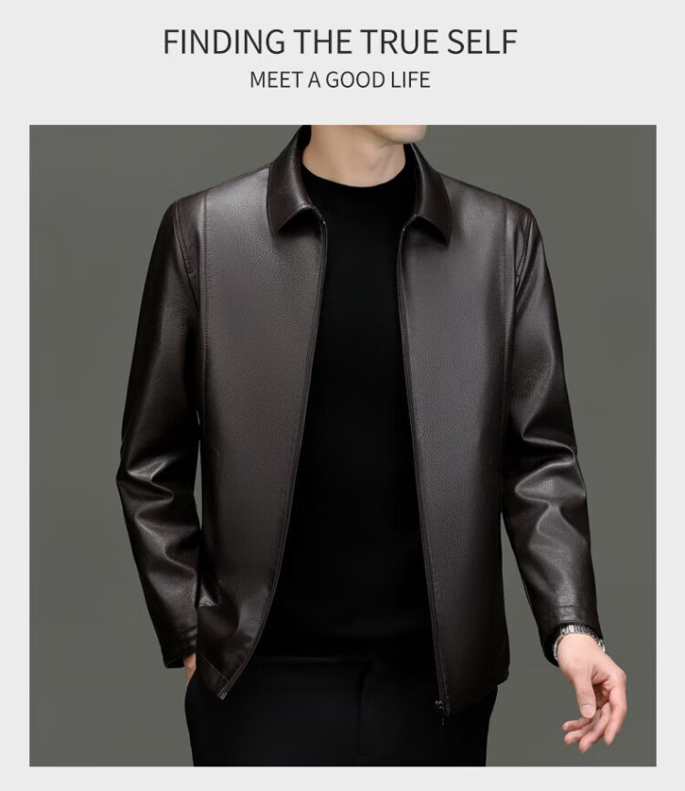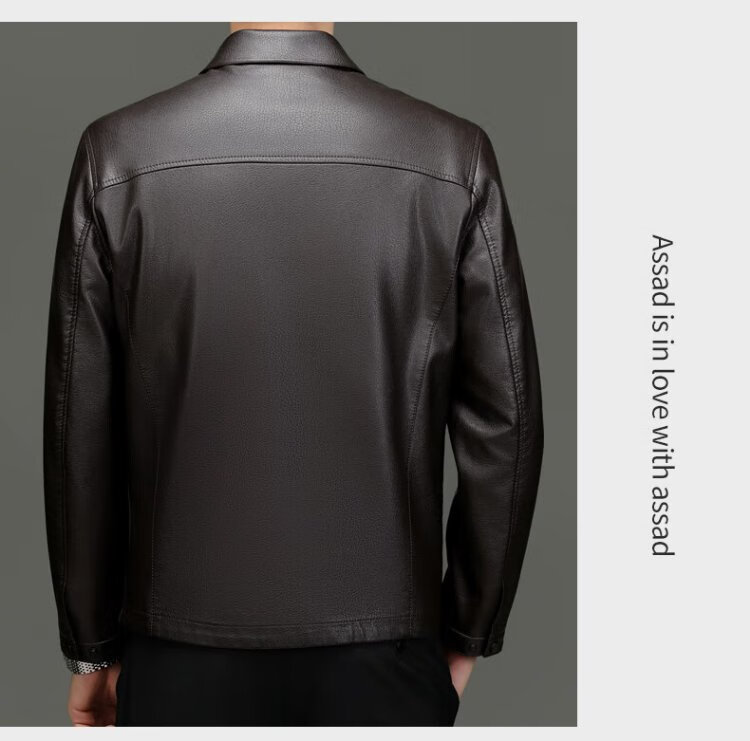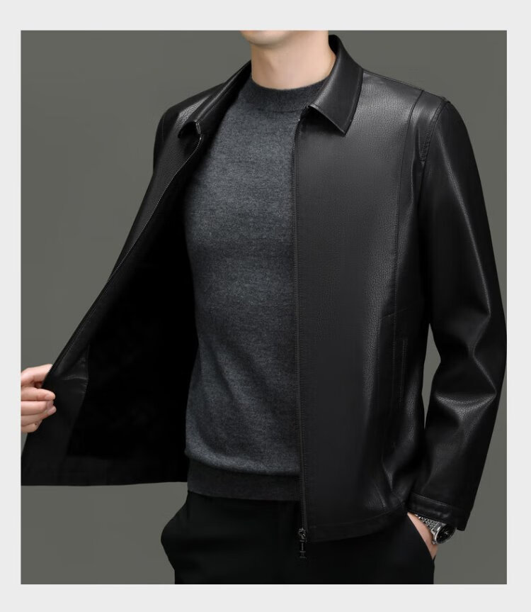 Lomon leather jacket for men in autumn and winter, middle-aged velvet thickened lapel coat, warm leather jacket, middle-aged and elderly men's top