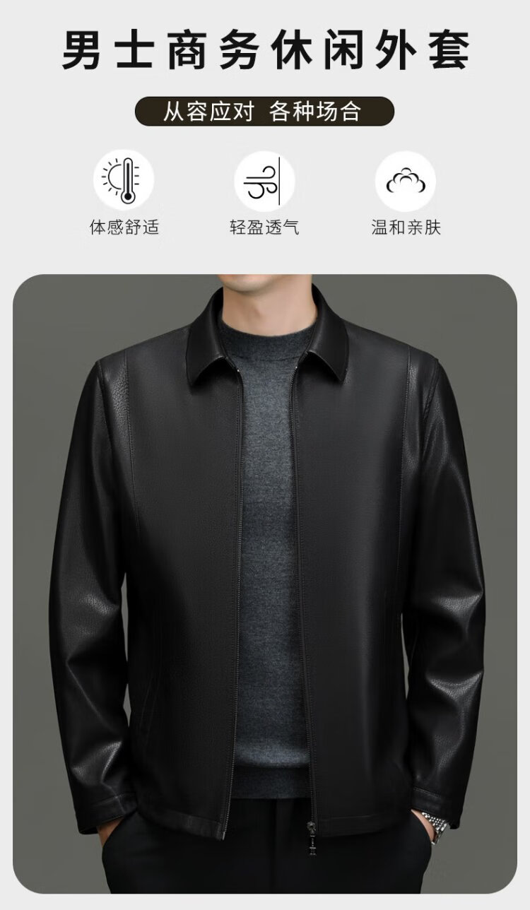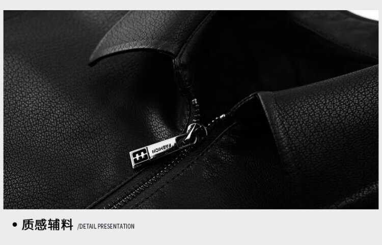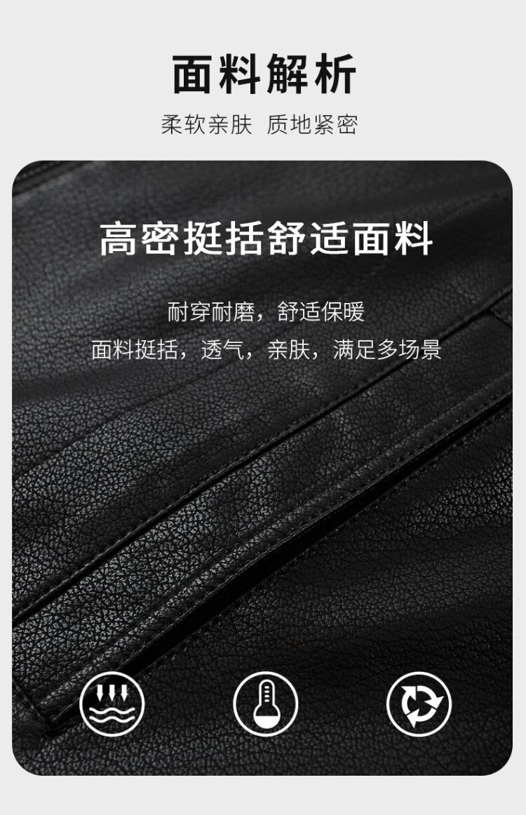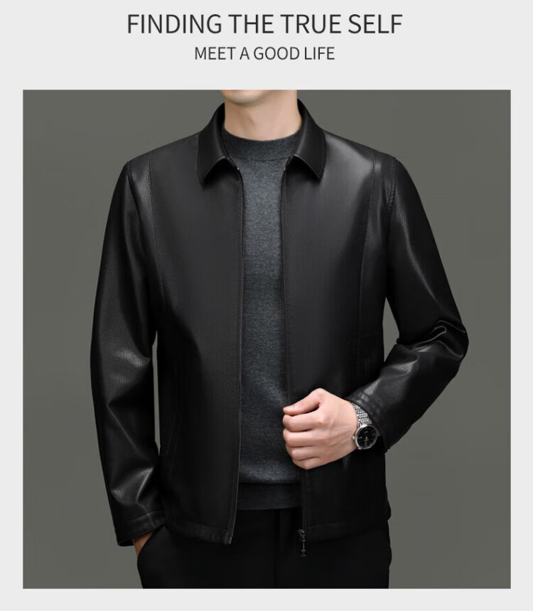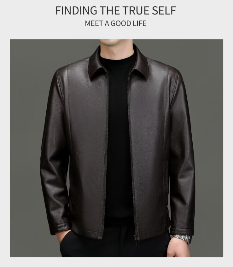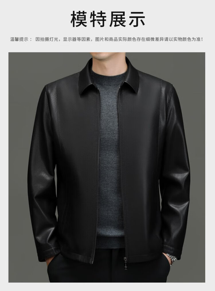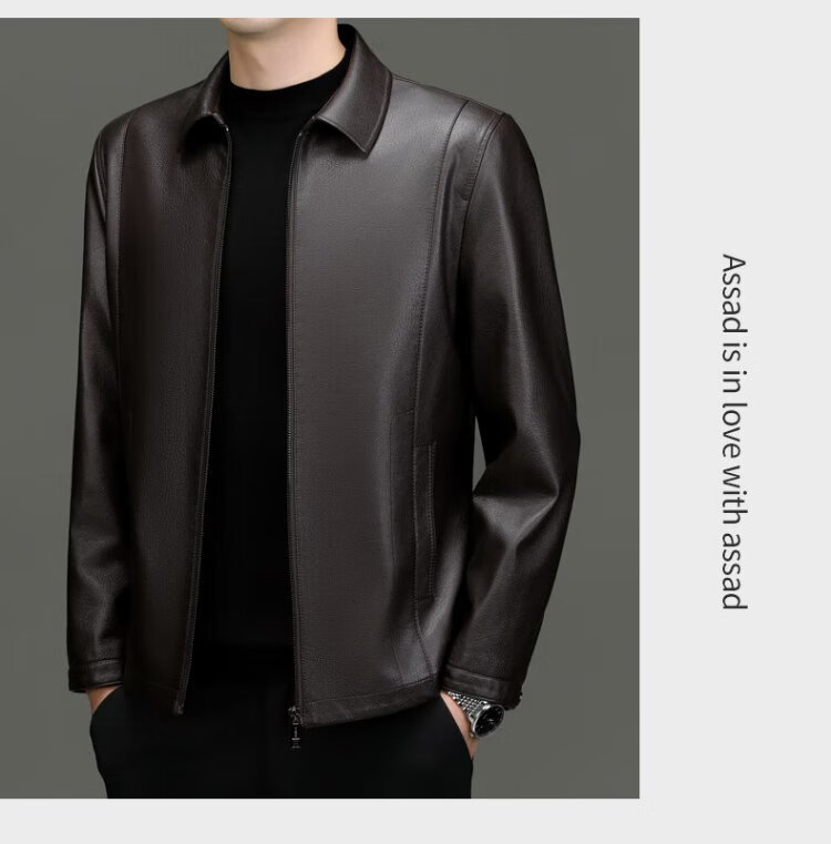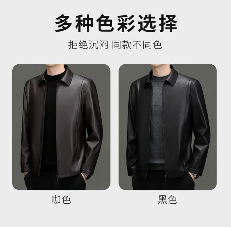 Lomon leather jacket for men in autumn and winter, middle-aged velvet thickened lapel coat, warm leather jacket, middle-aged and elderly men's top