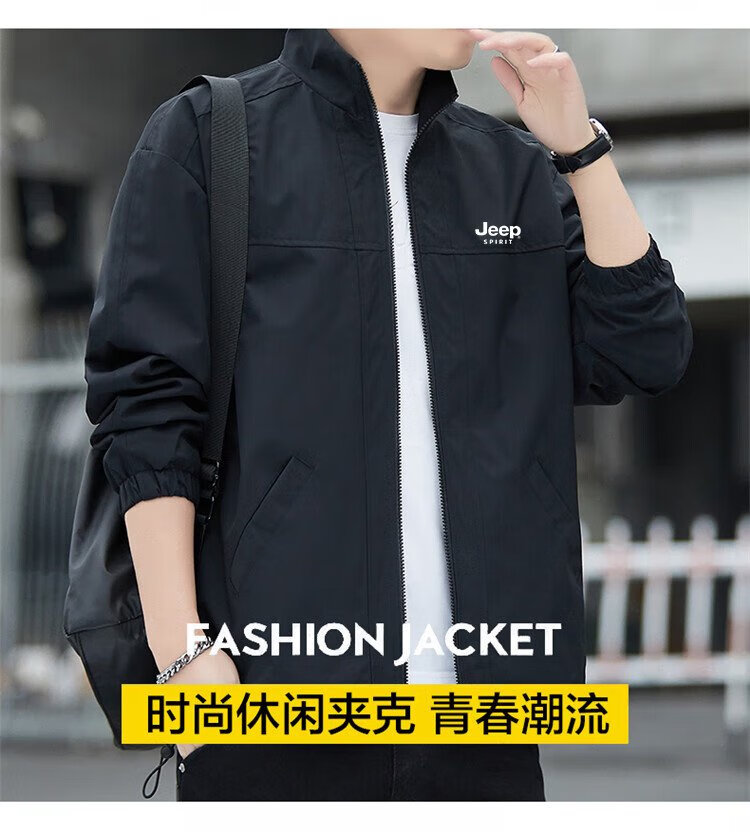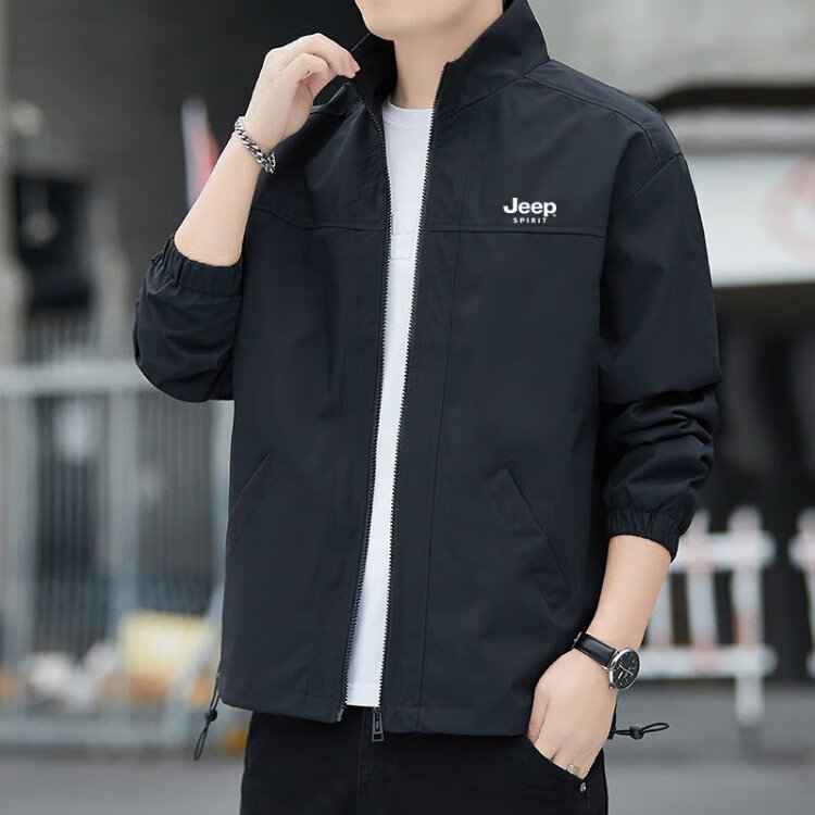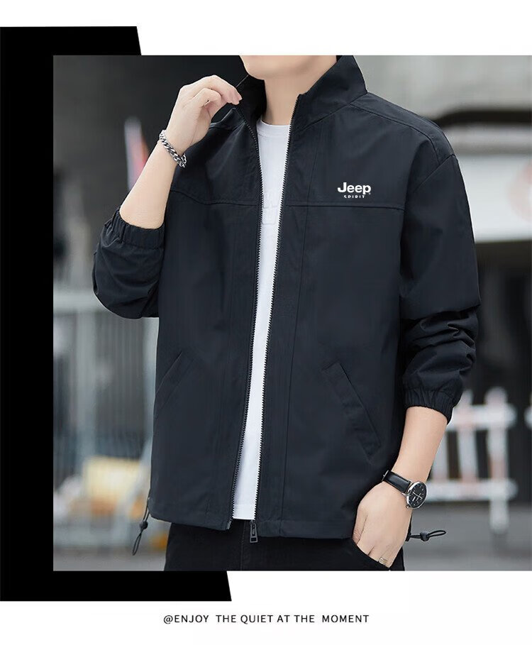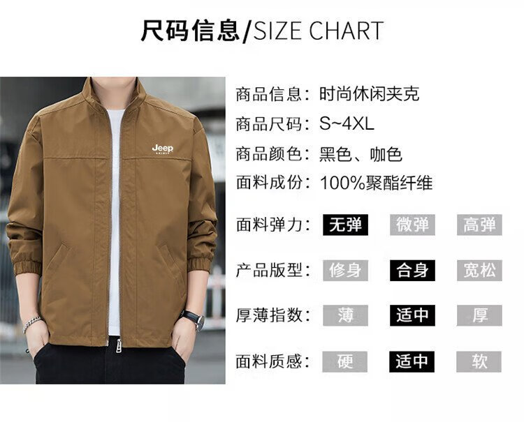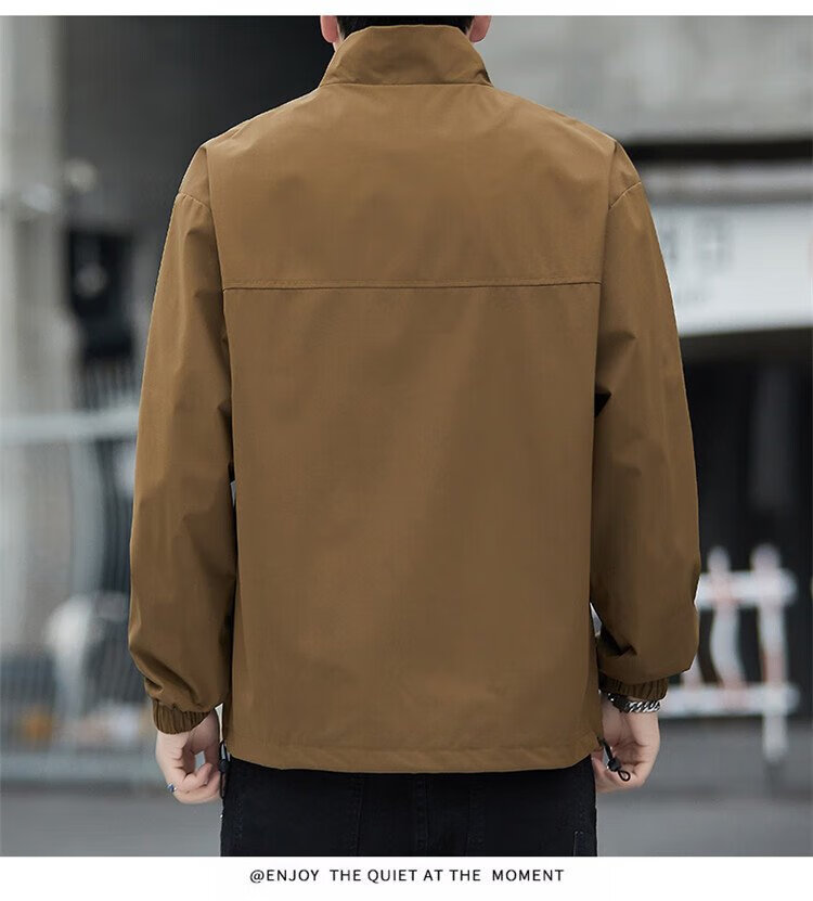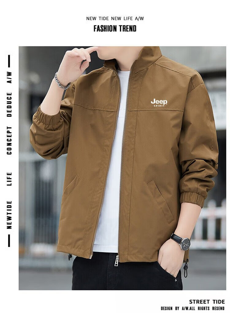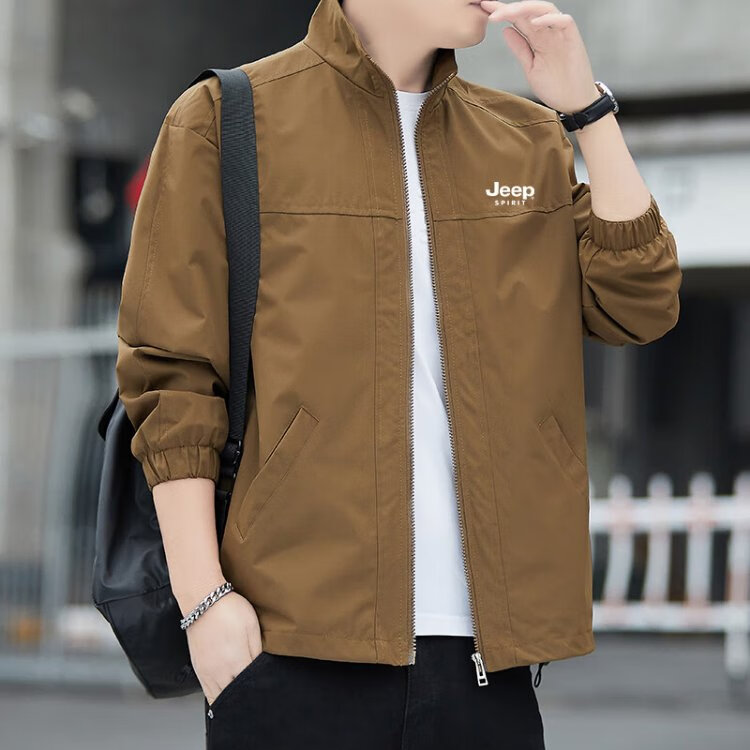 JEEP SPIRIT Jacket Men's Spring and Autumn Casual Trend Versatile Windproof Outdoor Sports Solid Color Lapel Brown L