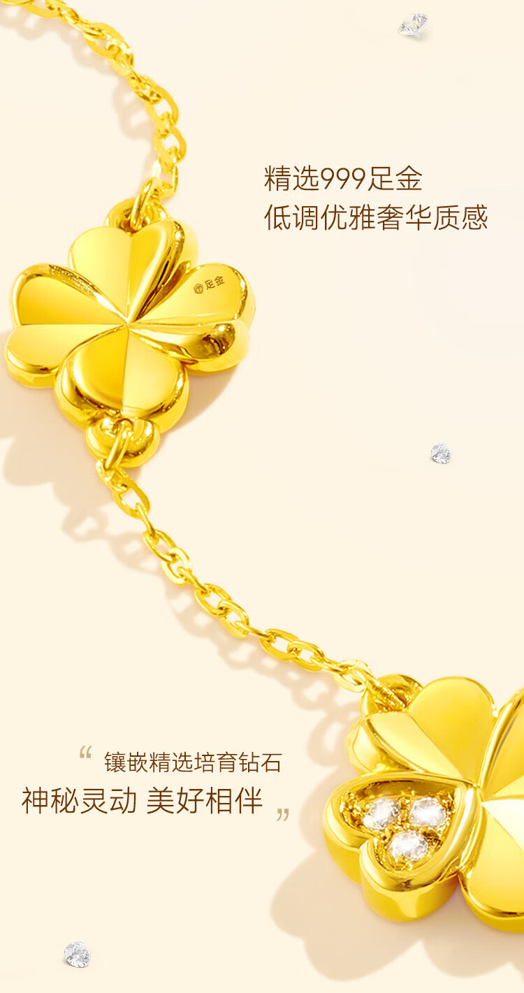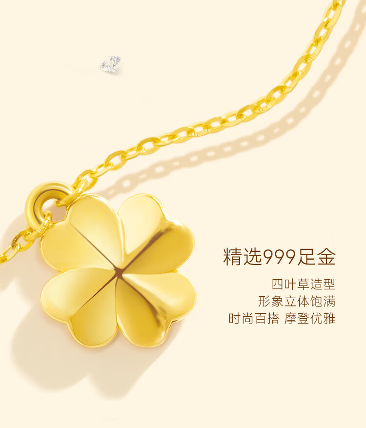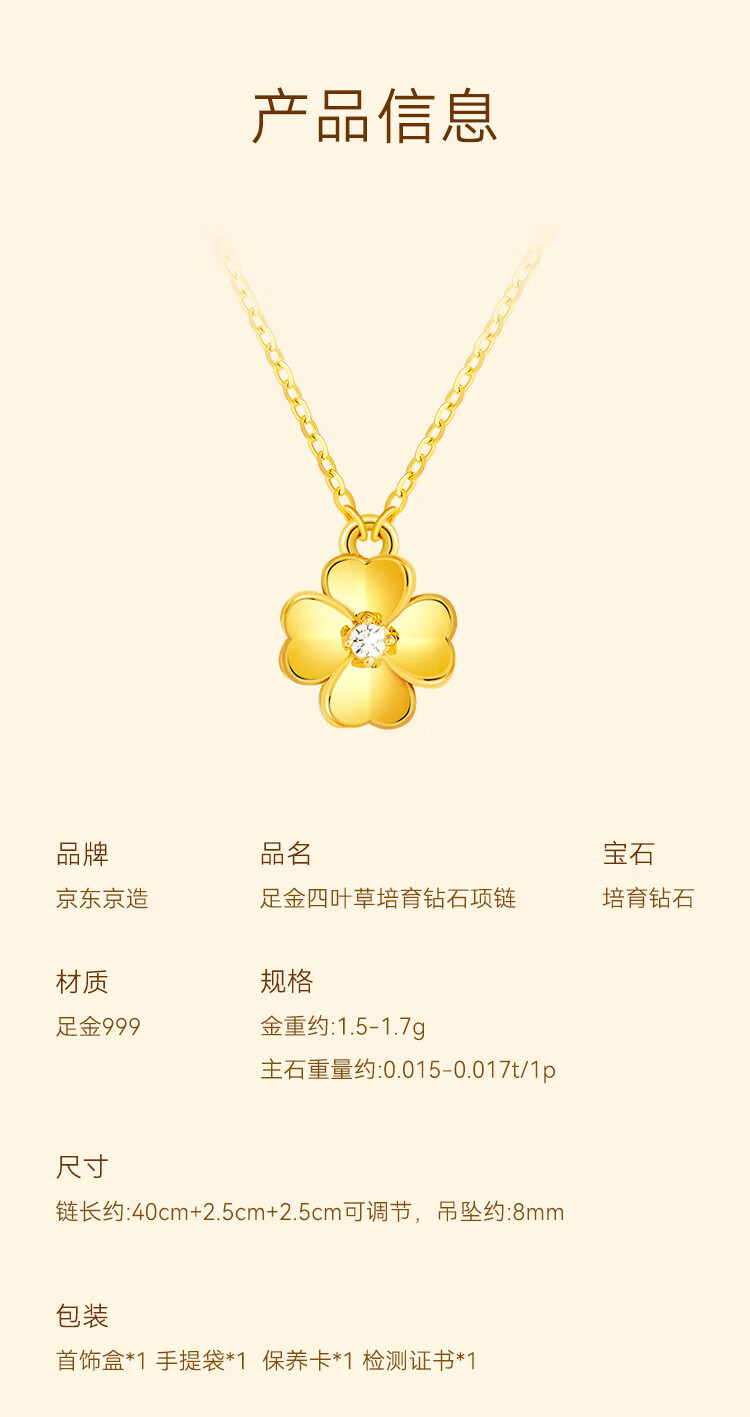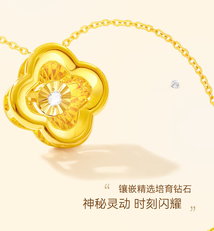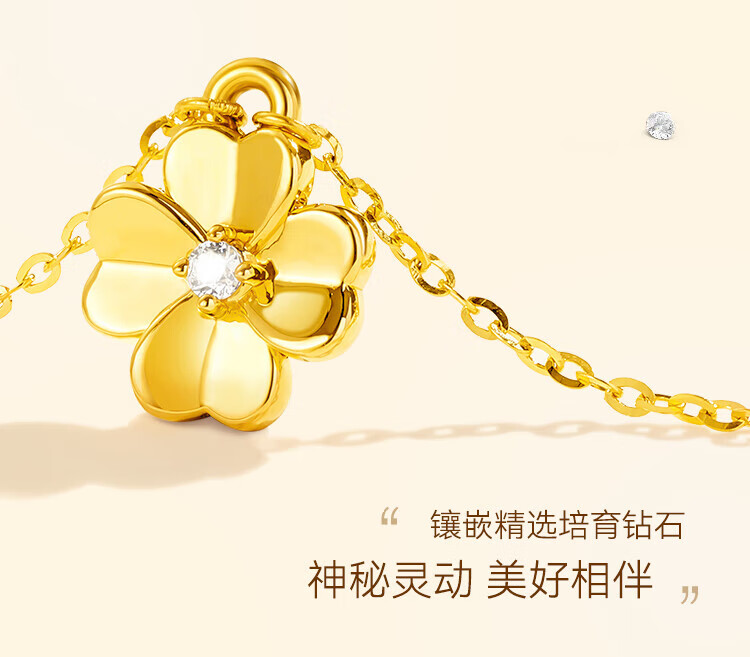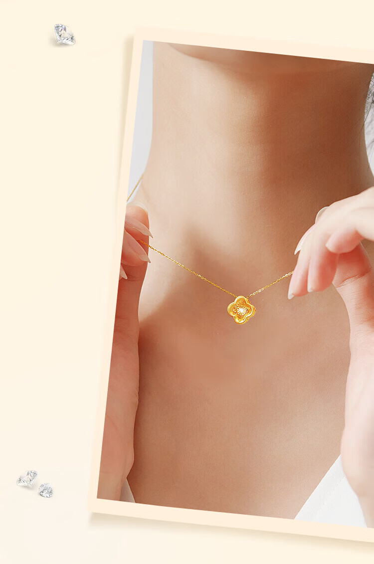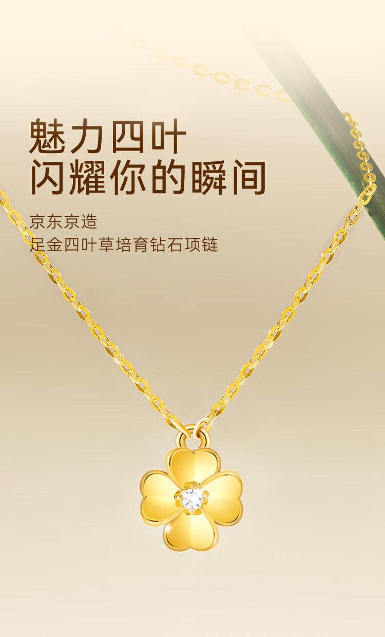 Made in Tokyo, four-leaf clover gold necklace for women 999 pure gold cultivated diamond pendant gift for girlfriend and wife 1.3g
