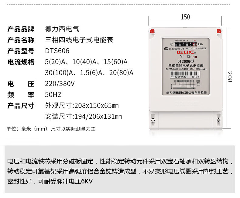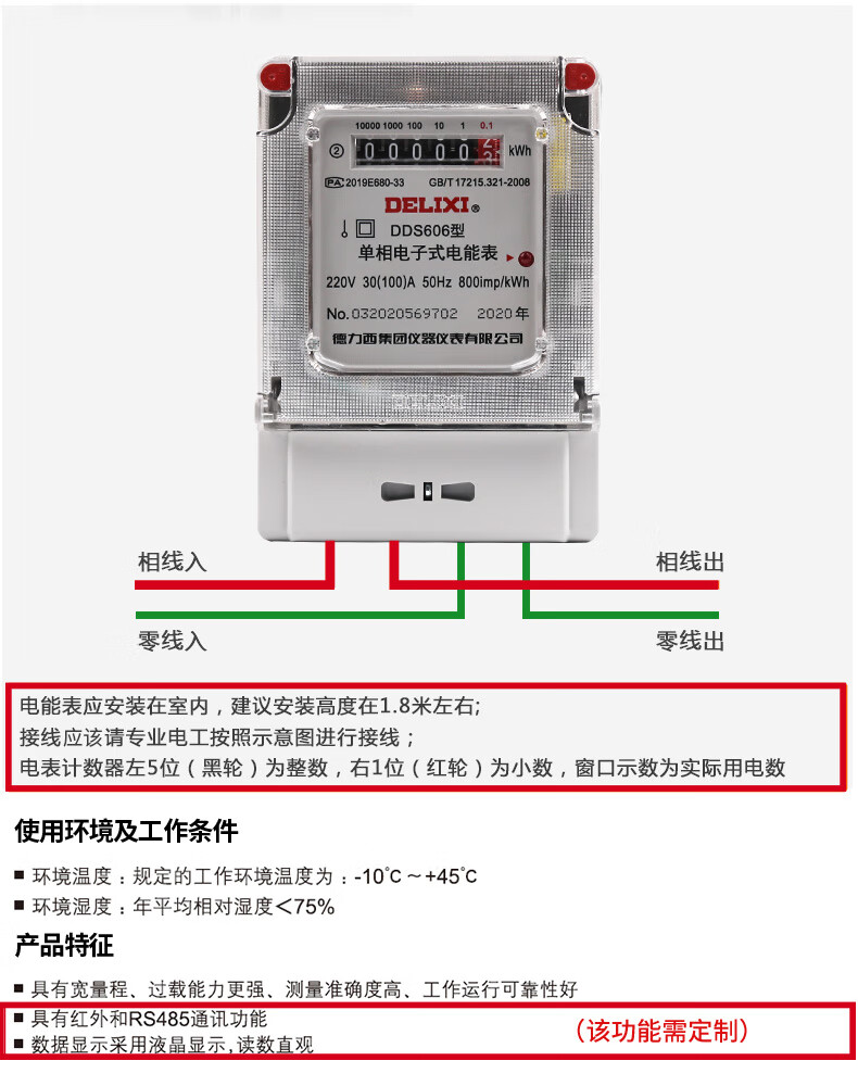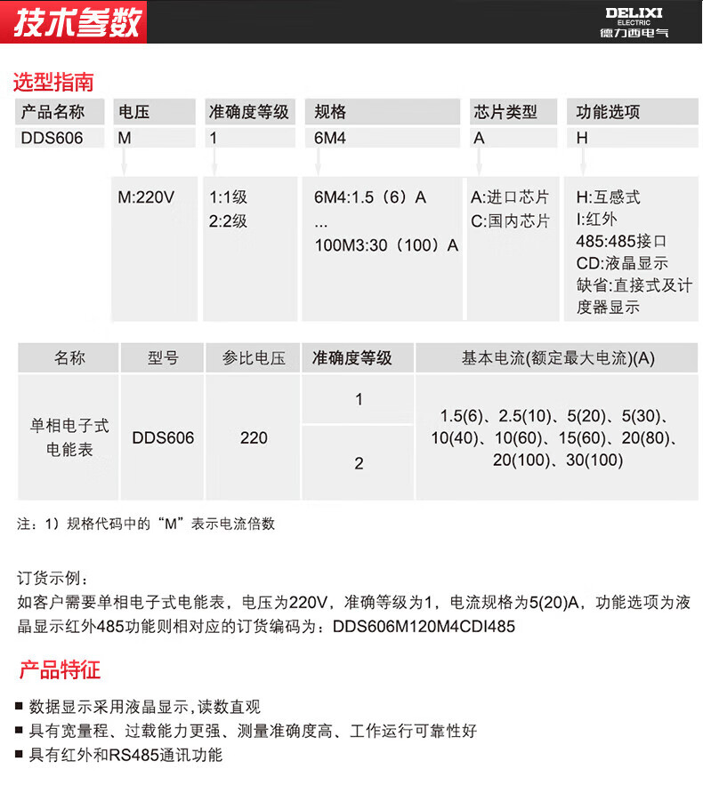 Delixi household electricity meter 220V rental house single electronic meter DDS606 series DDS606-220V-2 level-10(40)A