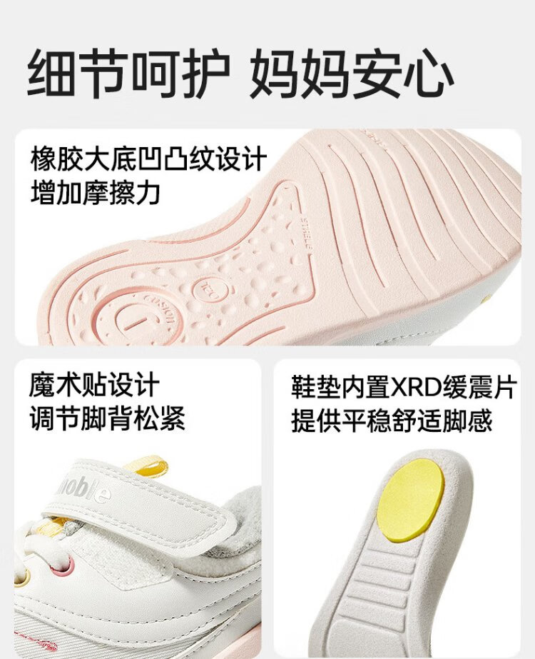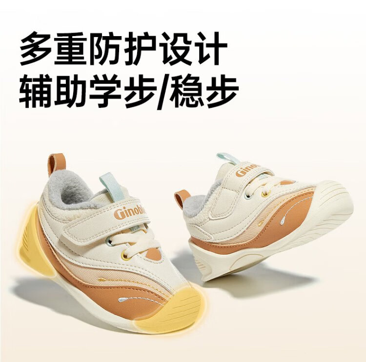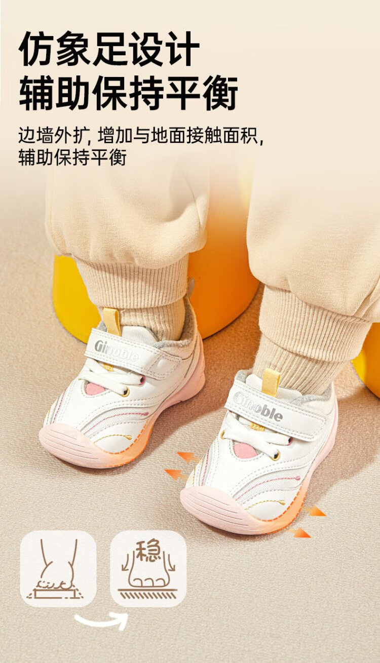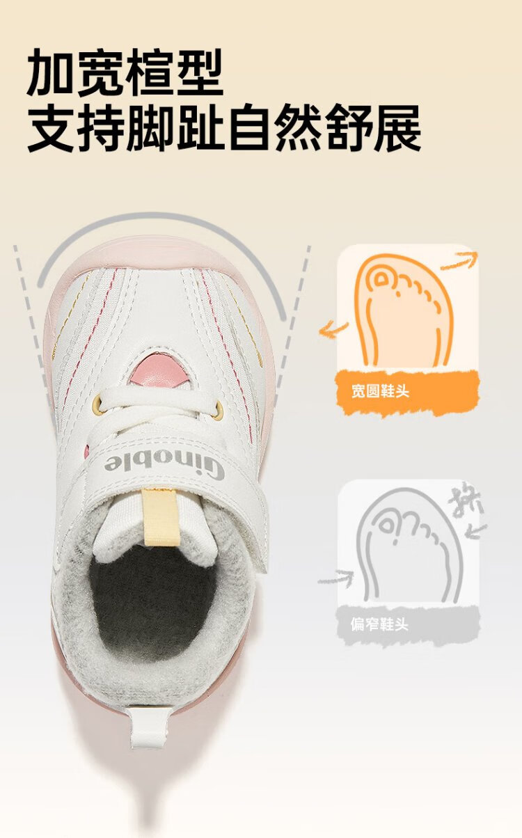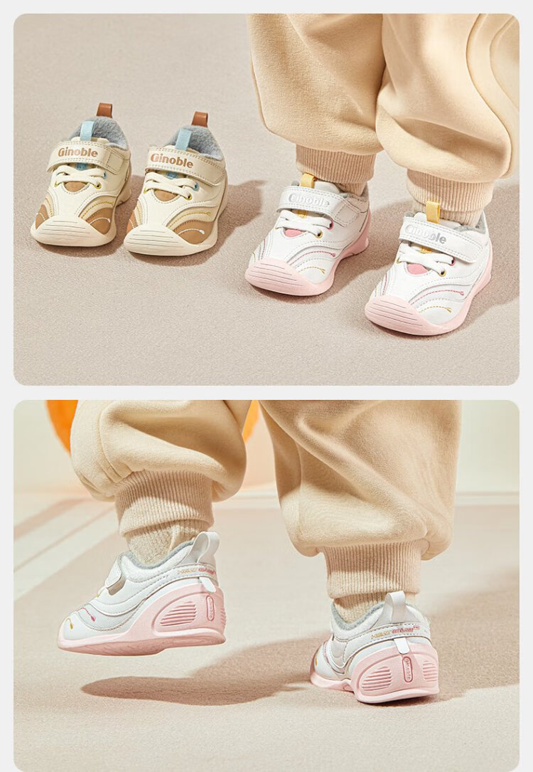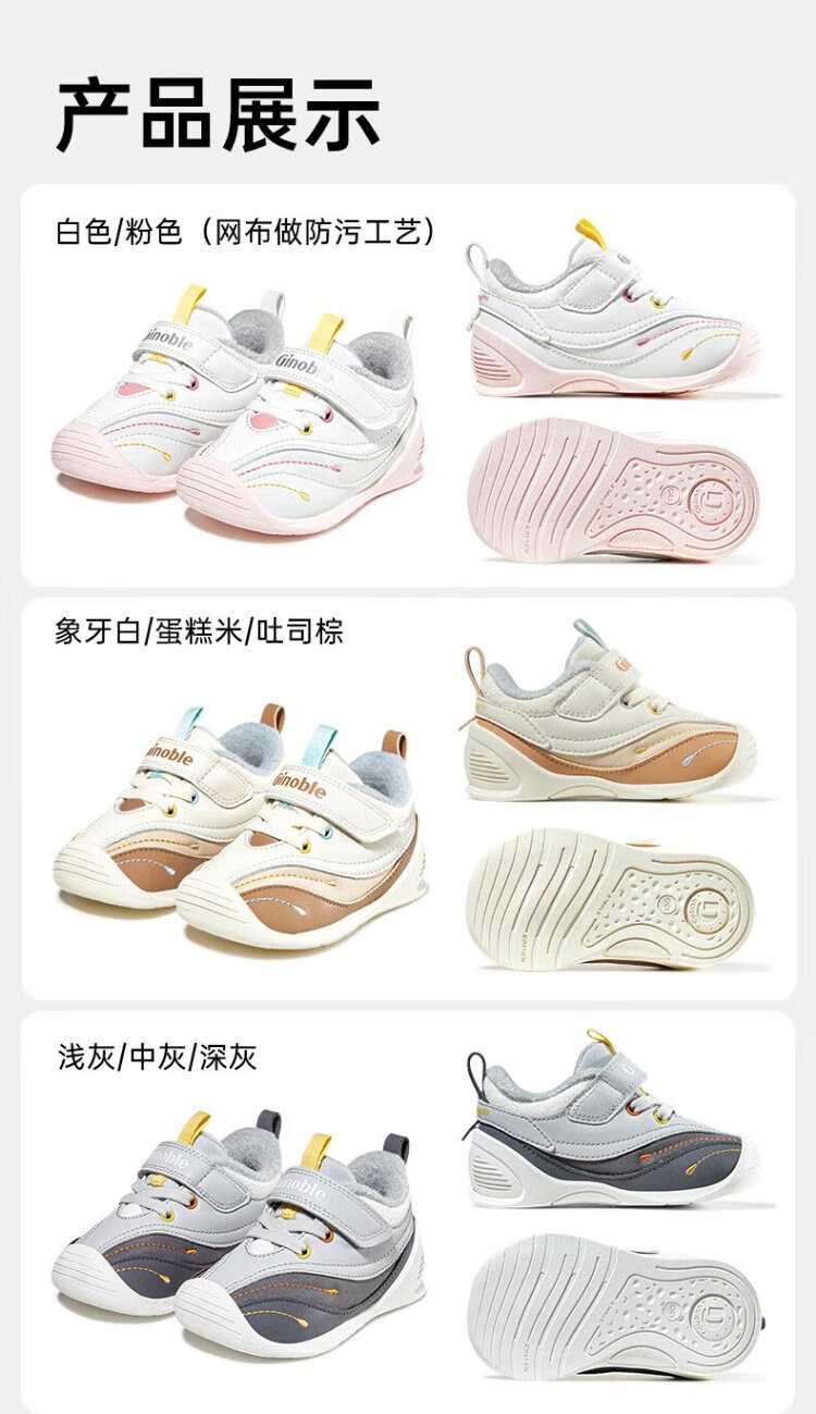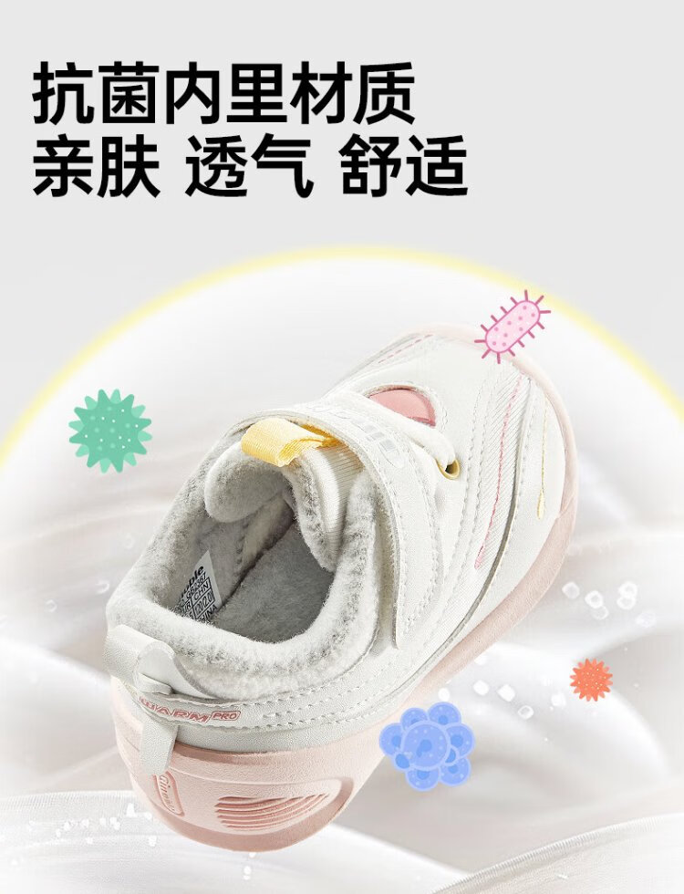 Jinopu Toddler Shoes Cotton Shoes 2024 Winter Warm Graphene 8-18 Months Men's and Women's Functional Shoes GB2367 White