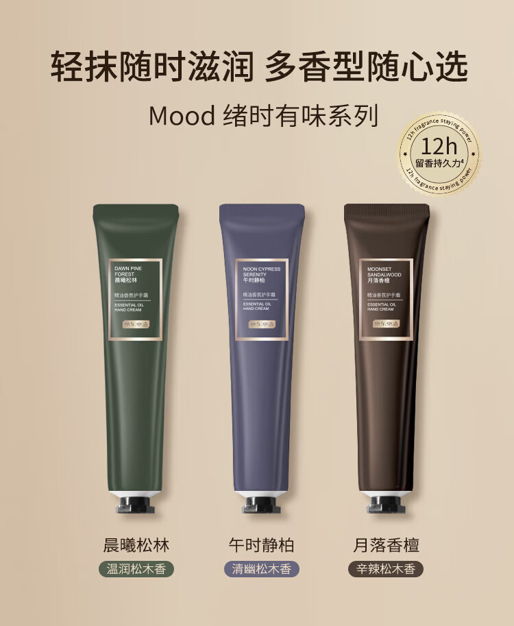 Jingjing Tokyo essential oil fragrance hand cream 3 pack (moonfall sandalwood + morning pine forest + noon quiet cypress) moisturizing milk for men and women