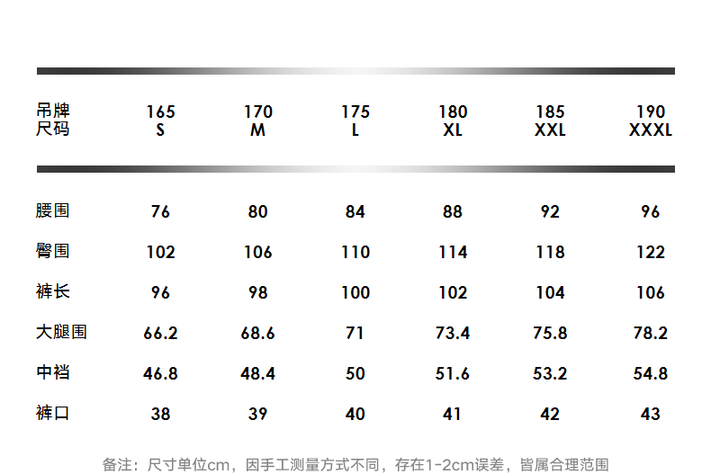 Outseam (cm) 99 cm 101.5 cm 104 cm 106.5 cm 109 cm