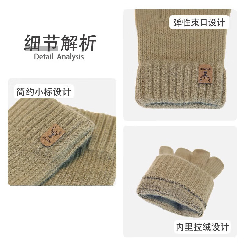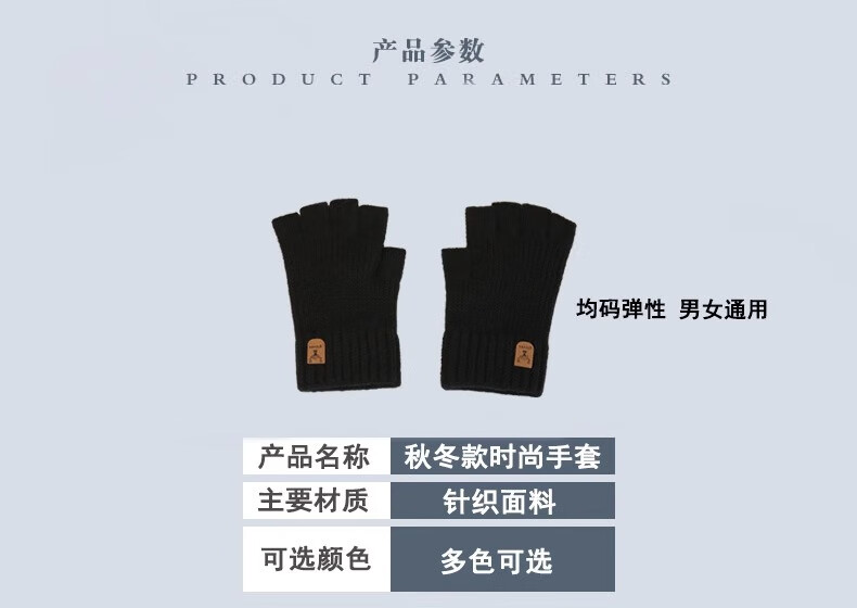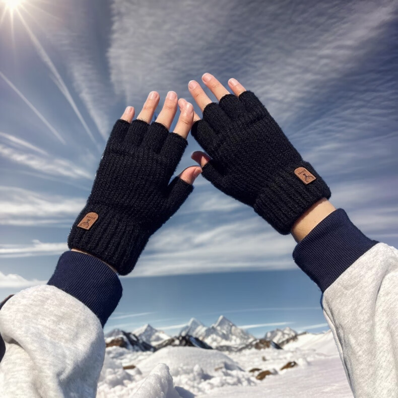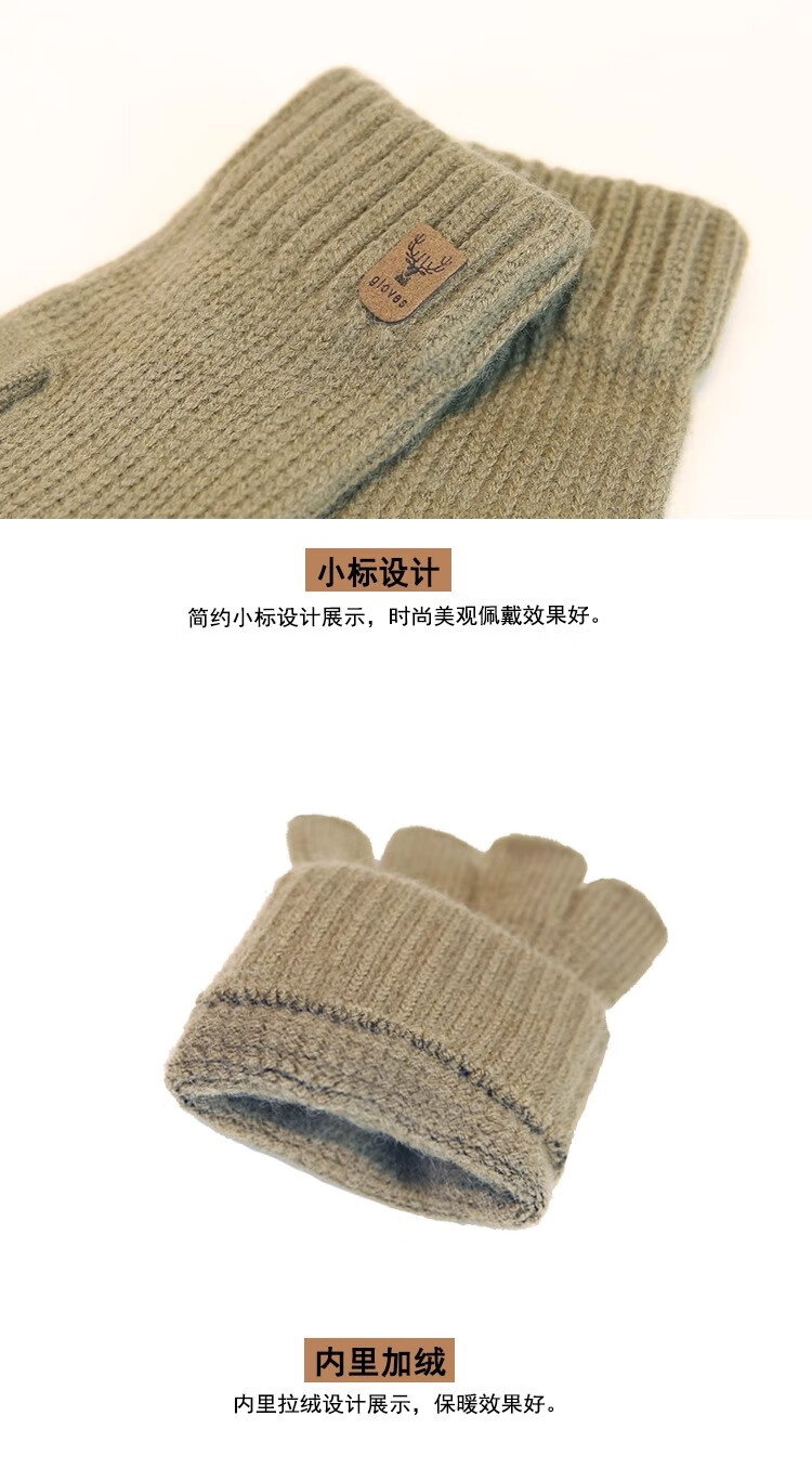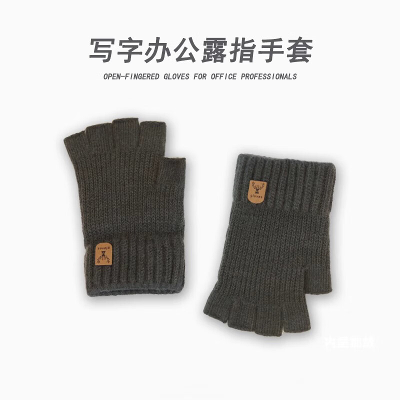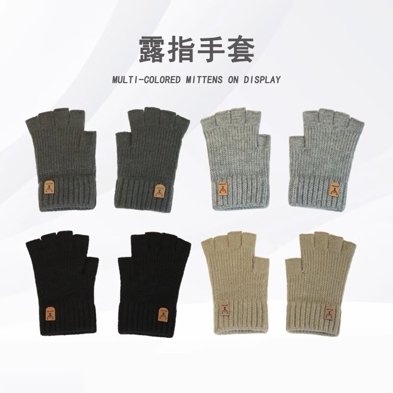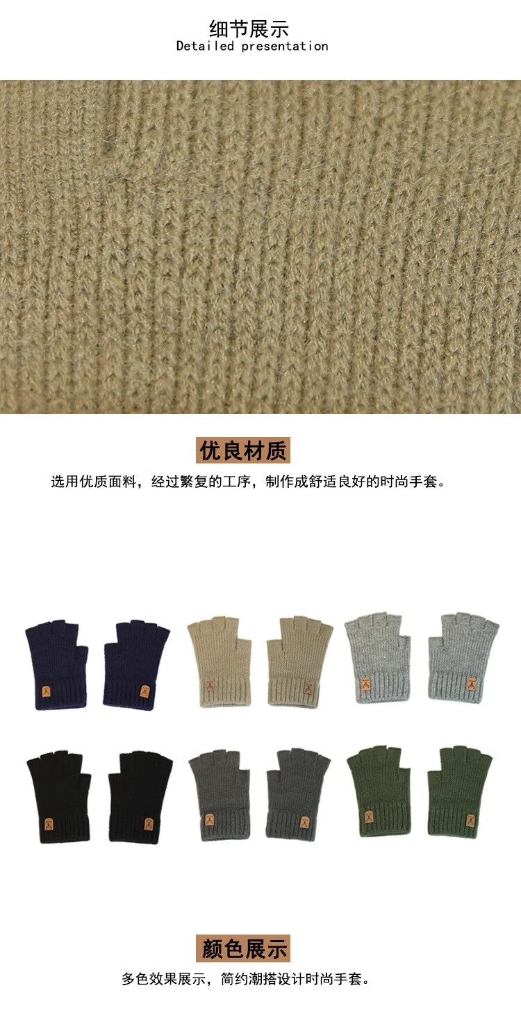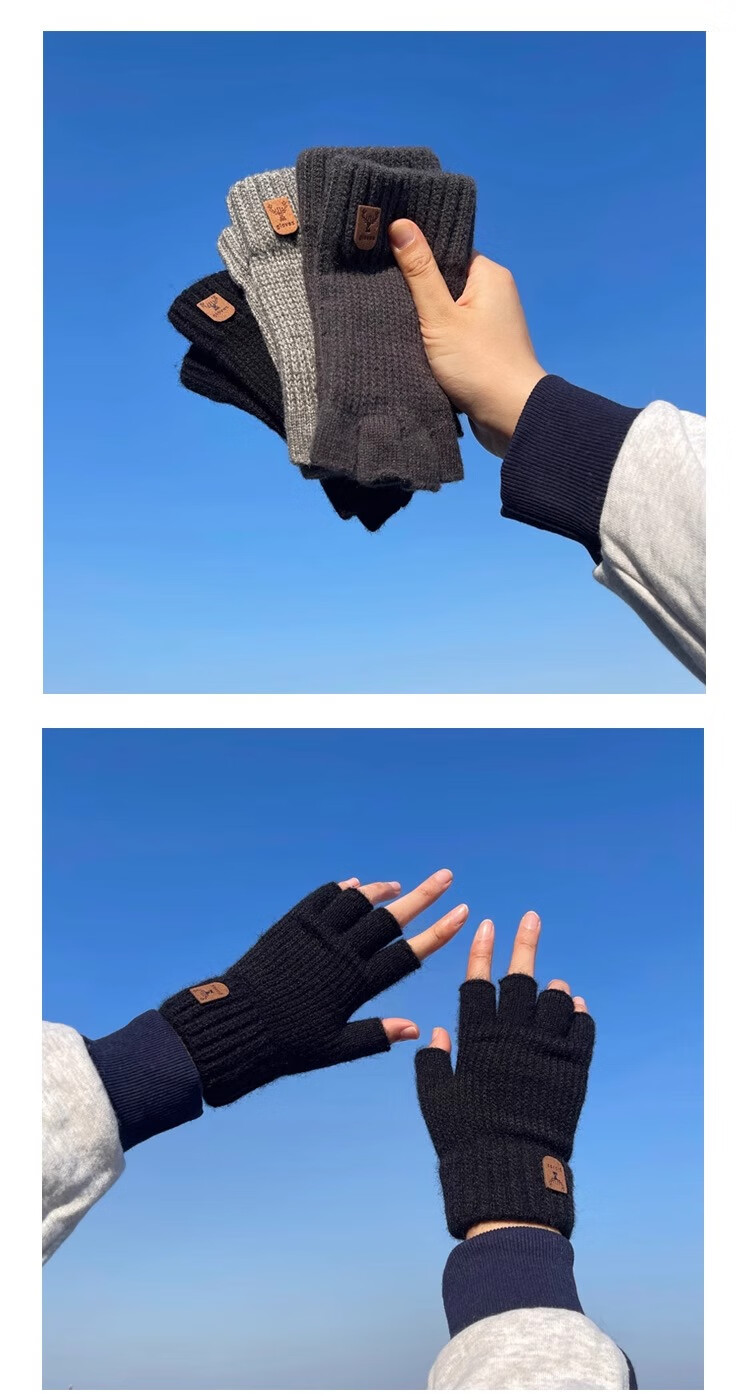 Haoguan woolen knitted gloves for men in autumn and winter with fingerless students writing, typing and riding touch screen warm half-finger leaky elastic