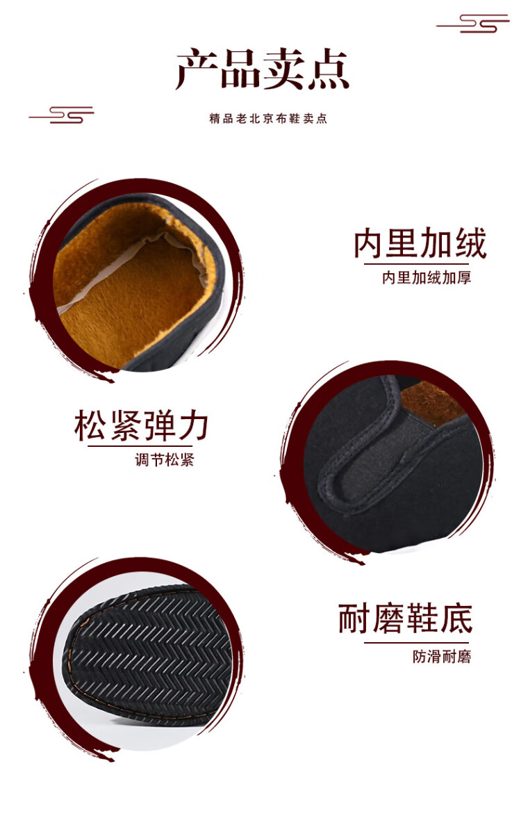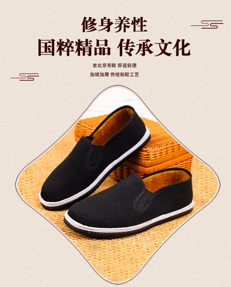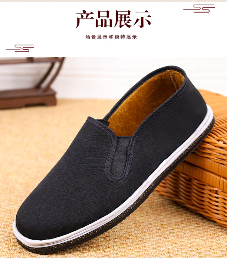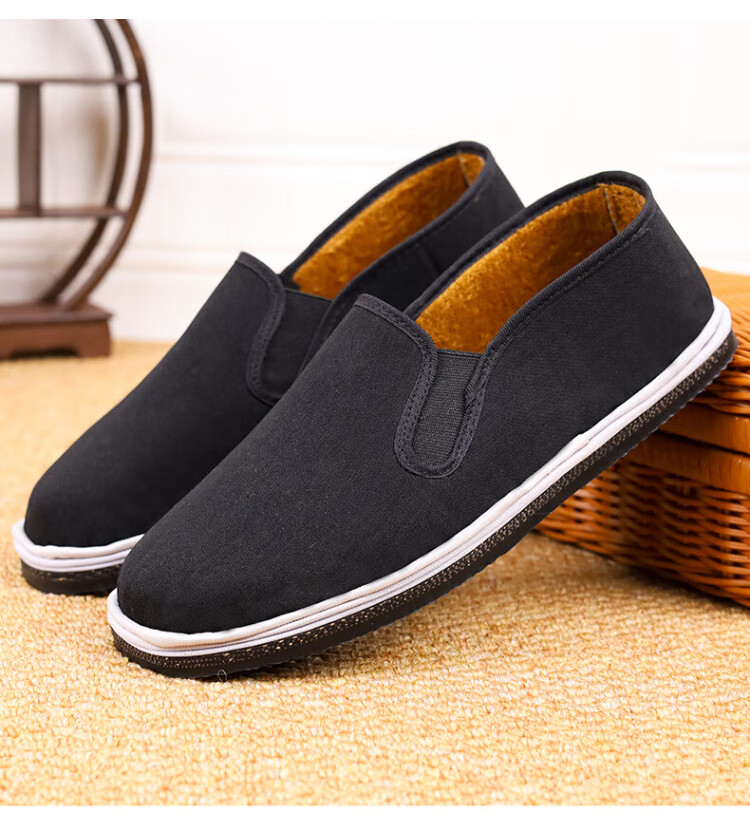 FOOTOPPO old Beijing cloth shoes men's velvet anti-slip rubber sole Beijing old cotton shoes men's traditional thousand-layer soft-soled slip-on shoes