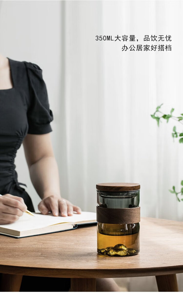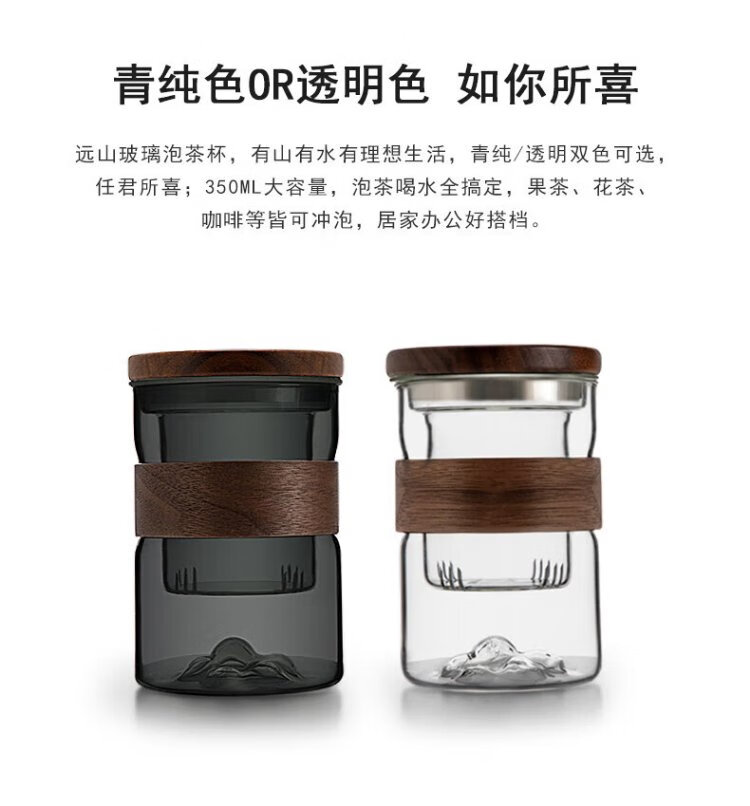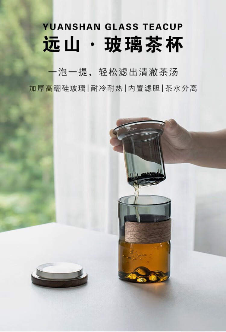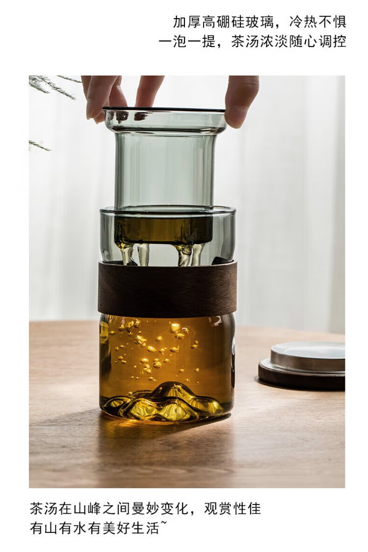 Thirty-year-old distant mountain glass tea cup tea and water separation office large-capacity personal dedicated drinking cup for women and men with lid