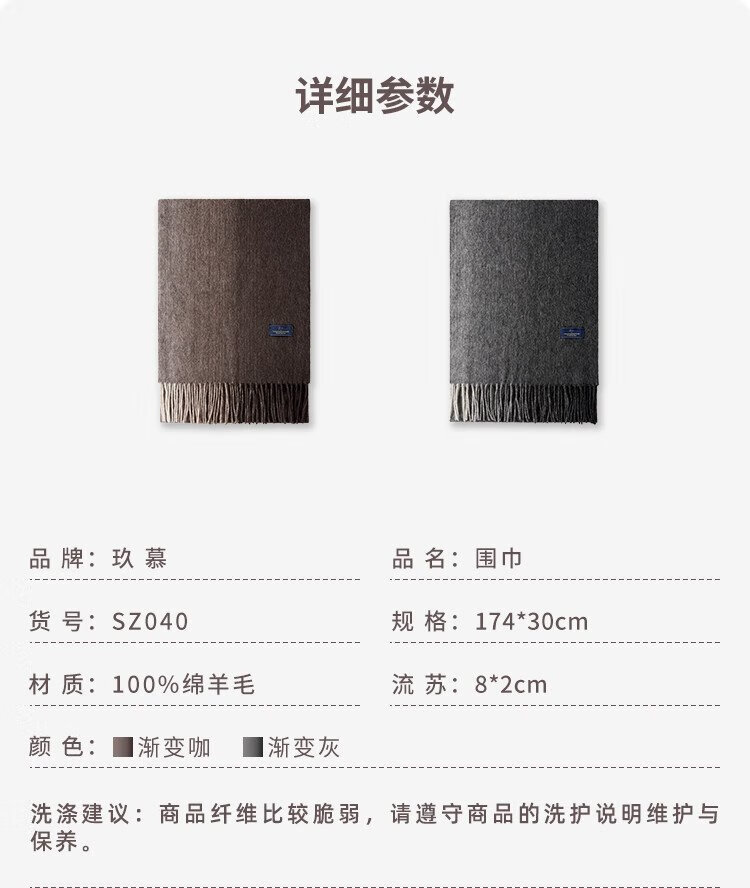 JIUMU pure wool scarf men's autumn and winter men's scarf warm neck scarf boys birthday Christmas gift gift box