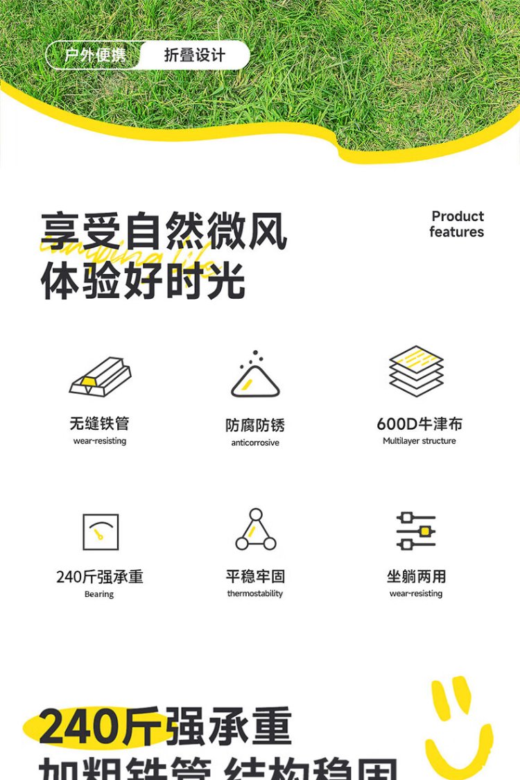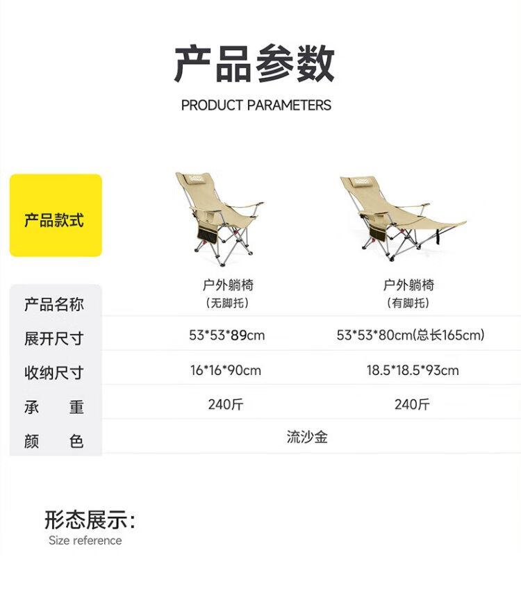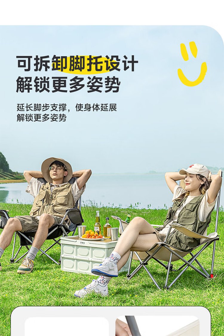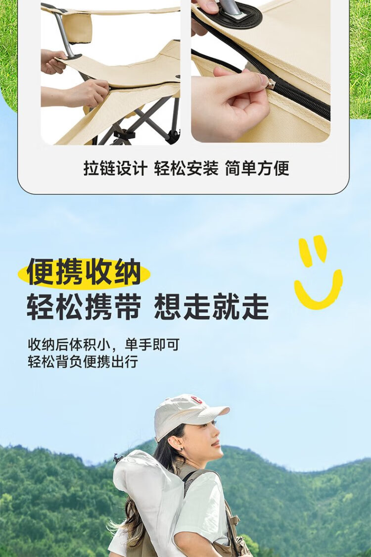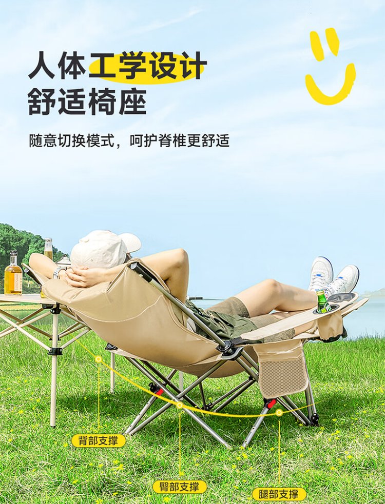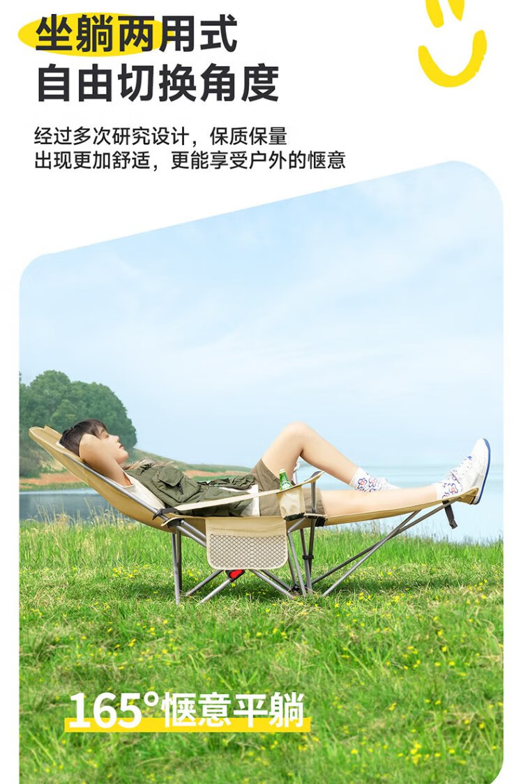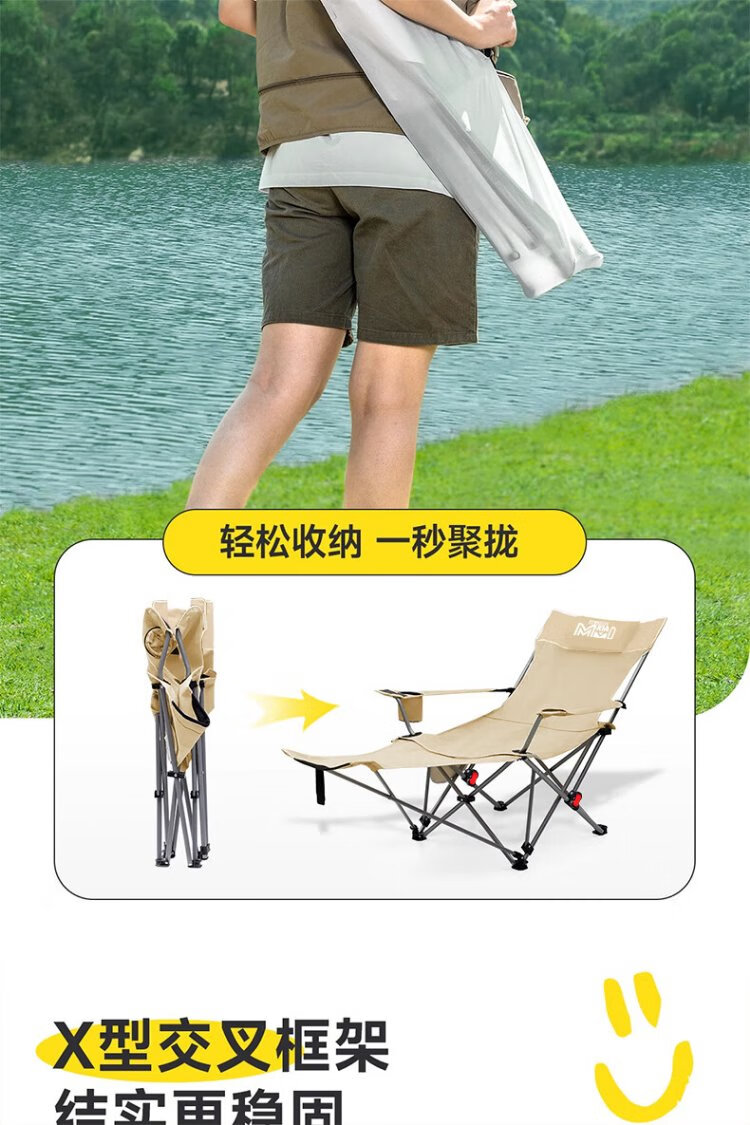 Xiaomo four-speed folding deck chair, outdoor folding chair, camping chair, portable nap chair, nap bed with footrest