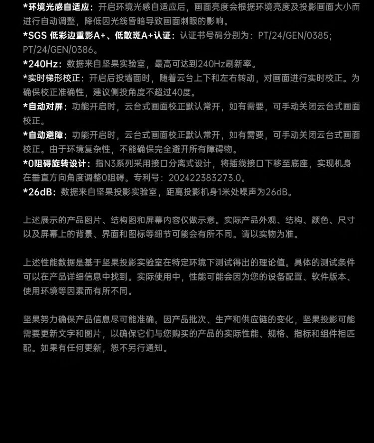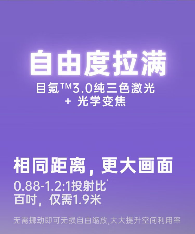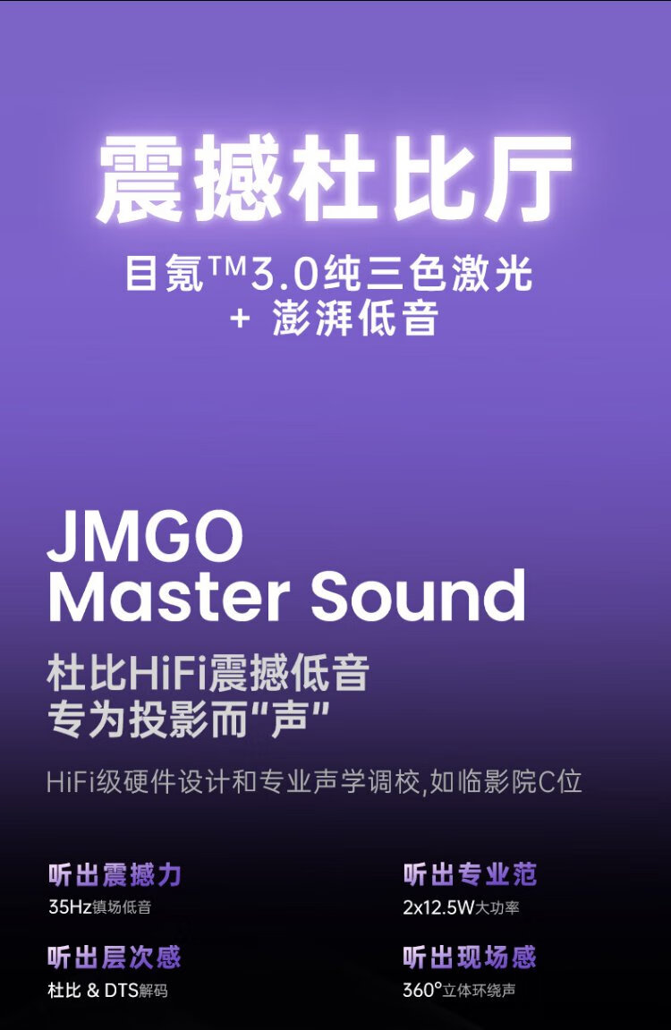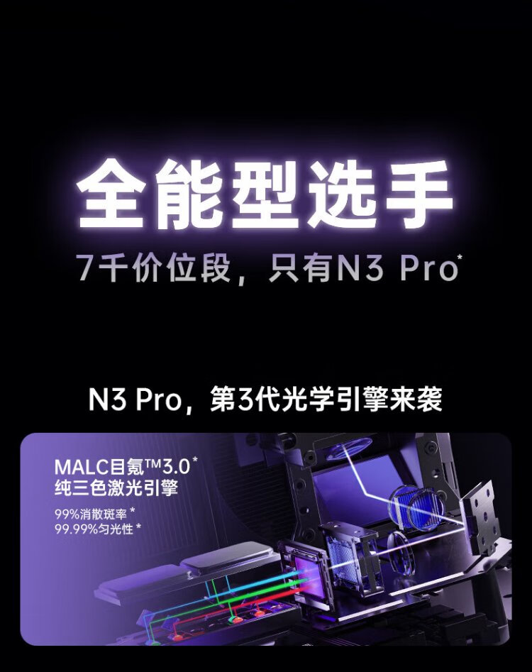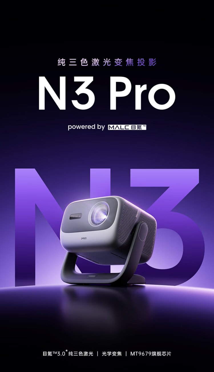 JMGO Projection (JMGO) N3 Pro pure three-color laser zoom projection 3000lm + 1.9 meters for 100-inch large screen 4K ultra-high-definition pan-tilt projector home theater 20% national subsidy