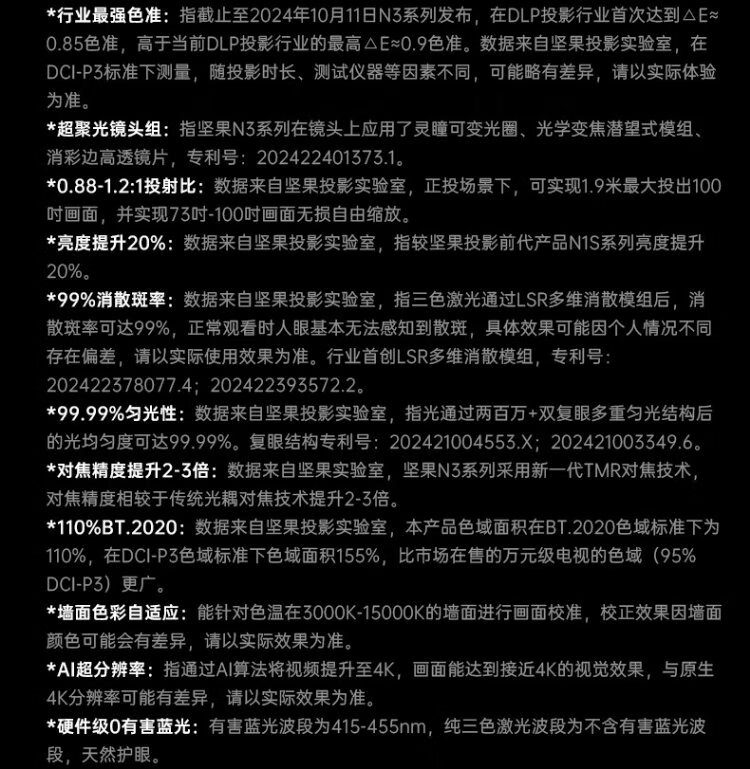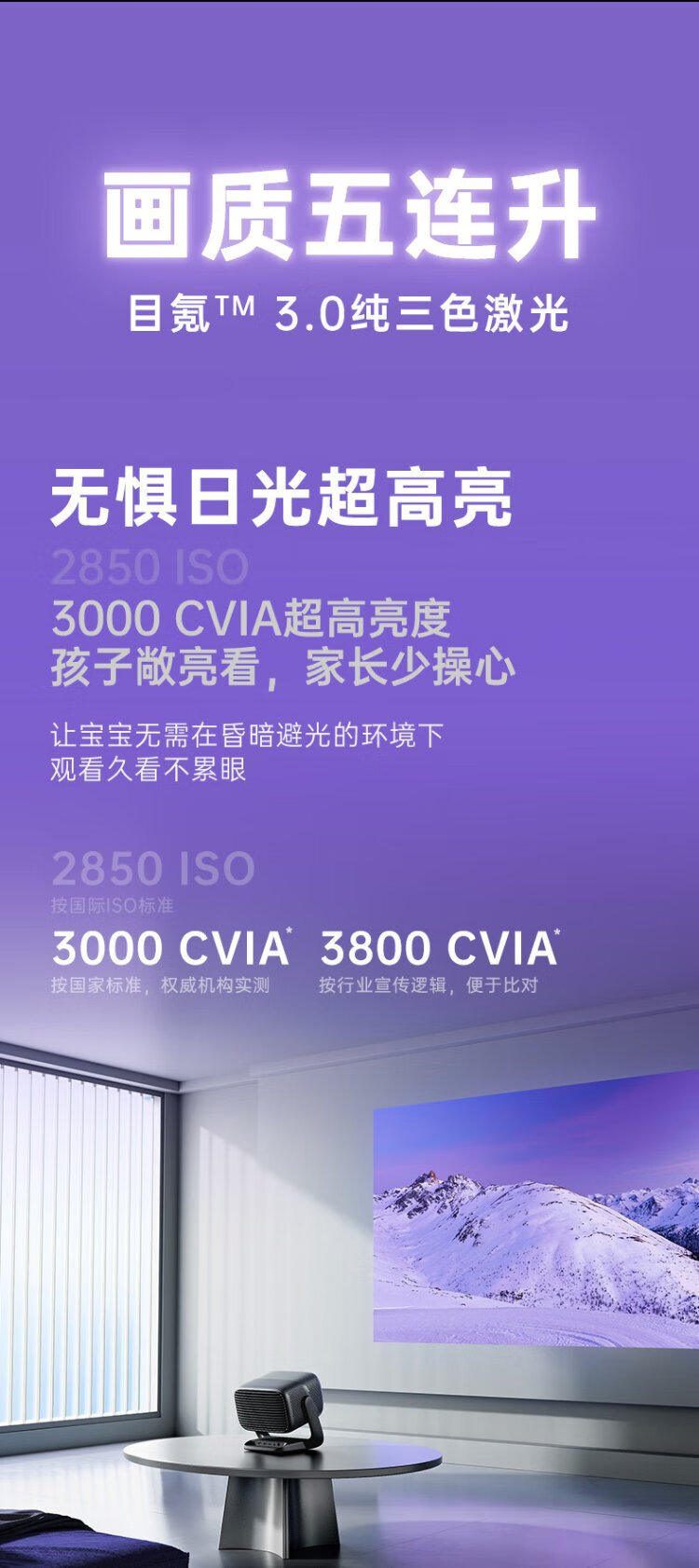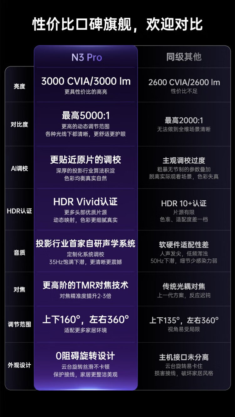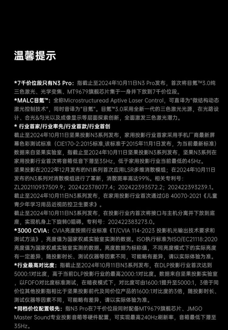 JMGO Projection (JMGO) N3 Pro pure three-color laser zoom projection 3000lm + 1.9 meters for 100-inch large screen 4K ultra-high-definition pan-tilt projector home theater 20% national subsidy