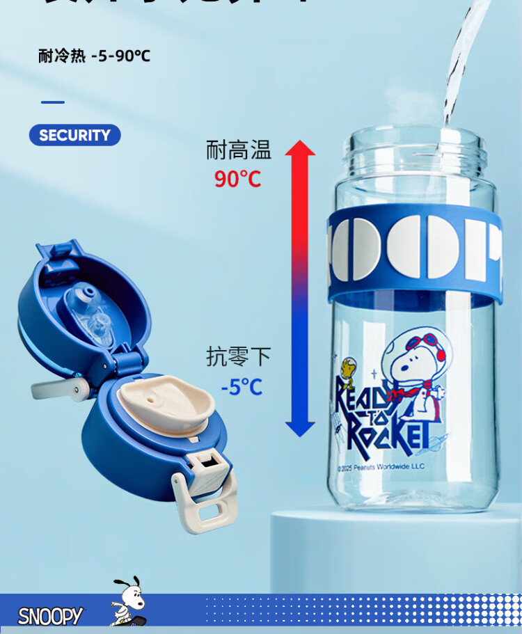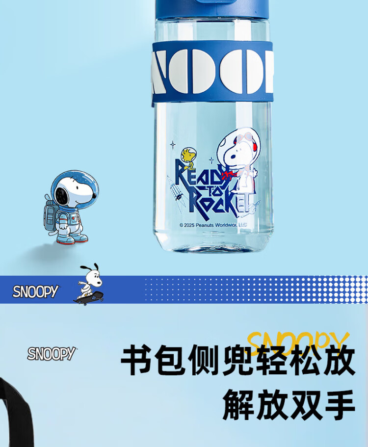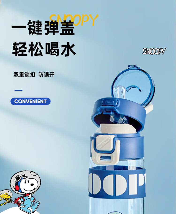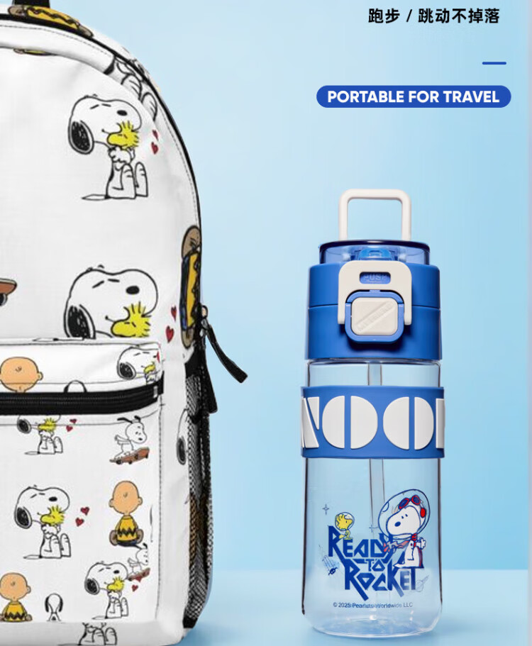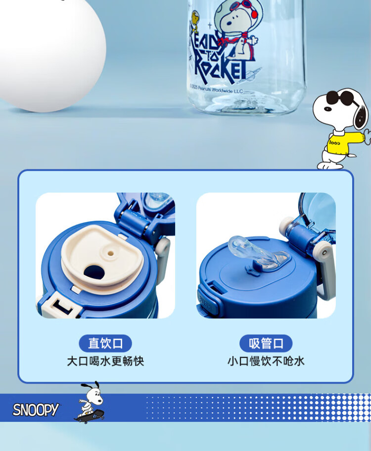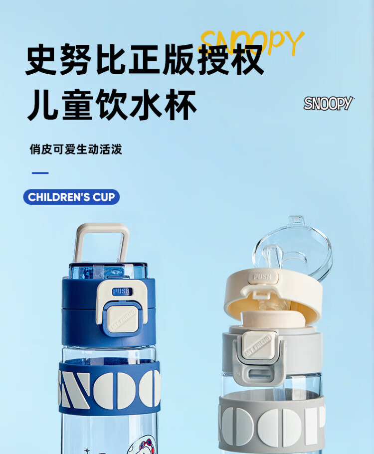 Snoopy (SNOOPY) children's water cup, large capacity, portable double drinking plastic kettle, high temperature resistant straw cup for male and female students going to school