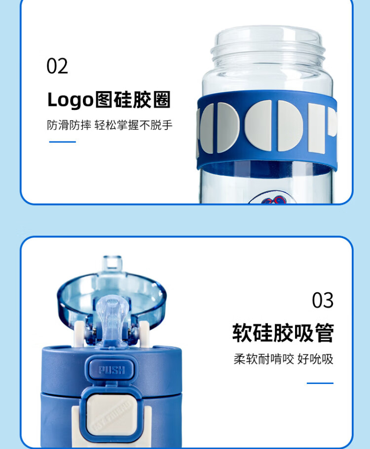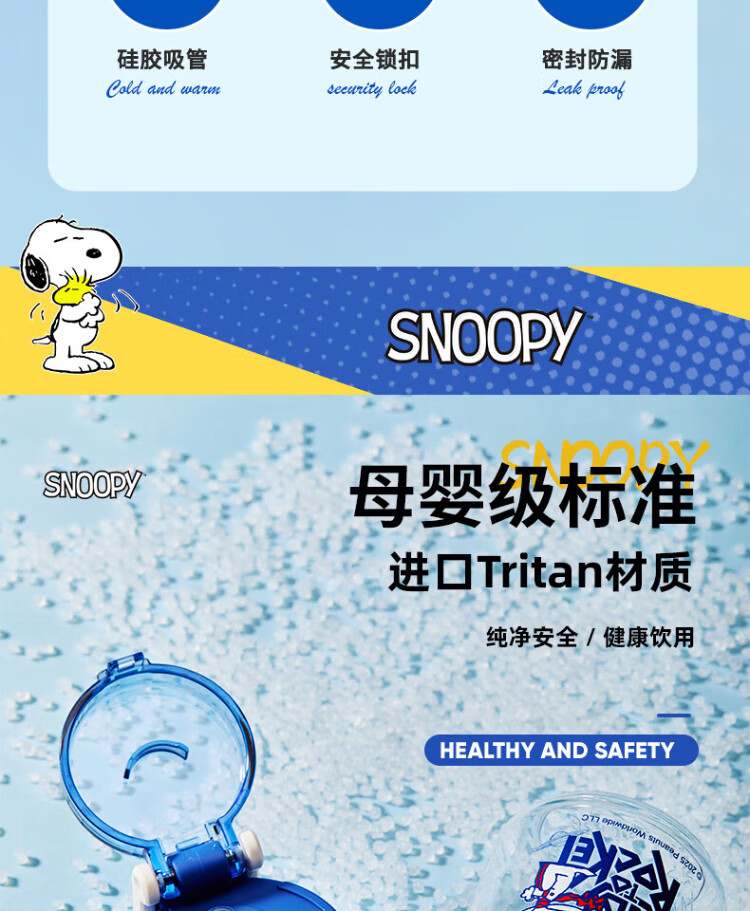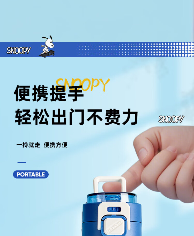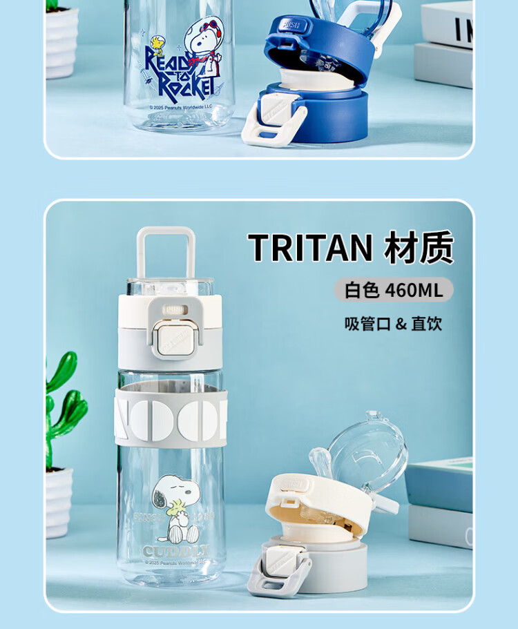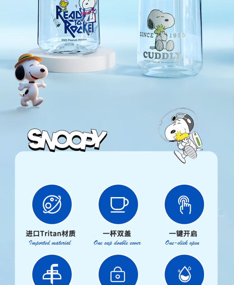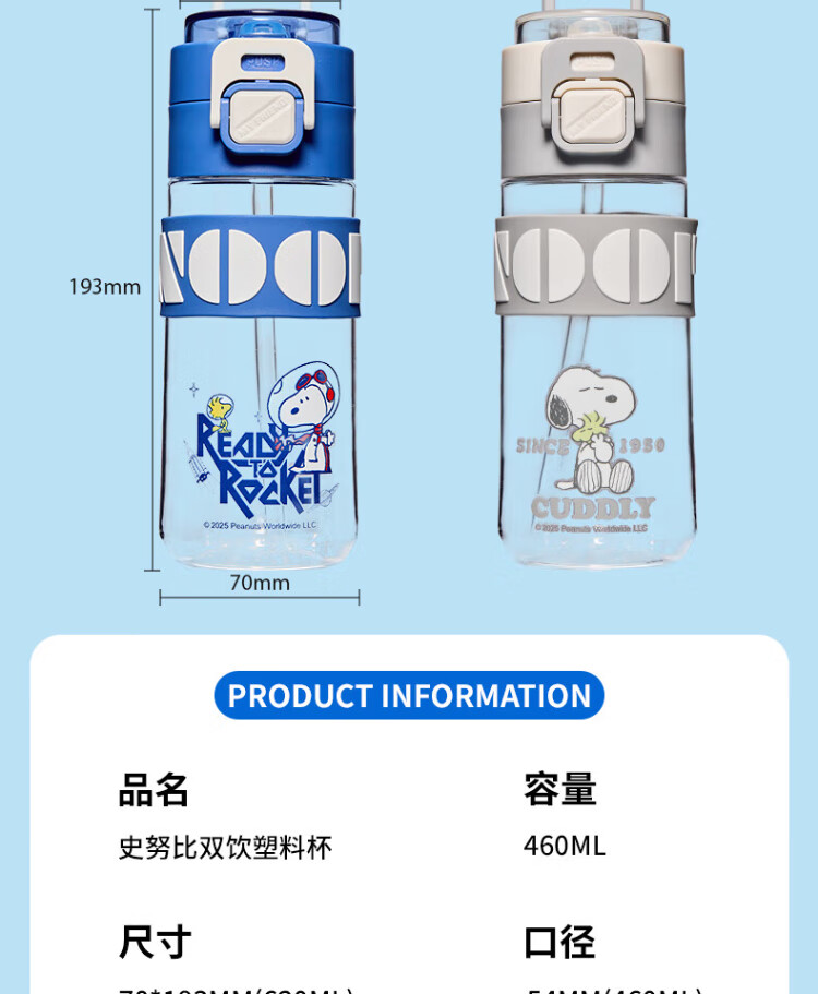 Snoopy (SNOOPY) children's water cup, large capacity, portable double drinking plastic kettle, high temperature resistant straw cup for male and female students going to school