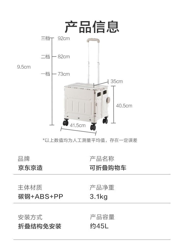 Made in Jingdong, Juneng installed folding shopping cart, supermarket trolley, tool cart, outdoor hand trailer, 45L four-wheel
