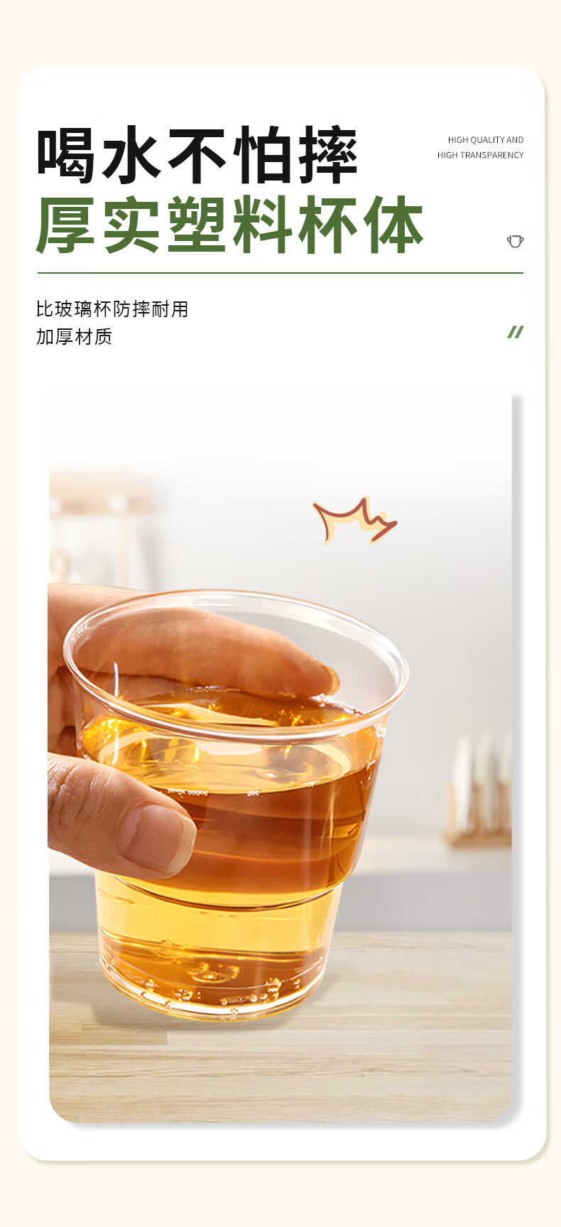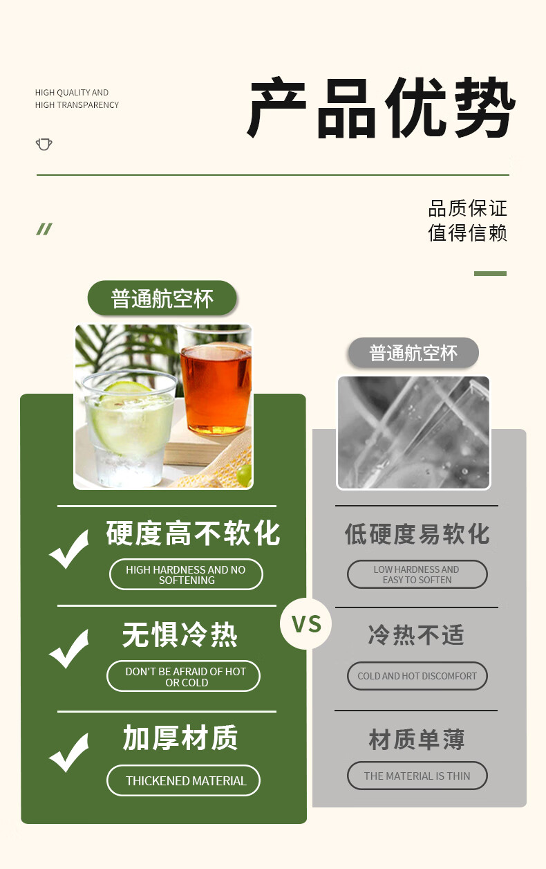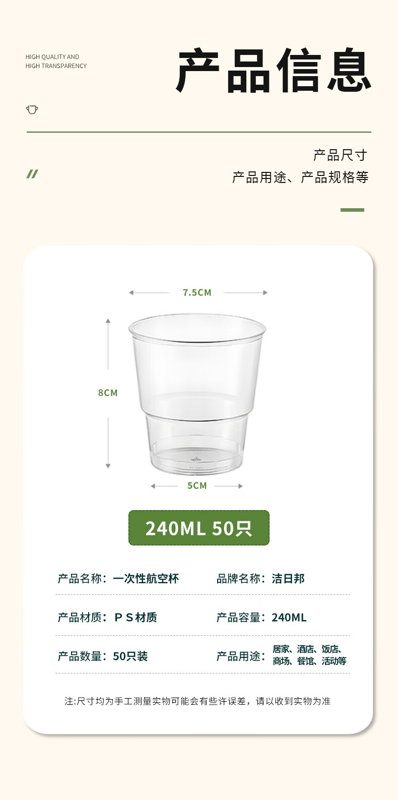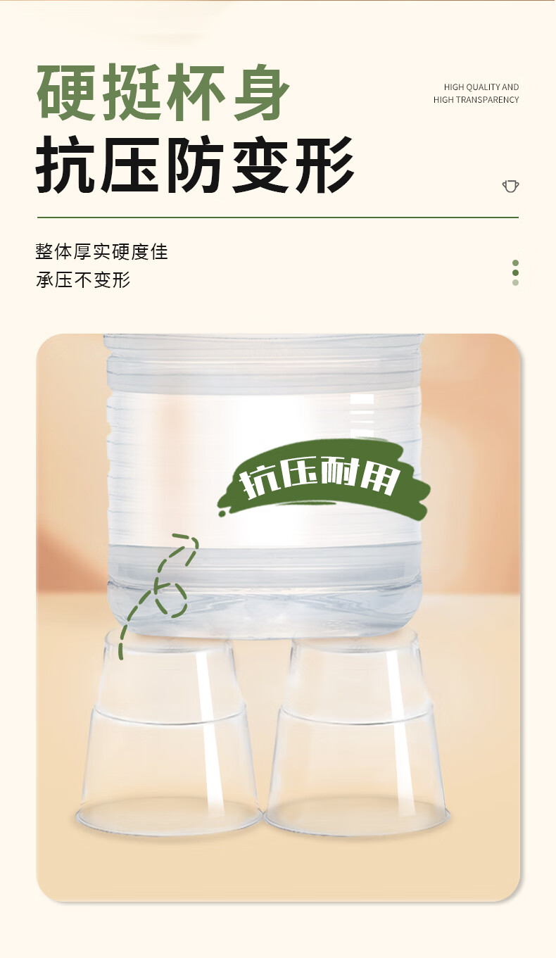 Jielibang aviation cup 240ml*50 disposable water cups thickened hard plastic high temperature resistant transparent stepped outdoor portable