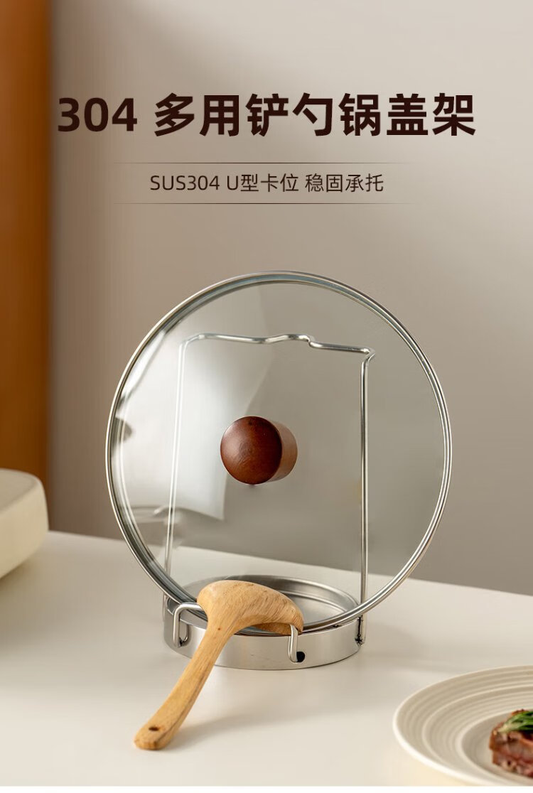 Onlycook304 stainless steel pot lid rack, multifunctional soup spoon and colander rack, table-mounted stand-free pot lid storage rack
