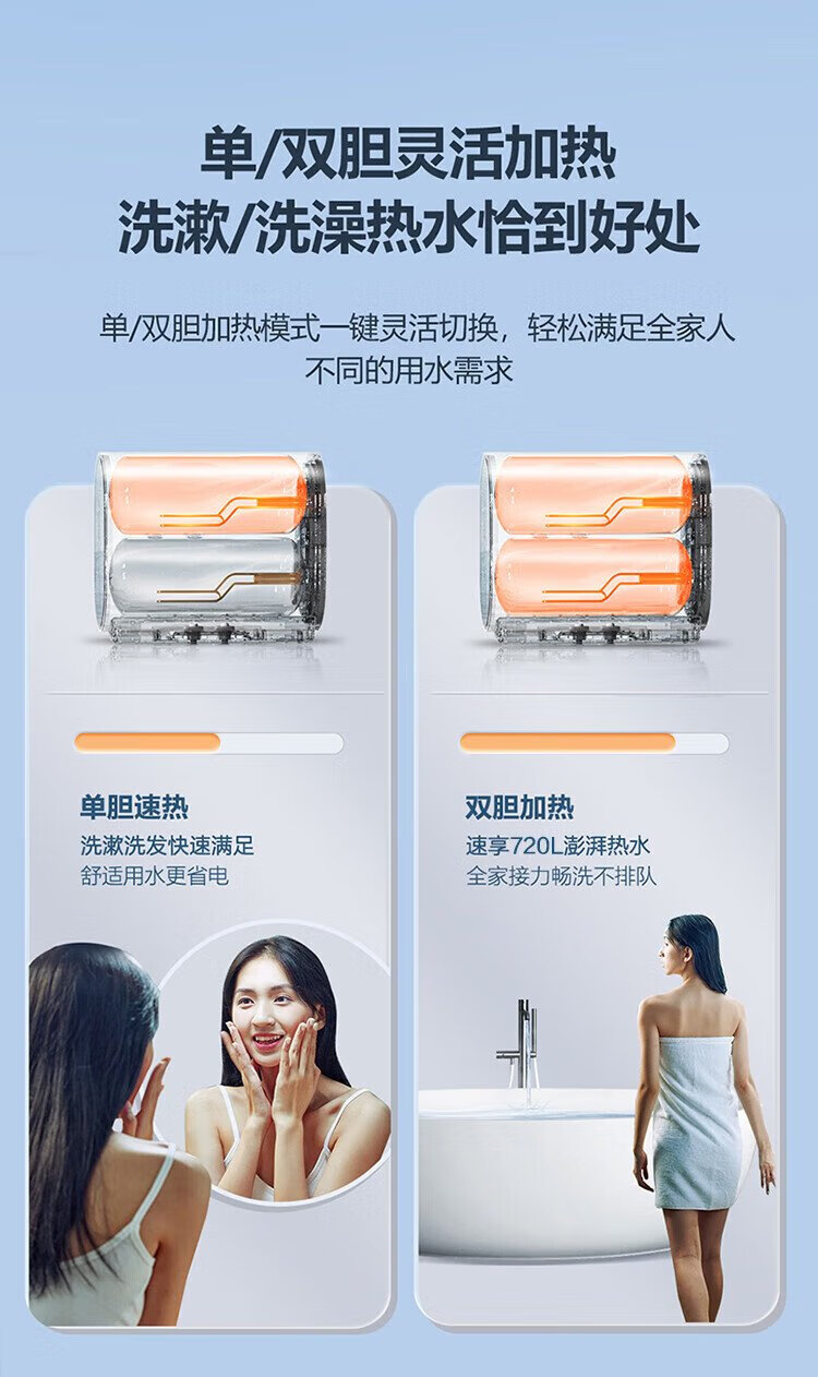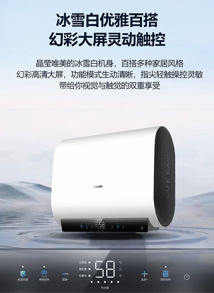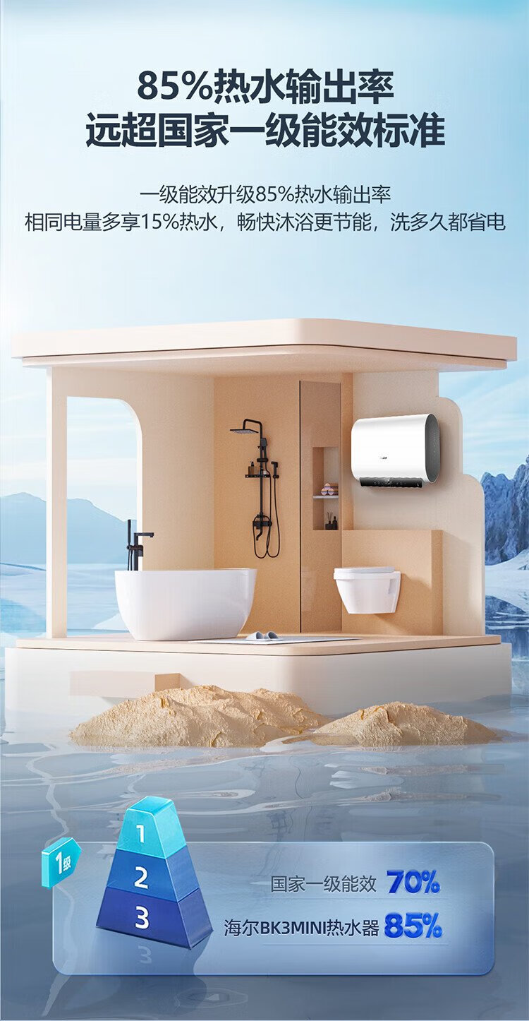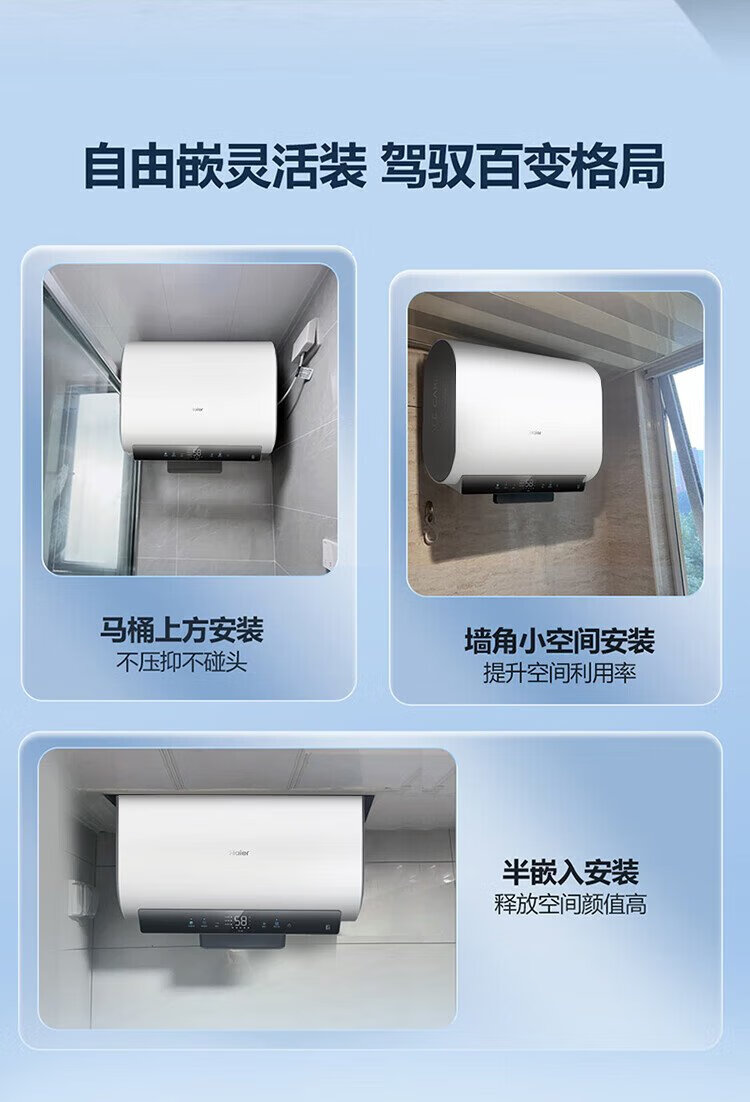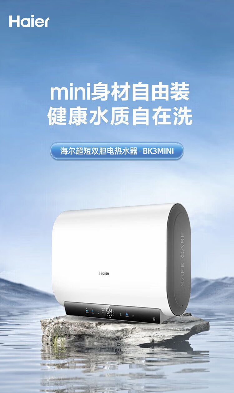 Haier (Haier) national subsidy 20% double bile flat barrel electric water heater 60 liters Xiaohonghua BK3MINI fresh water 3300W variable frequency fast heating first-class energy efficiency energy saving household magnesium rod without replacement