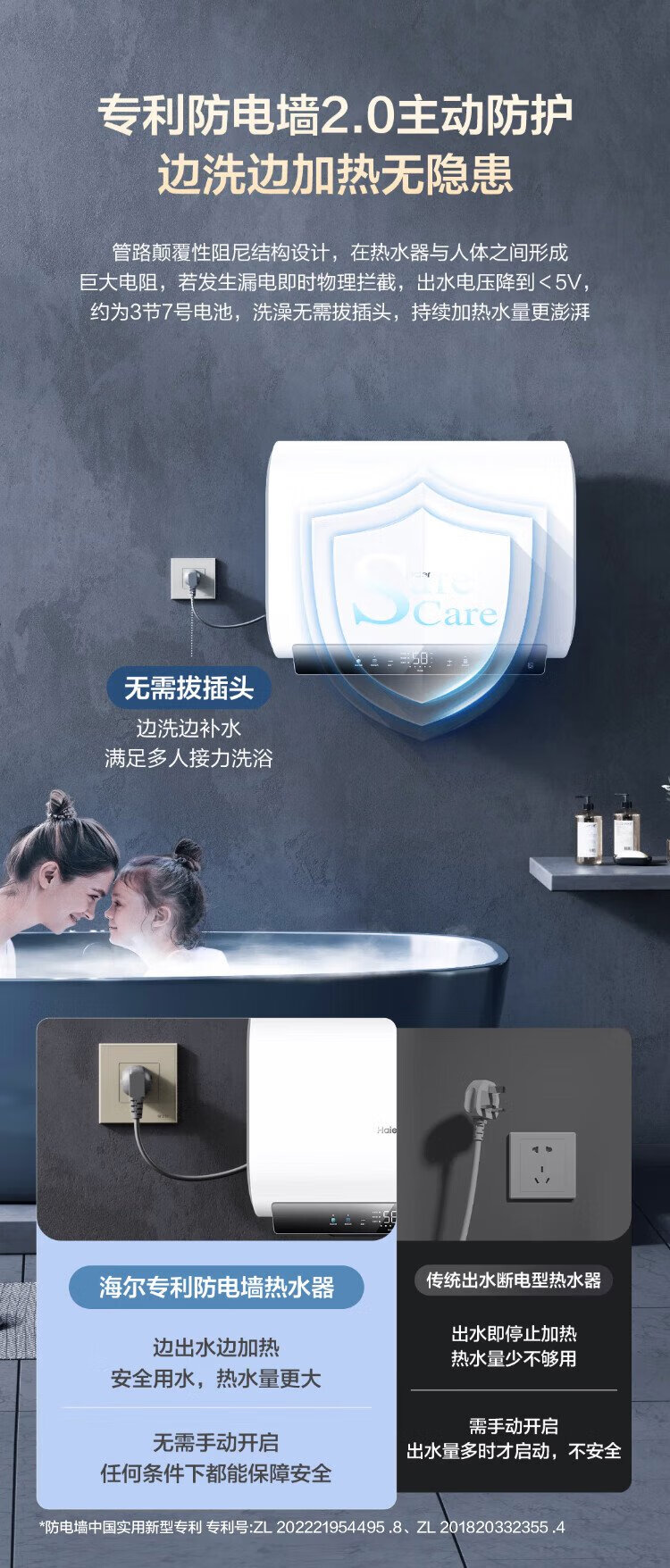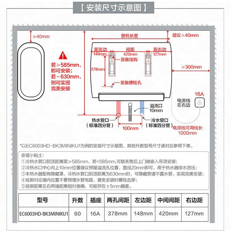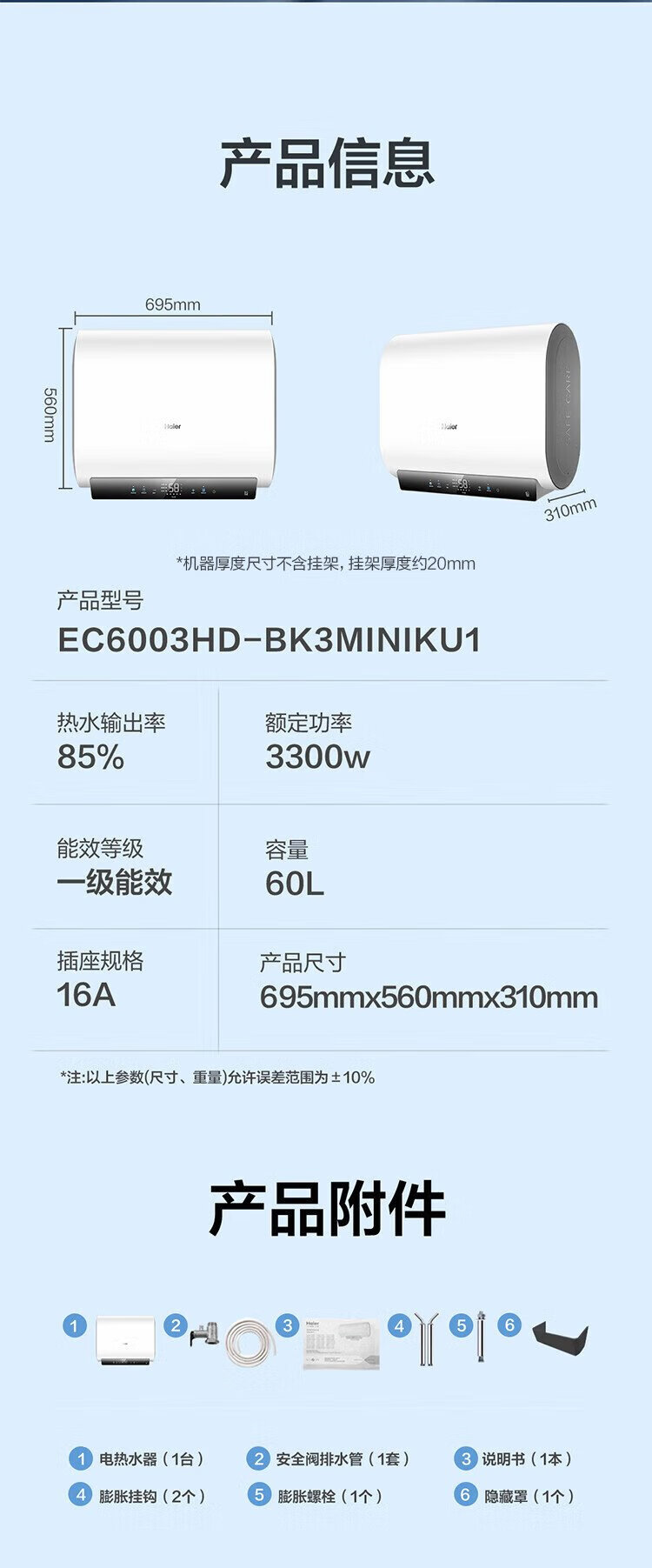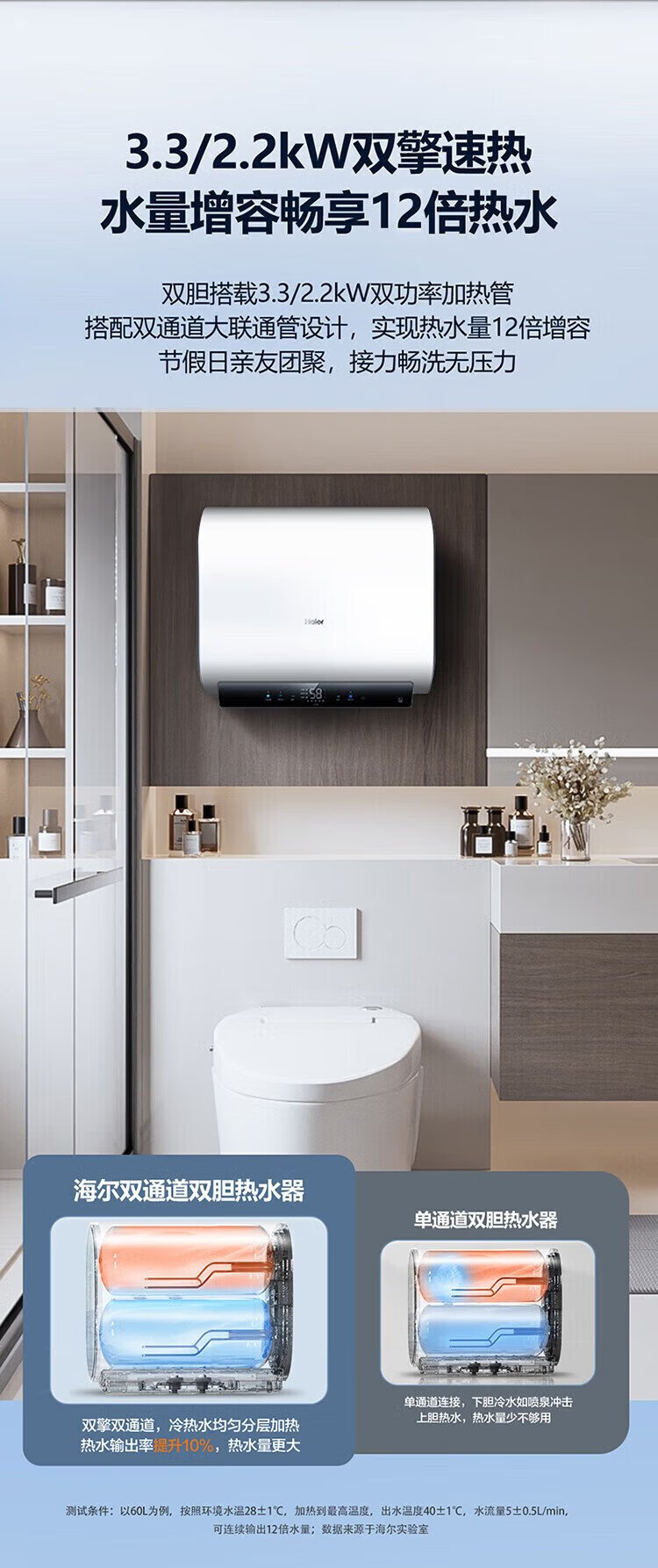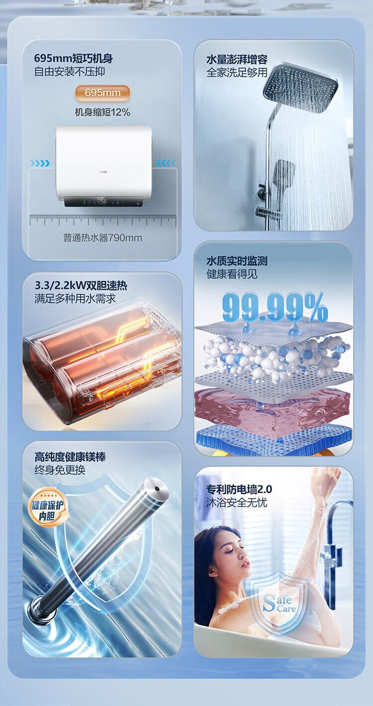 Haier (Haier) national subsidy 20% double bile flat barrel electric water heater 60 liters Xiaohonghua BK3MINI fresh water 3300W variable frequency fast heating first-class energy efficiency energy saving household magnesium rod without replacement