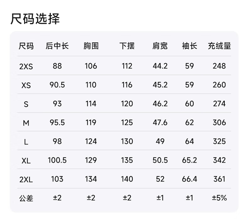 China (cm) 165 / 88-90 170 / 96-98 175 / 108-110 180 / 118-122 185 / 126-130