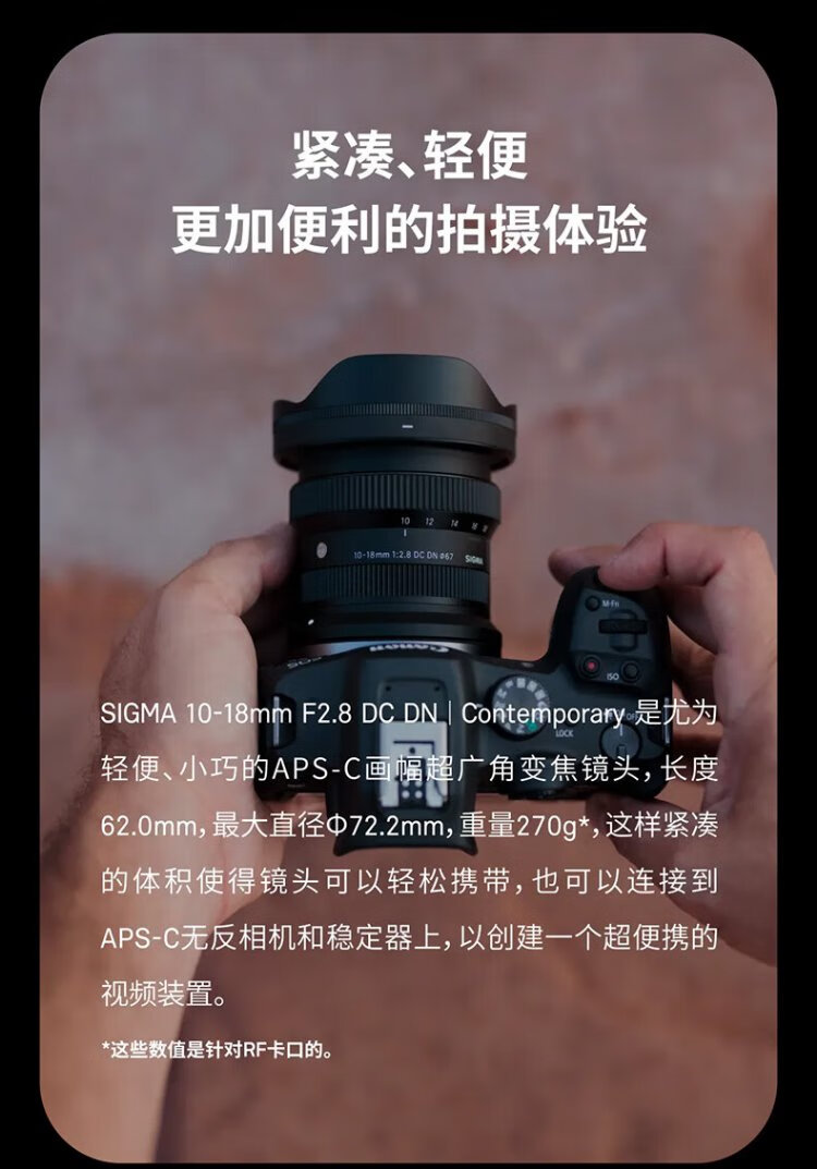 SIGMA 10-18mm F2.8 DC DN Contemporary half-frame mirrorless constant large aperture ultra-wide-angle zoom lens (Canon RF mount)