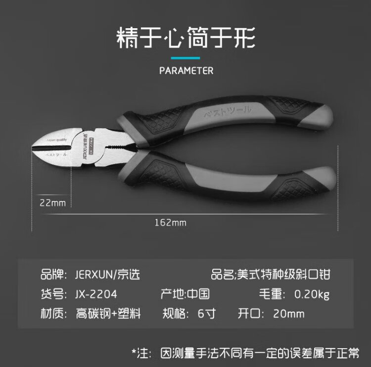 JERXUN slant-nose pliers 6-inch cutting pliers, industrial-grade slant-nose pliers, wire-cutting pliers, slant-nosed slant-nose pliers, electrician electronic pliers tools