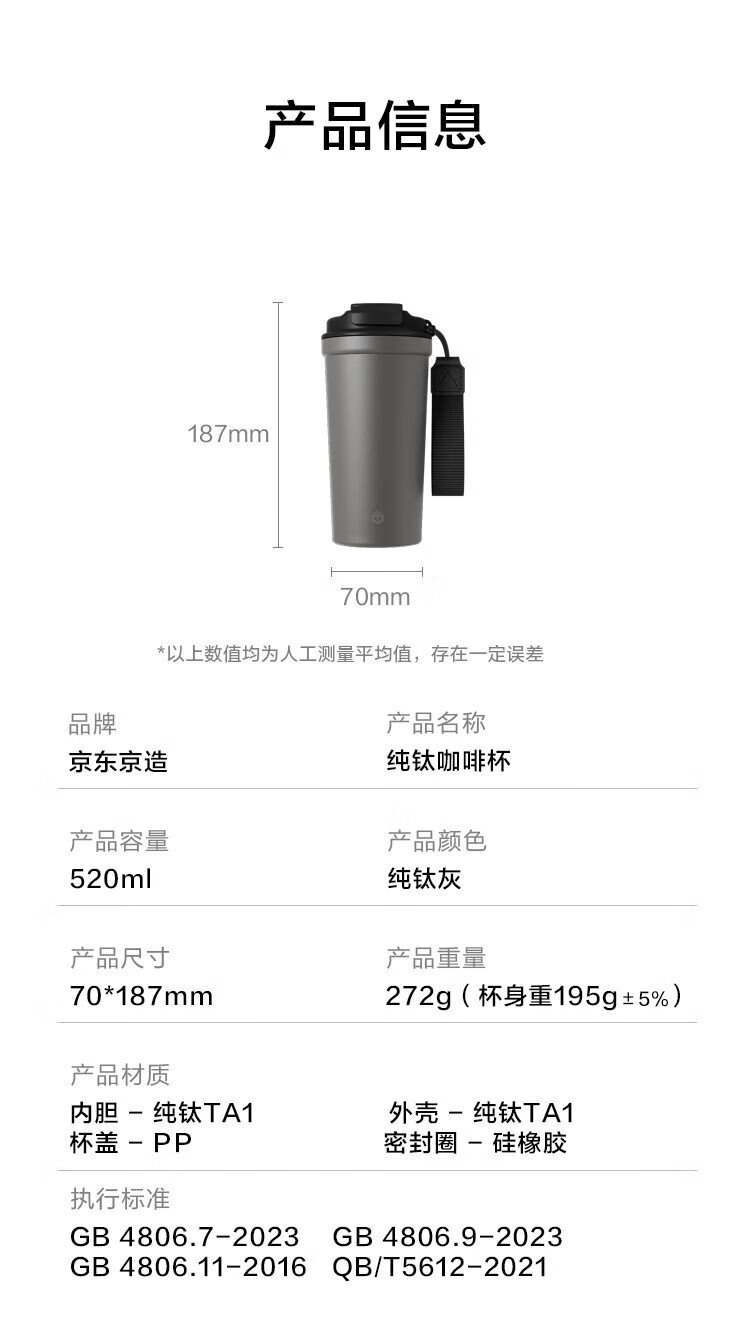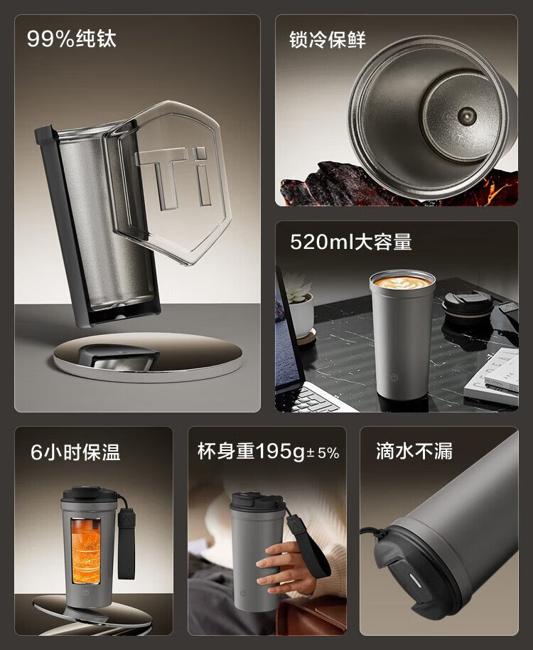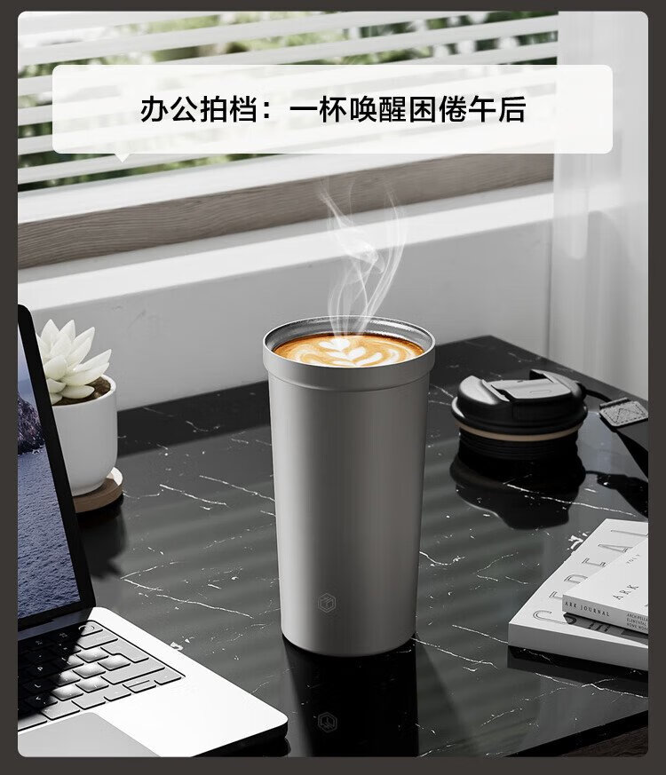 Made in Tokyo, titanium health coffee cup, pure titanium inside and outside, thermal insulation, portable, high-end gift water cup, gray 520ml