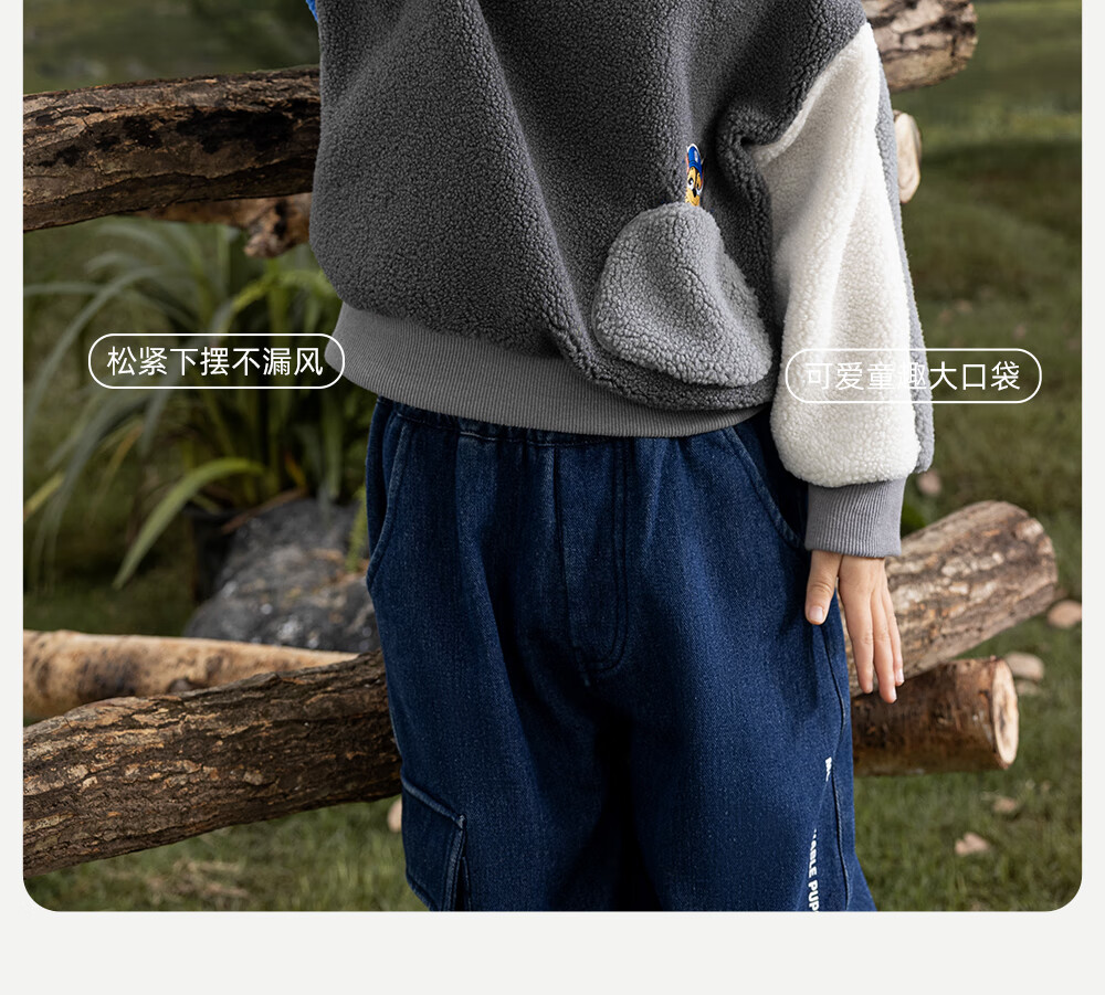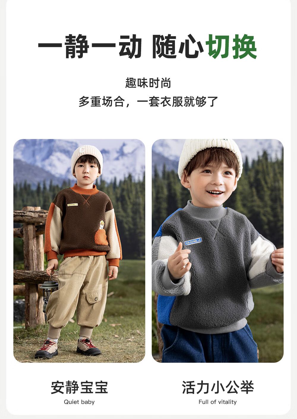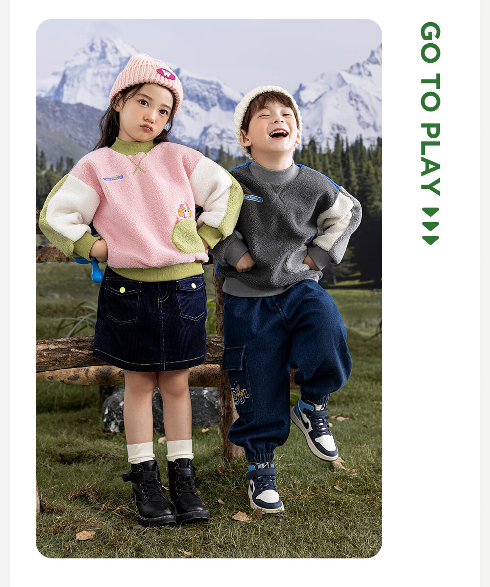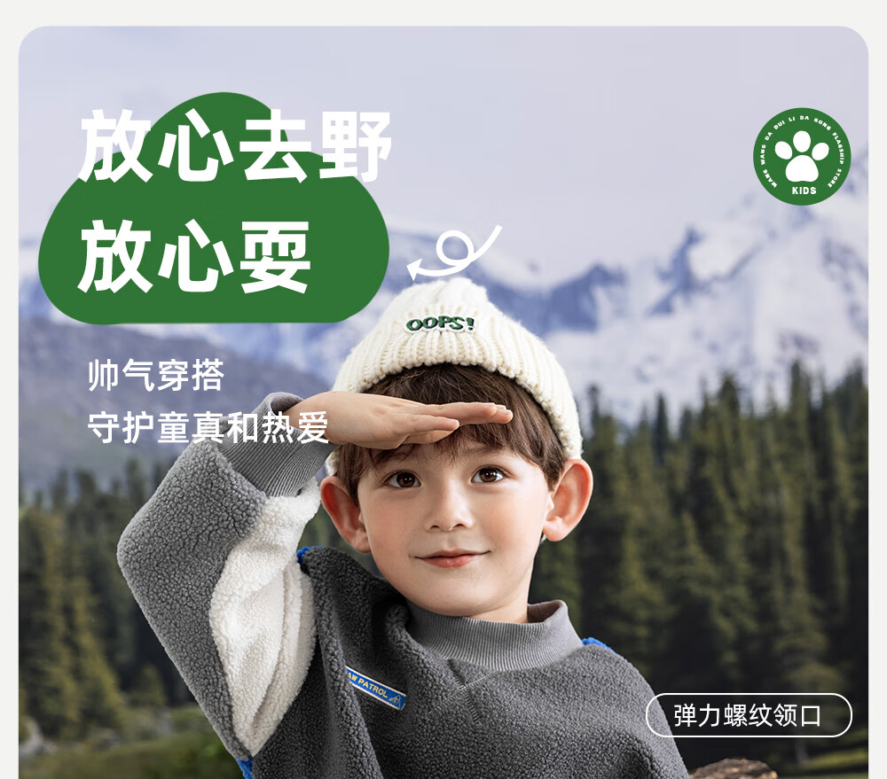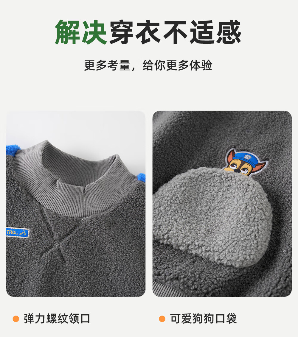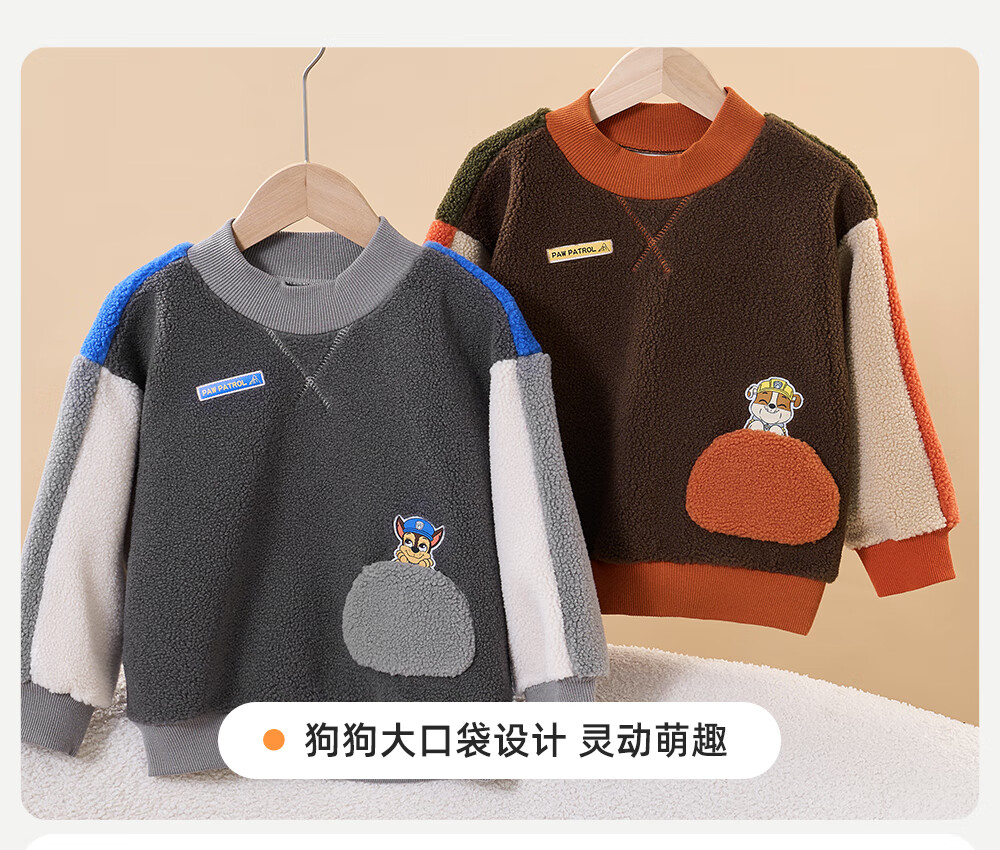 Paw Paw Team Li Dagong Boys' Polar Fleece Sweatshirt Autumn and Winter Children's Fleece Sweatshirt Thickened Top Dark Gray 110cm