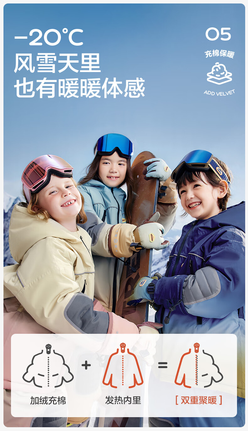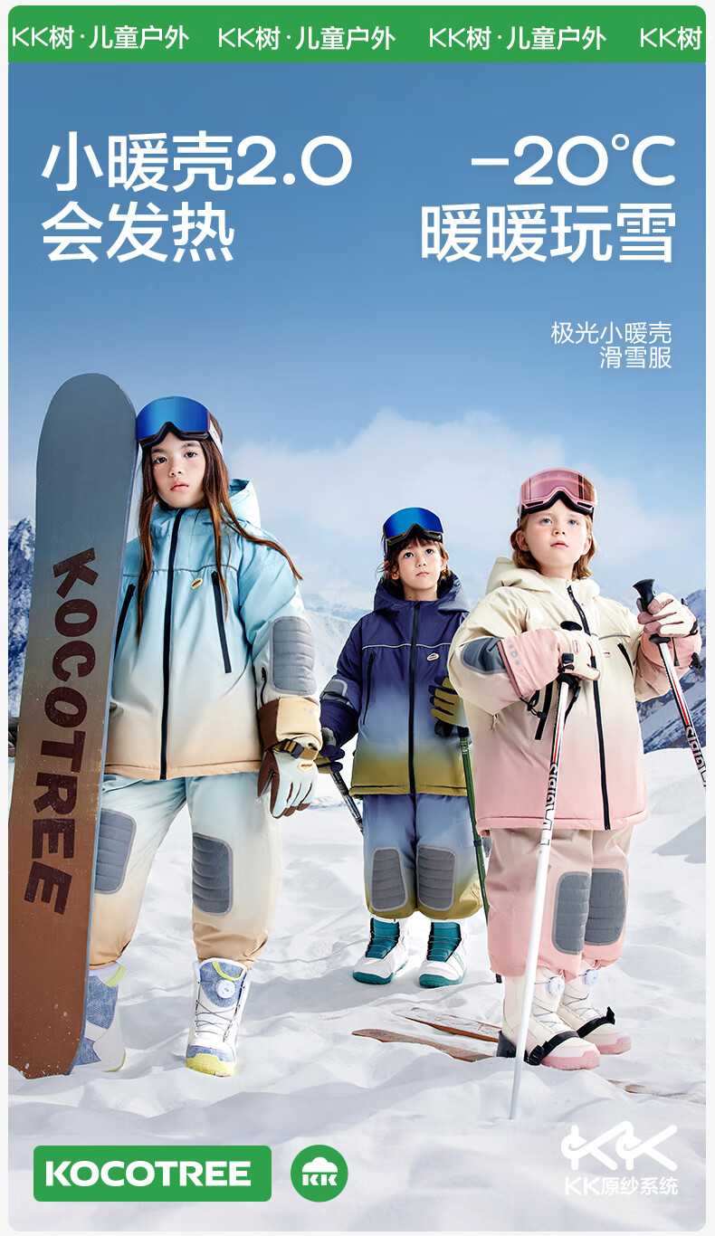 Kocotreekk tree children's ski clothing waterproof and warm cotton clothing for boys and girls outdoor sports rainbow gradient brown 150