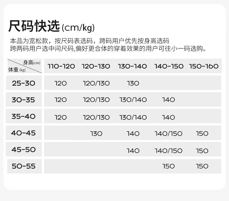 China (cm) 160-165/84-86 165-170 / 88-90 167-172 / 92-96 168-173 / 98-102 170-176 / 106-110