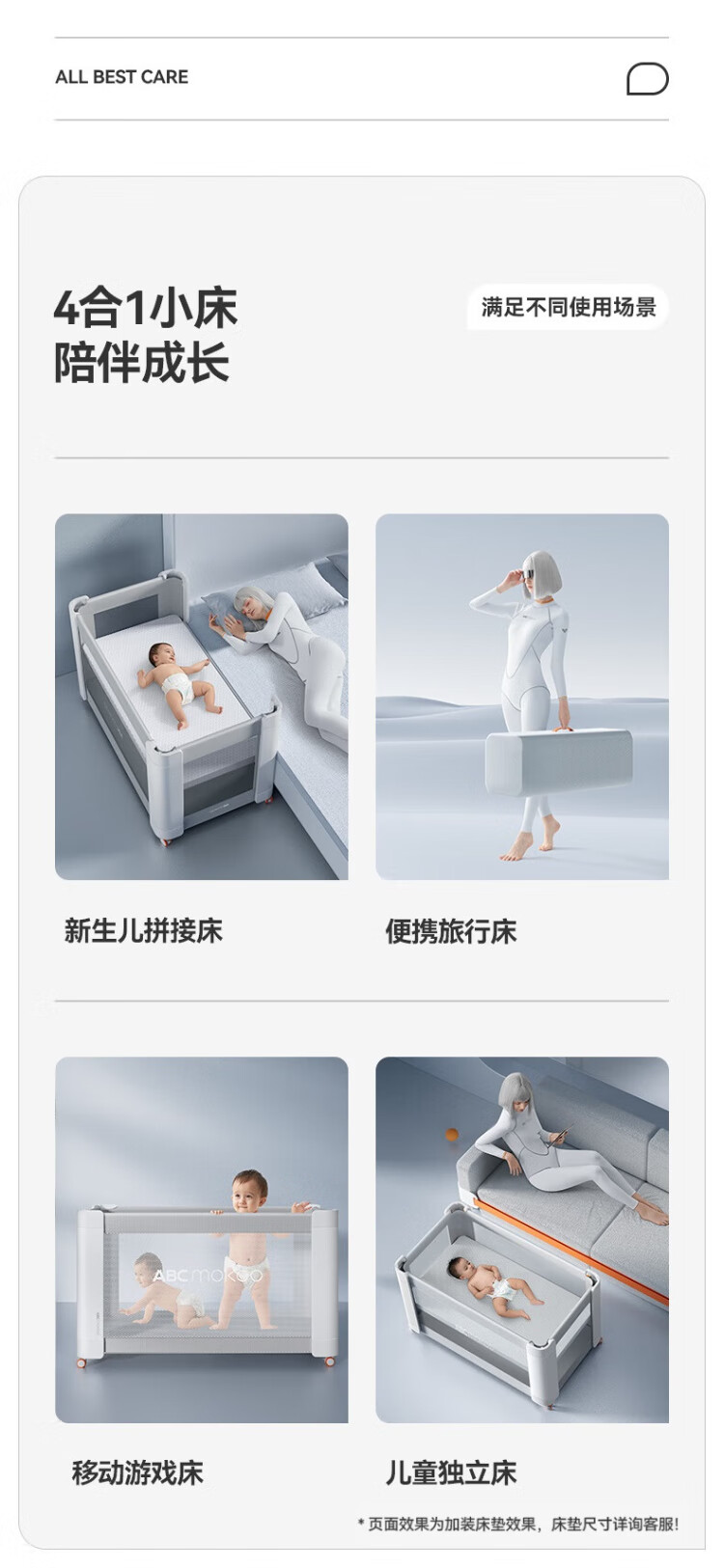 ABCMOKOO Hutt crib newborn folding spliced large bed removable bb baby bed-Earl luxury gold + palace mosquito net